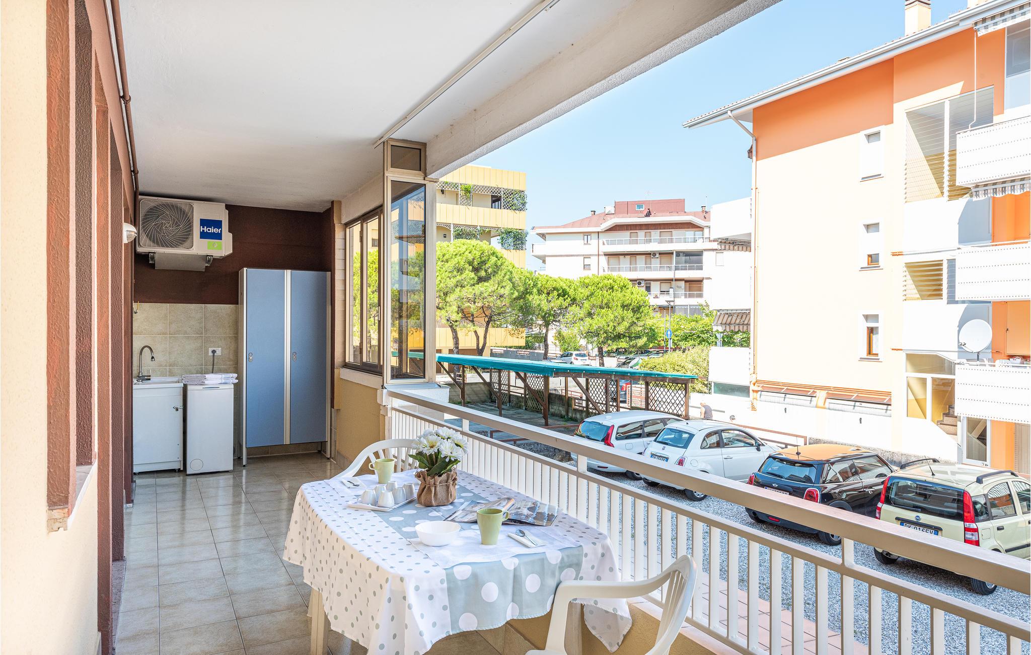 Denne skønne ferielejlighed ligger kun 100 meter fra Grados sandstrand. Den ligger på første sal i en ejendom og rummer en stue med sovesofa, et separat køkken, et soveværelse og et badeværelse. Desuden er der en overdækket altan hvor I kan spise dagens måltider. Der er alle former for bekvemmeligheder i nærheden: I en omkreds af 50 meter er der supermarkeder, barer, restauranter, iscafeer, en legeplads og andre aktivitetsmuligheder. Ved Grado er der en skøn sandstrand, der både er egnet til børn der kan lege i det lave vand, men også for voksne, der kan leje parasoller og liggestole og slappe af i solen. Der er også muligt at leje kanoer og vandcykler og tage på eventyr på vadnet. Der er 10 km til Aquileia med arkæologiske udgravninger og 20 km til Collio-regionen, der er kendt i hele Europa for sine vine. Der er 54 km til den charmerende by Triest og den helt unikke, romantiske by Venedig er der 130 km til.