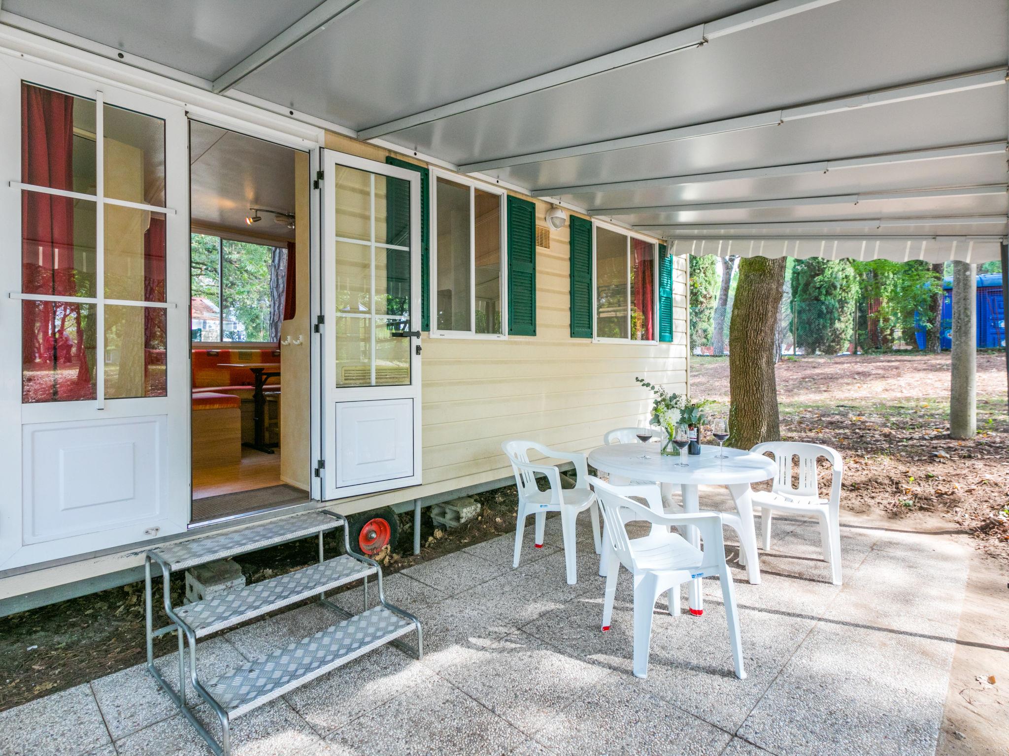 "Green Holiday (GDO201)", 3-room mobile home 24 m2. Object suitable for 5 adults + 1 child. Practical furnishings: living/sleeping room with 1 sofabed, dining table, dining nook, air conditioning and forced-air heating. 1 room with 1 french bed (140 cm, length 200 cm). 1 room with 2 beds (70 cm), 1 x 1 bunk beds (60 cm). Kitchenette (4 gas rings). Shower/WC. Terrace roofed. Terrace furniture, deck chairs (1). Facilities: mosquito net, children's high chair (extra). Parking (1 car). Maximum 1 pet/ dog allowed. beach ca. 300-600 m. IT030004B2VIBQ2W3N