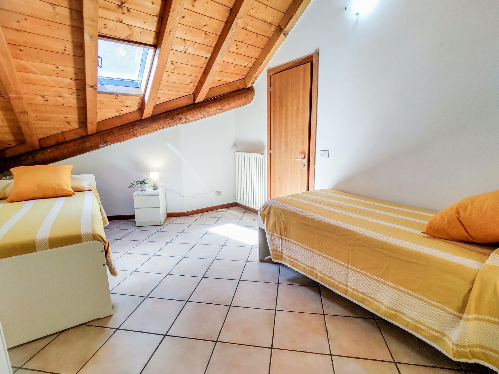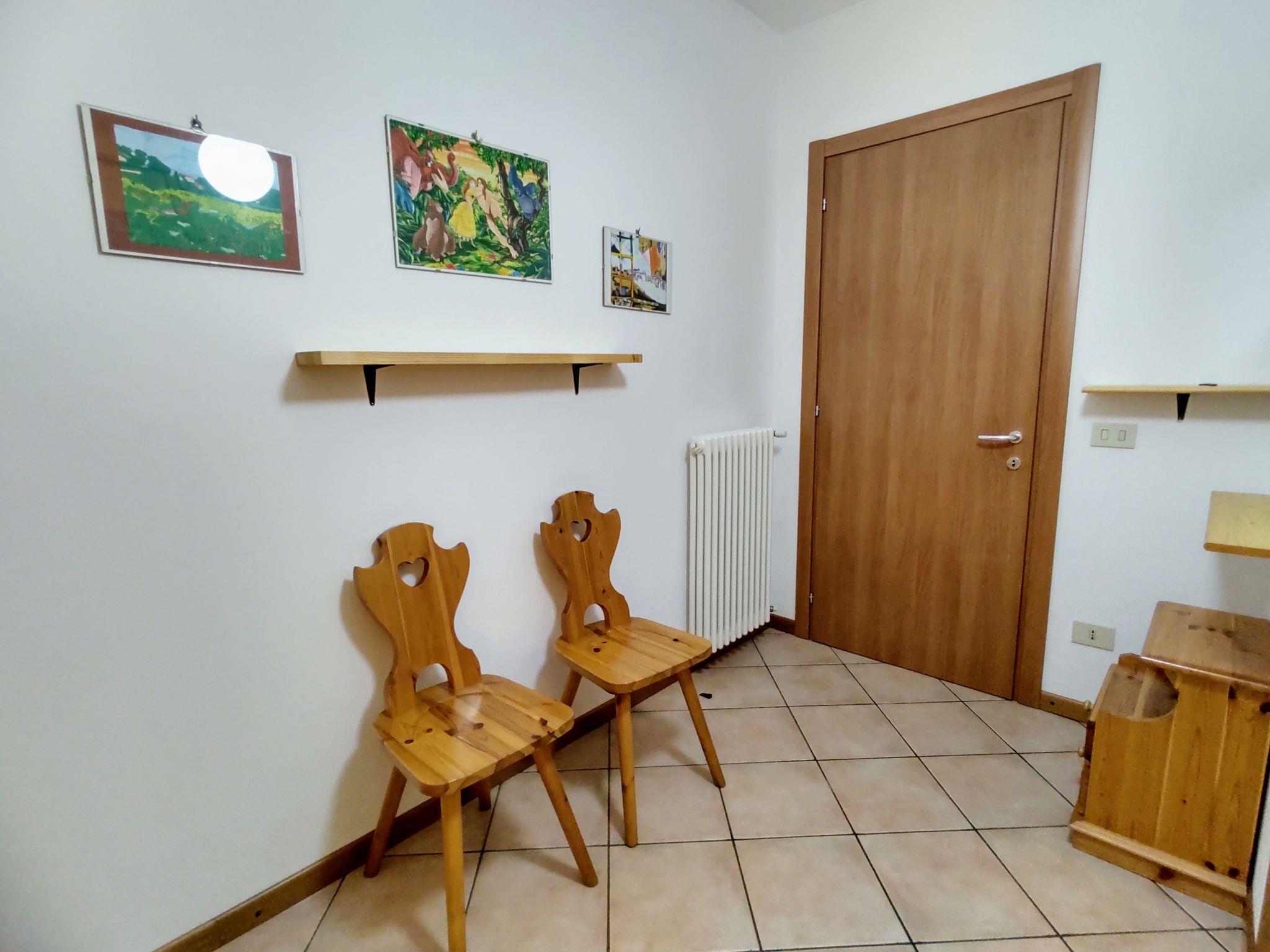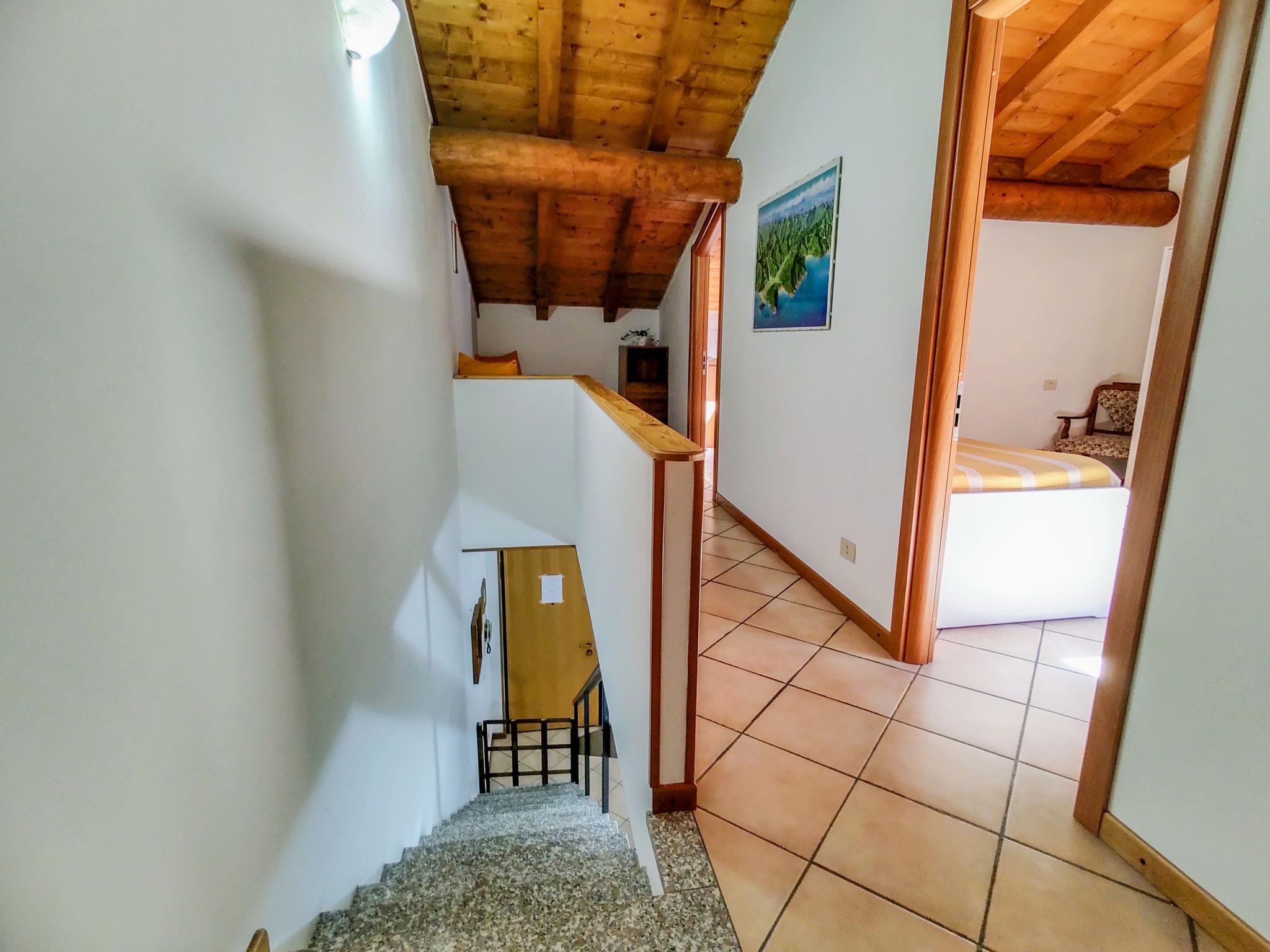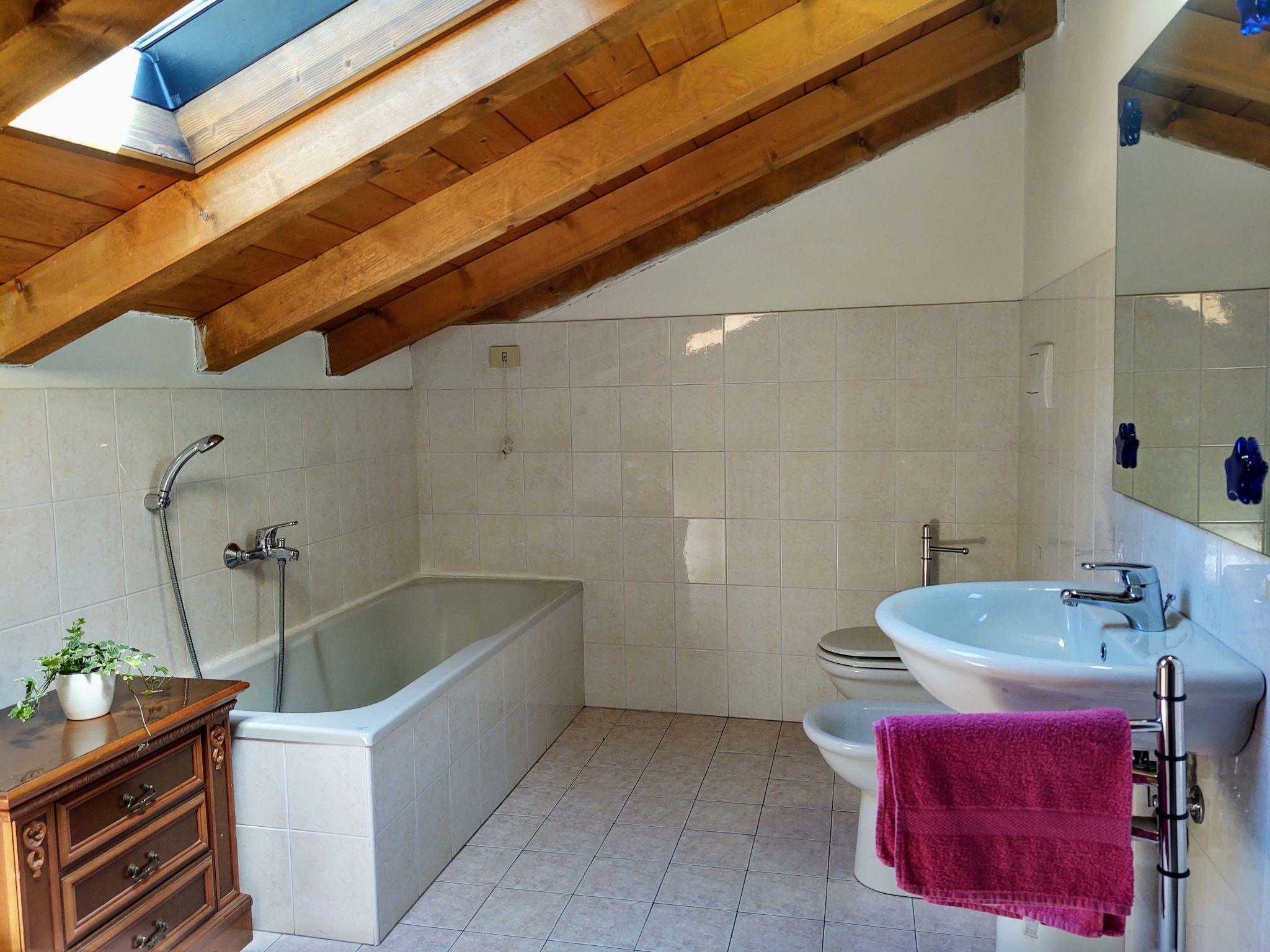"Relax", 5-room apartment 120 m2 on 2 levels on 2nd floor. Practical furnishings: entrance hall. Open dining room. 1 double bedroom. 1 room with 1 x 2 bunk beds. Open kitchen (4 hot plates, oven). Shower/bidet/WC. Upper floor: living room with sloping ceilings with rooflight with 2 sofabeds and TV. 1 room with 2 beds. Bath/bidet/WC. Gas heating (extra). Heating available only from 15.10. to 15.04. Small balcony. Partial view of the lake. Facilities: washing machine, children's high chair, baby cot for up to 2 year olds, hair dryer. Internet (WiFi, free). The room with the bunk bed has a high window overlooking the bathroom. The double bedroom has a high window overlooking the kitchen. IT013249C2SXKKTXMH