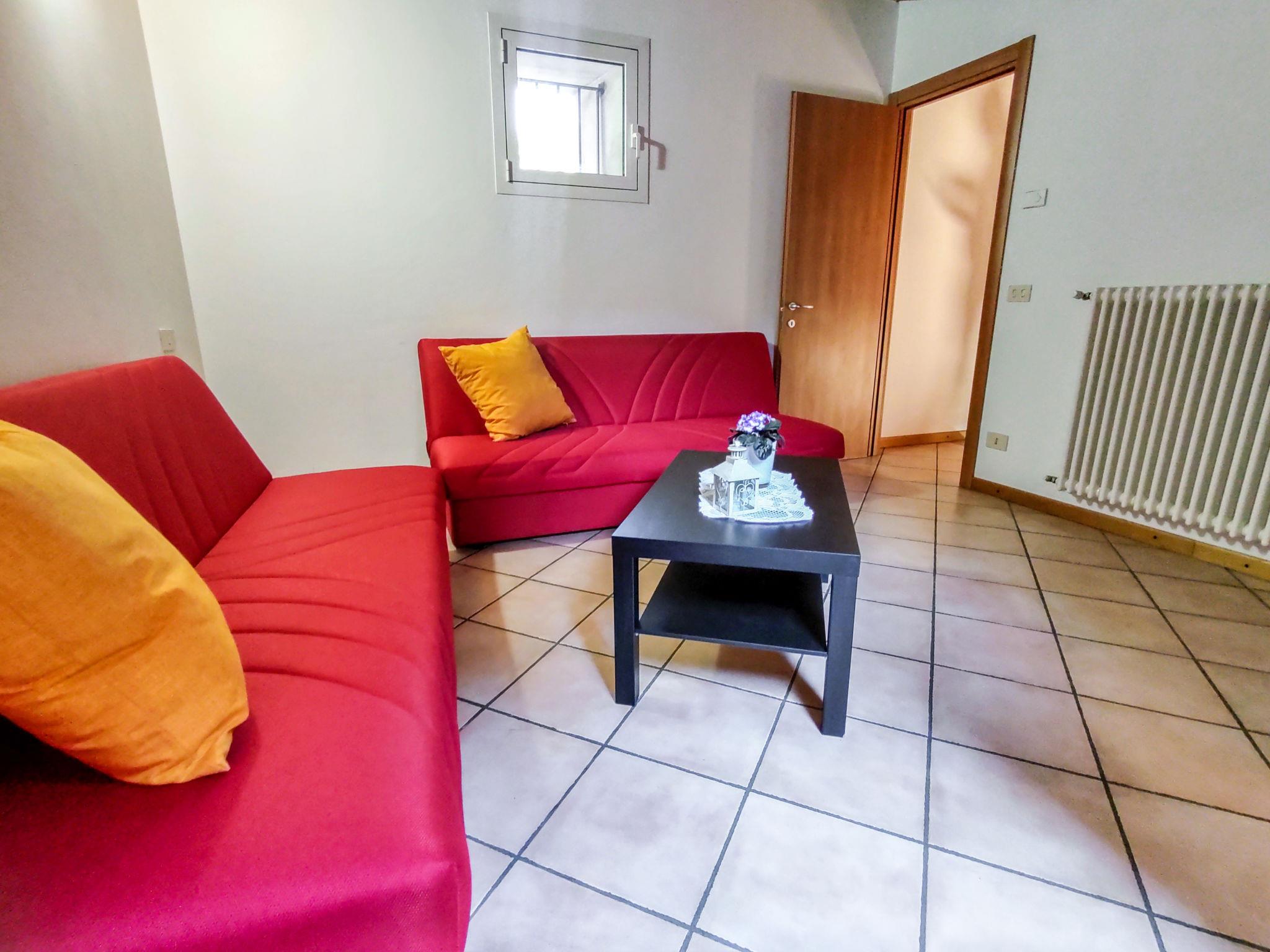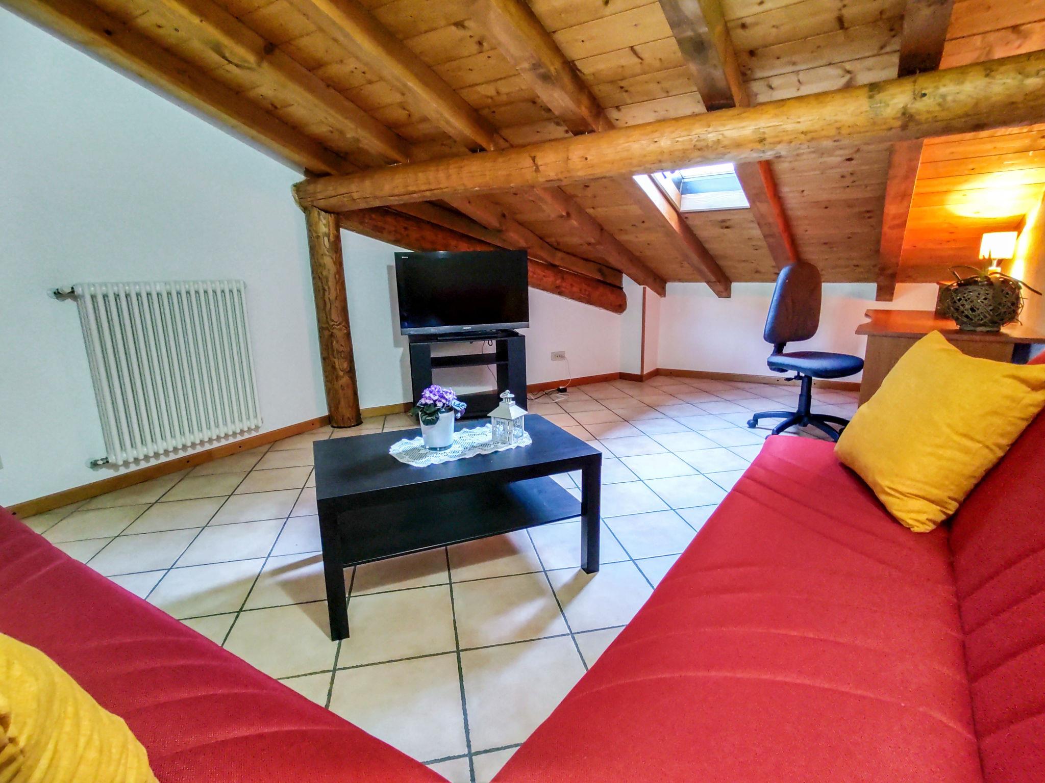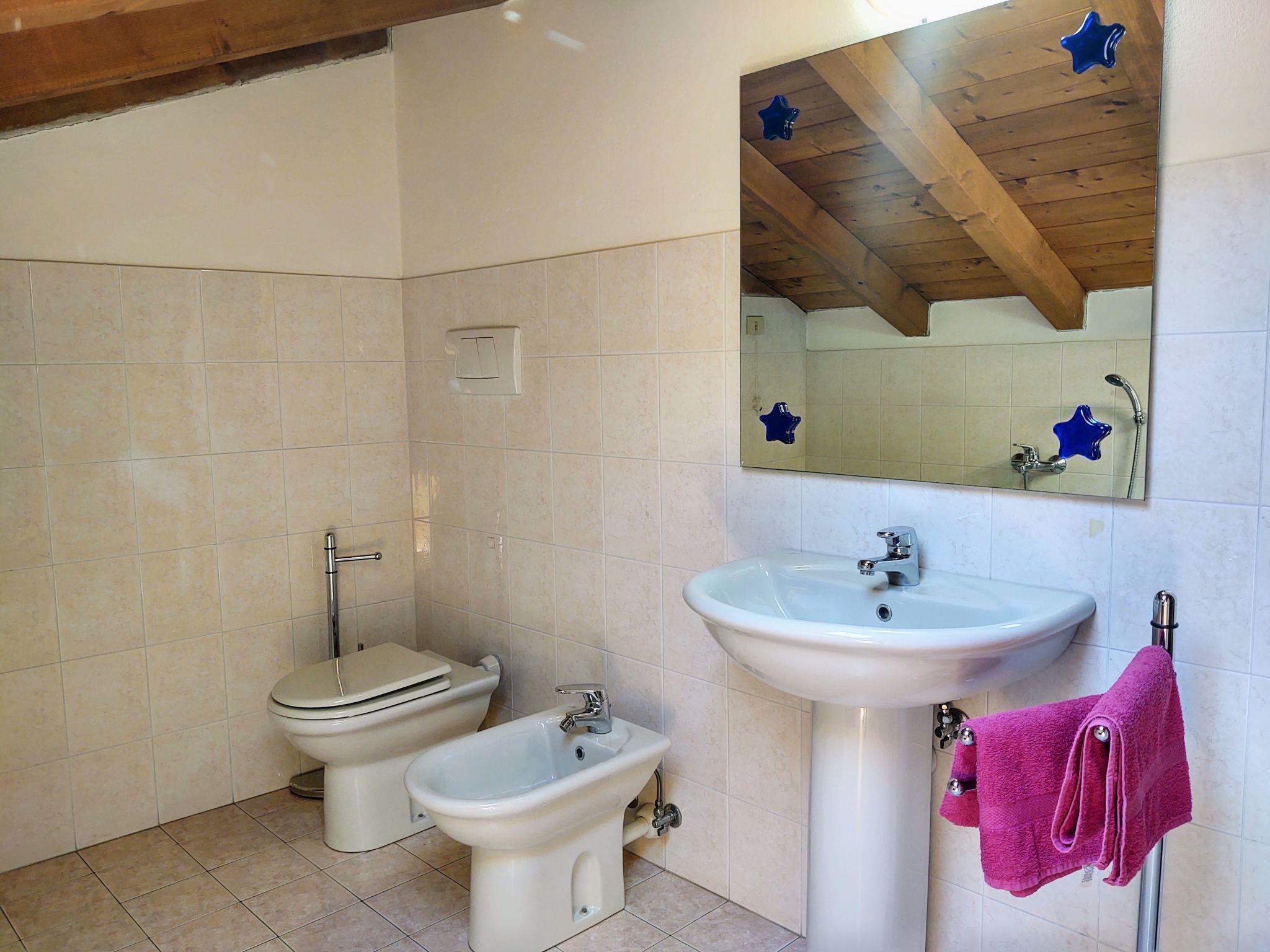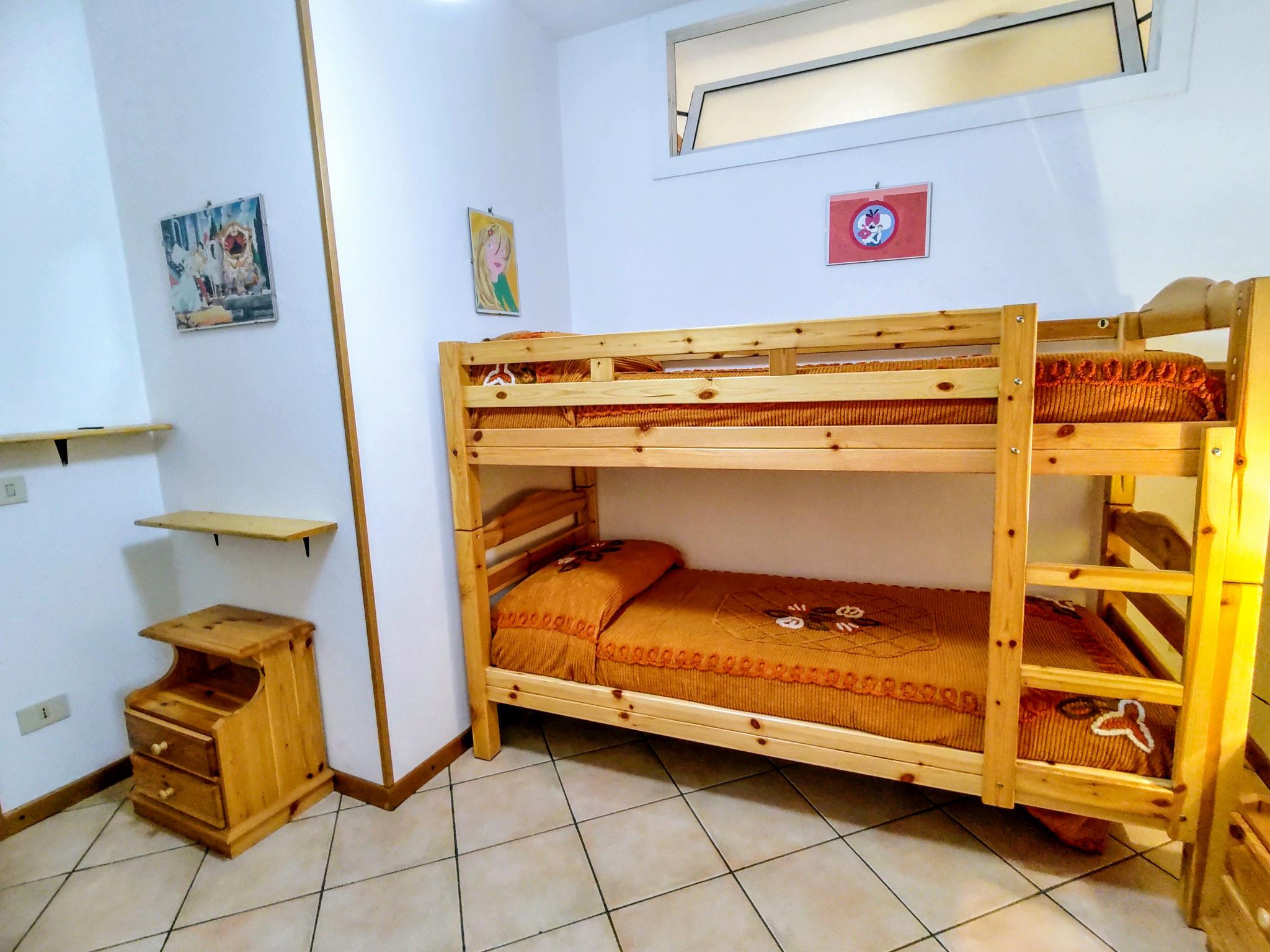 "Relax", 5-room apartment 120 m2 on 2 levels on 2nd floor. Practical furnishings: entrance hall. Open dining room. 1 double bedroom. 1 room with 1 x 2 bunk beds. Open kitchen (4 hot plates, oven). Shower/bidet/WC. Upper floor: living room with sloping ceilings with rooflight with 2 sofabeds and TV. 1 room with 2 beds. Bath/bidet/WC. Gas heating (extra). Heating available only from 15.10. to 15.04. Small balcony. Partial view of the lake. Facilities: washing machine, children's high chair, baby cot for up to 2 year olds, hair dryer. Internet (WiFi, free). The room with the bunk bed has a high window overlooking the bathroom. The double bedroom has a high window overlooking the kitchen. IT013249C2SXKKTXMH