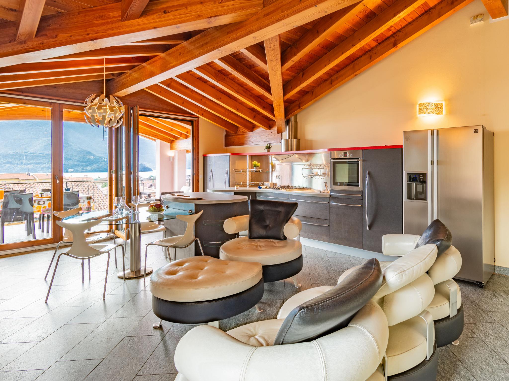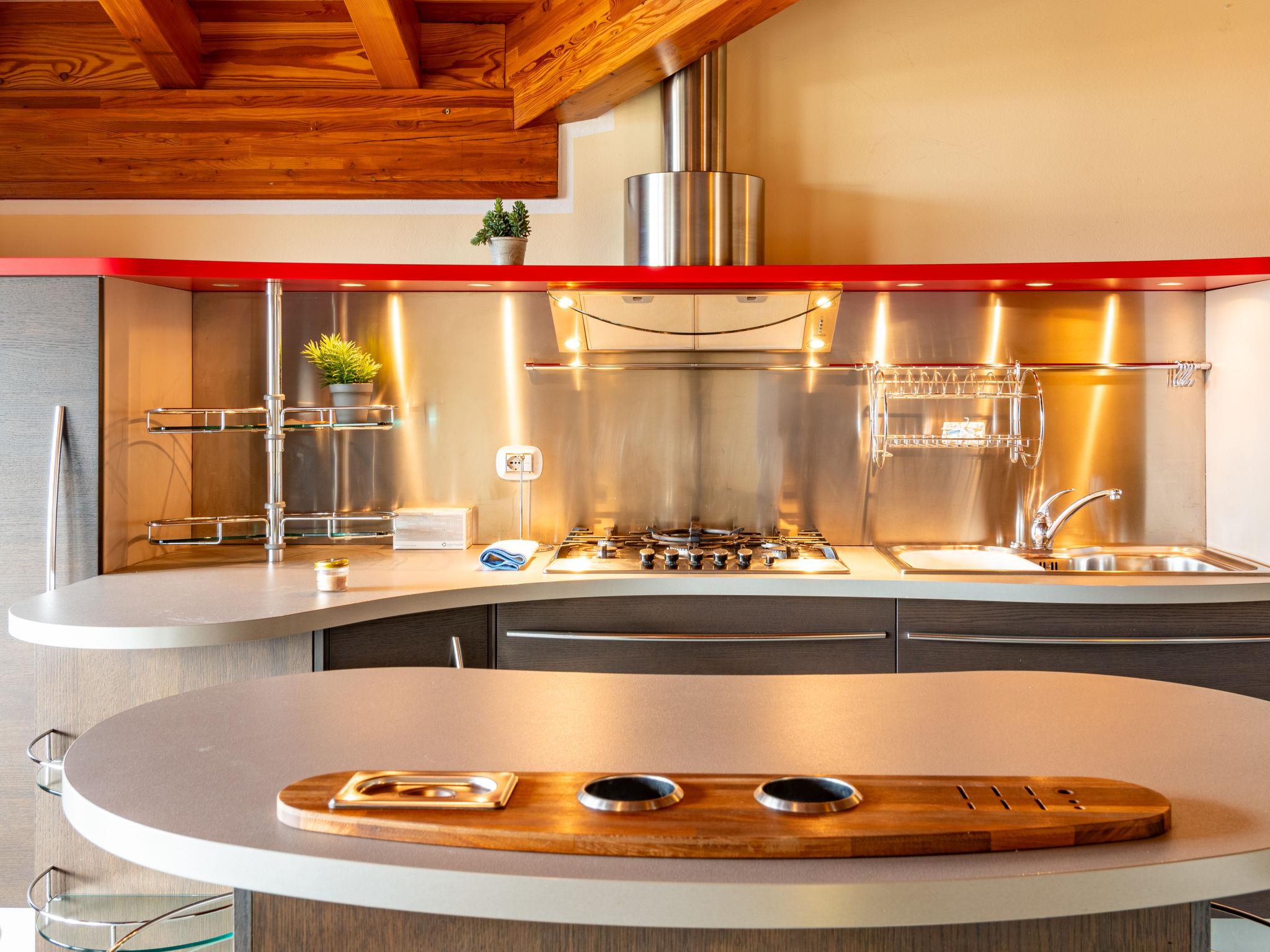 3-room apartment 120 m2, on the top floor. Spacious and bright, fully renovated in 2021, beautiful and modern furnishings: open large living/dining room with panoramic window with open-hearth fireplace, dining table and TV (flat screen). Exit to the balcony. 1 double bedroom. 1 room with 2 beds. Exit to the balcony. Large, open kitchen (oven, dishwasher, Gas stove, 5 gas rings, toaster, microwave, freezer). Exit to the balcony. Shower/bidet/WC, hydro massage shower. Gas heating. Heating available only from 15.10. to 15.04. Natural stone floors. Balcony. Balcony furniture. Marvellous panoramic view of the lake, the mountains and the resort. Facilities: washing machine. Internet (WiFi, free). Please note: non-smokers only. Maximum 1 pet/ dog allowed. Private entrance. IT013249C2MN8V3E5I