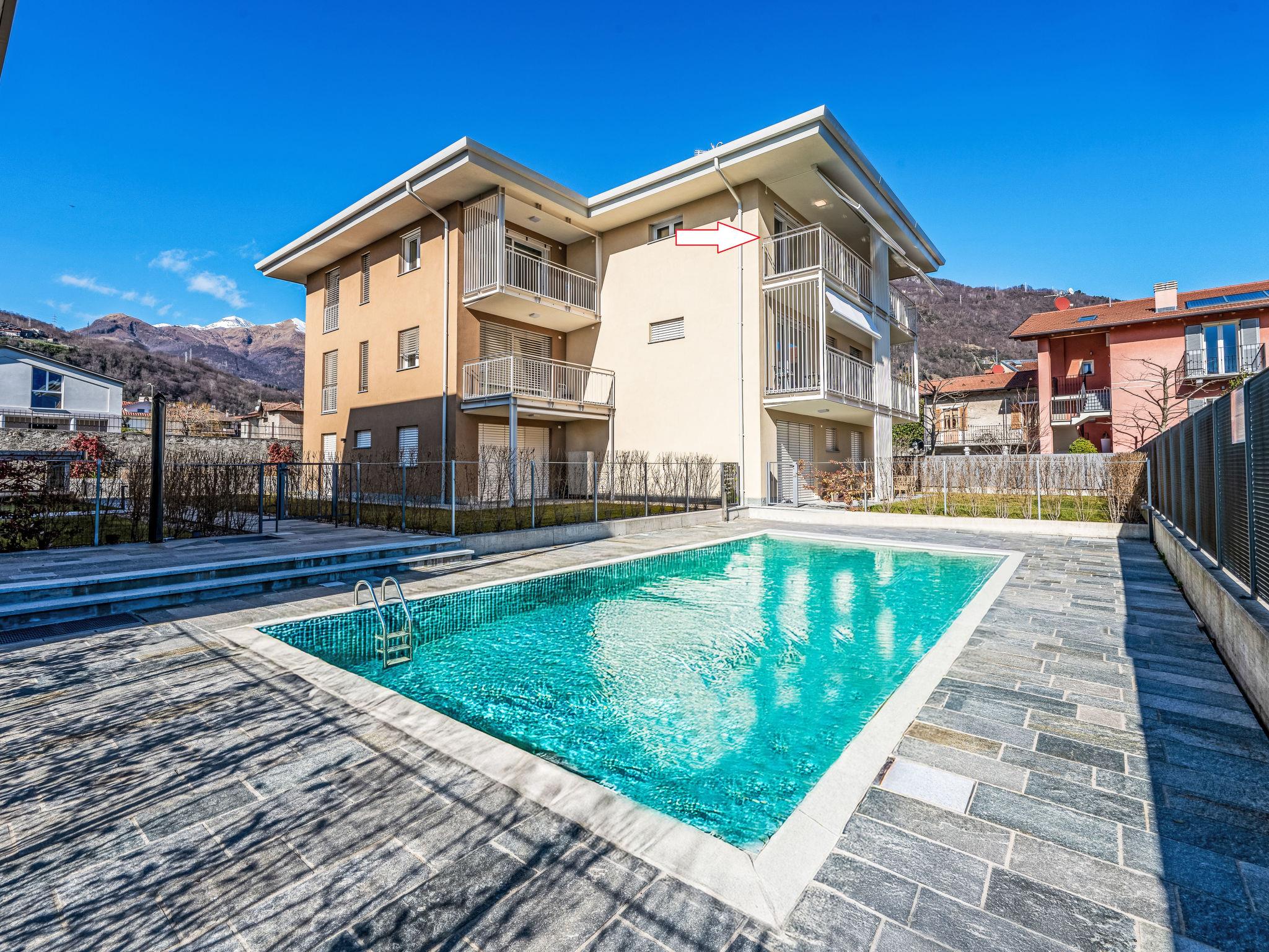Modern, comfortable residence "Laricola", built in 2023. 2 houses in the residence. 11 apartments in the residence. In the centre of Gravedona 2.5 km from the centre of Domaso, 52 km from the centre of Como, in a sunny position in the residential district, 200 m from the lake, road to cross. For shared use: swimming pool angular fenced (9 x 4 m, depth 140 cm, seasonal availability: 01.Jun. - 30.Sep.). Outdoor shower, pool maintenance by the owner/gardener. In the house: lift, air conditioning, heating available only from 15.Oct. - 15.Apr.. Public parking 10 m on the road. E-charging station. Supermarket 400 m, restaurant 100 m, bar, bakery 100 m, pedestrian zone 100 m, bus stop "C10 Como-Menaggio-Colico" 800 m, railway station "Colico" 17 km, ferry "Menaggio" 18 km, sandy beach "Serenella", pebble beach 650 m, outdoor swimming pool. Marina 600 m, golf course (18 hole) 21 km, sailing school 350 m, tennis 350 m, sports centre 350 m, children's playground 400 m. Nearby attractions: Chiesa Santa Maria del Tiglio-Gravedona, Palazzo Gallio-Gravedona, Villa Carlotta-Tremezzo, Bellagio, Menaggio, Varenna. Well-known lakes can easily be reached: Lago di Mezzola. Hiking paths: Monte Duria, Valle del Livo. Please note: Hydronic cooling system with fan-coil, powered by a heat pump. To respect the environment, the temperature does not drop below 24 degrees.