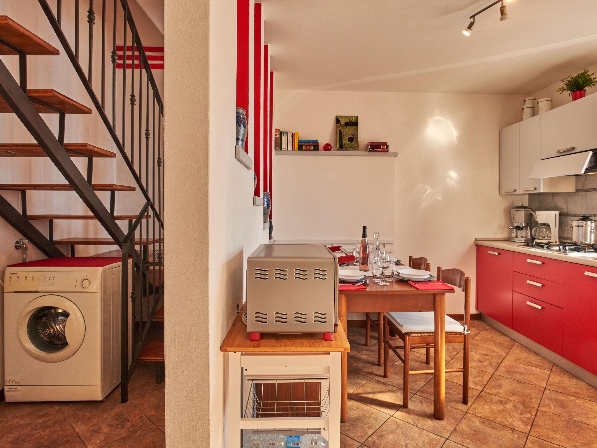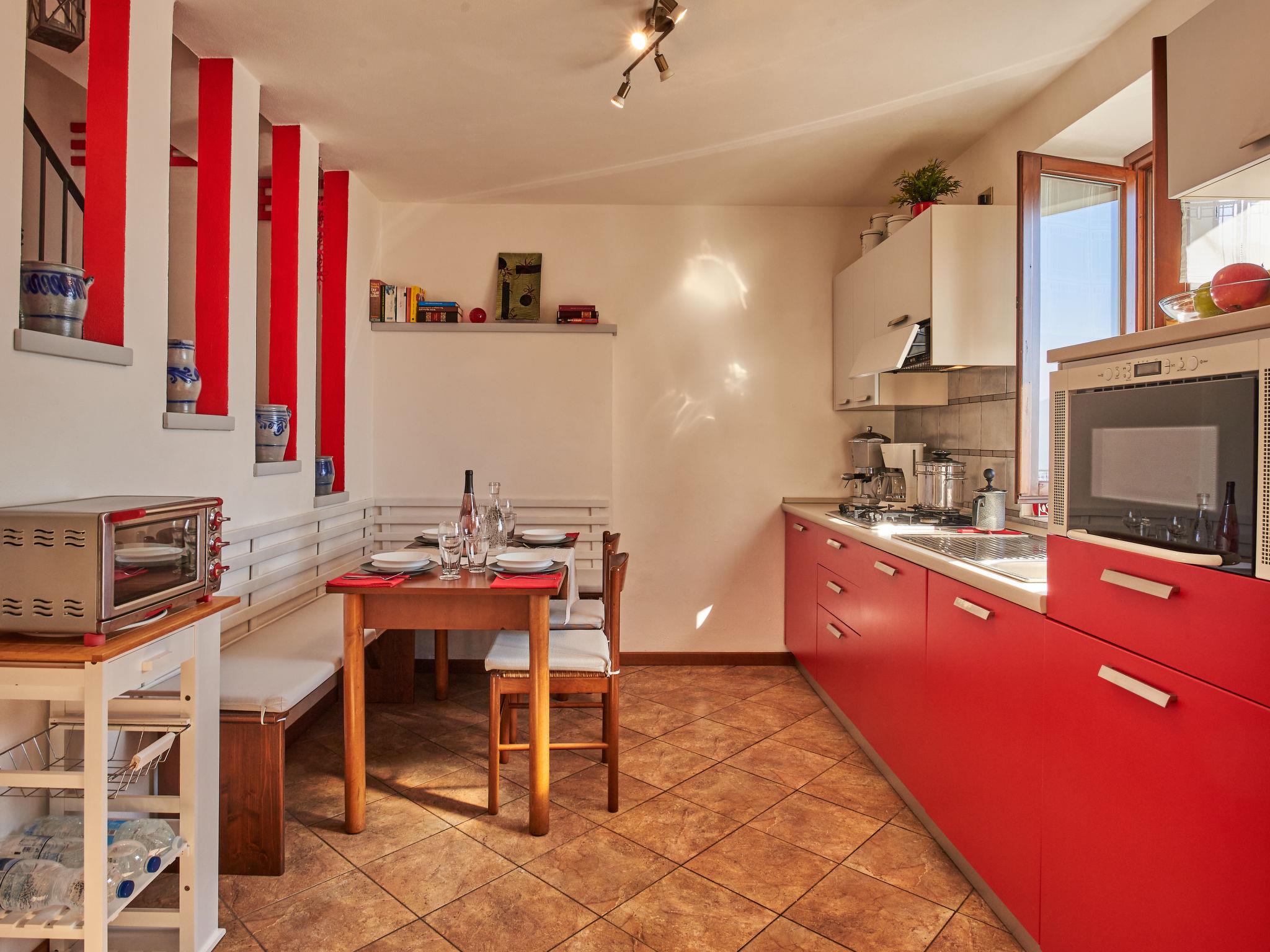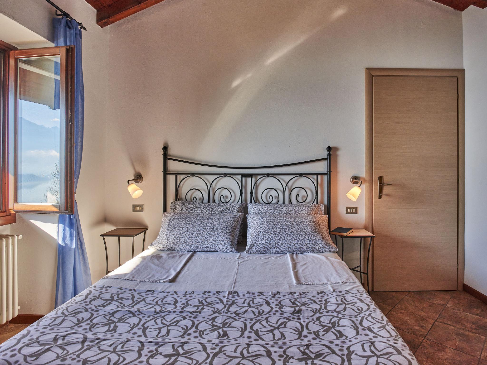 "Rustico Simona (GRV255)", 3-room house 65 m2 on 2 levels. Renovated, modern and tasteful furnishings: living/sleeping room with 1 sofabed, open-hearth fireplace, dining table, satellite TV, radio and CD-player. Exit to the terrace. Open kitchen (oven, dishwasher, 4 gas rings, toaster, microwave, freezer, electric coffee machine). Sep. WC. Upper floor: 1 room with 1 french bed (160 cm). 1 room with 2 beds. Exit to the balcony. Shower/WC. Gas heating. Balcony, terrace partly roofed. Terrace furniture, barbecue, deck chairs (2). Panoramic view of the lake. Facilities: washing machine, children's high chair, baby cot. Internet (WiFi, free). Maximum 1 pet/ dog allowed. Note: The spa cannot be used at temperatures below 0°C. IT013249C2ZBTDJGF5