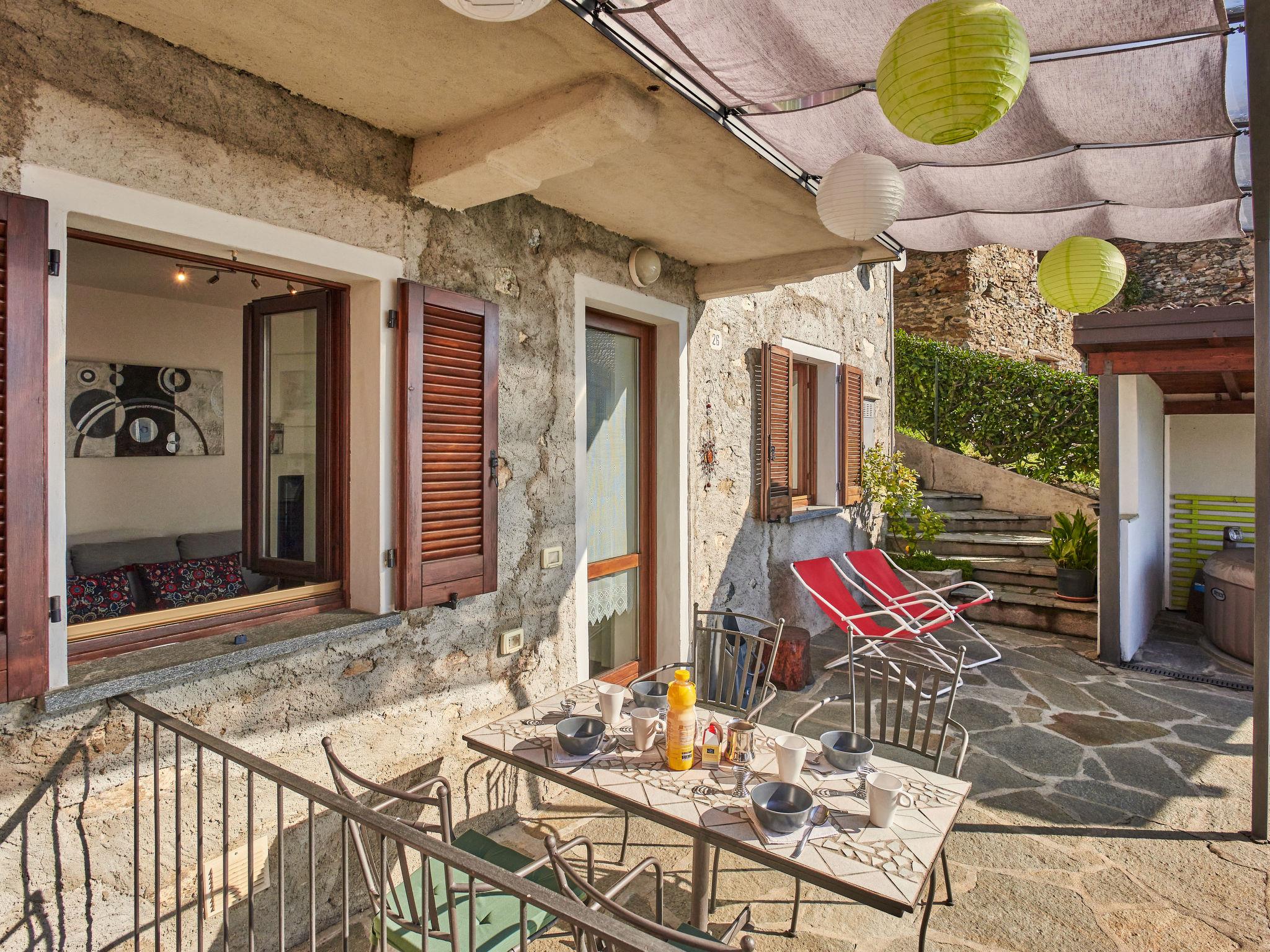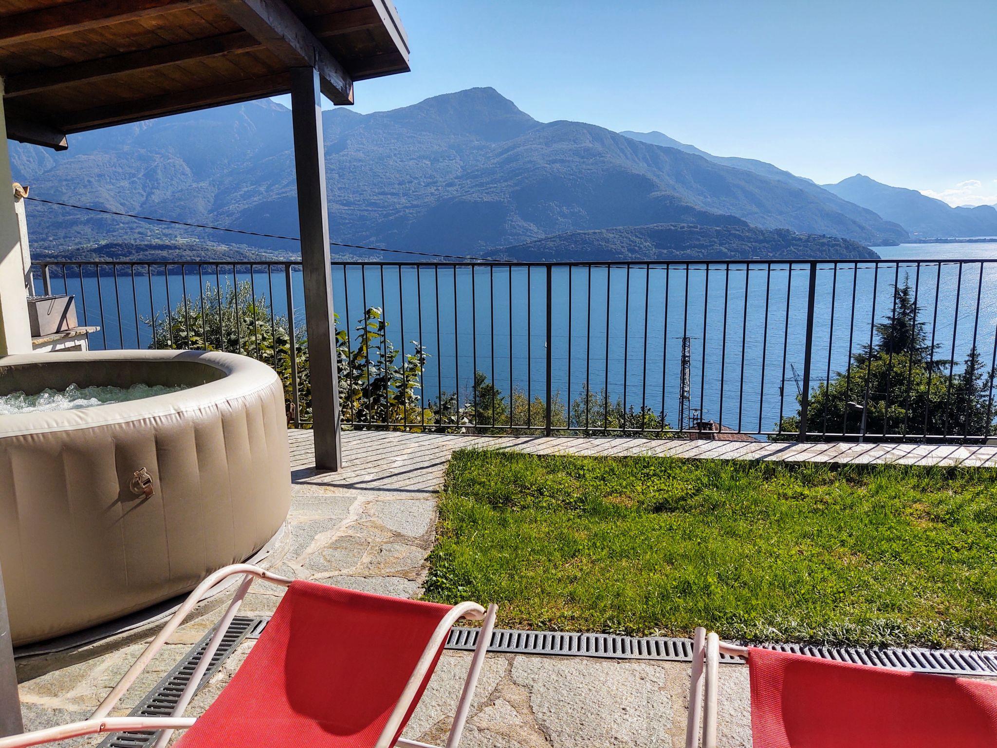 "rustico" cottage "Simona", 350 m a.s.l.. Above Gravedona, in the hamlet San Carlo 1.9 km from the centre of Gravedona, 50 km from the centre of Como, 54 km from the centre of Lecco, on a slope, 1.9 km from the lake, south-east facing position. Private: property (fenced), terraced garden with lawn, courtyard. Hot tub. Bread roll service. Stepped path to the house. Public parking 50 m. Shop 1.9 km, supermarket 2.5 km, bus stop "Gravedona" 1.9 km, railway station "Como" 50 km, pebble beach 2.2 km, outdoor swimming pool 2.2 km. Marina 1.9 km, golf course (18 hole) 25 km. Please note: Loading and unloading of baggage is possible at the holiday house.