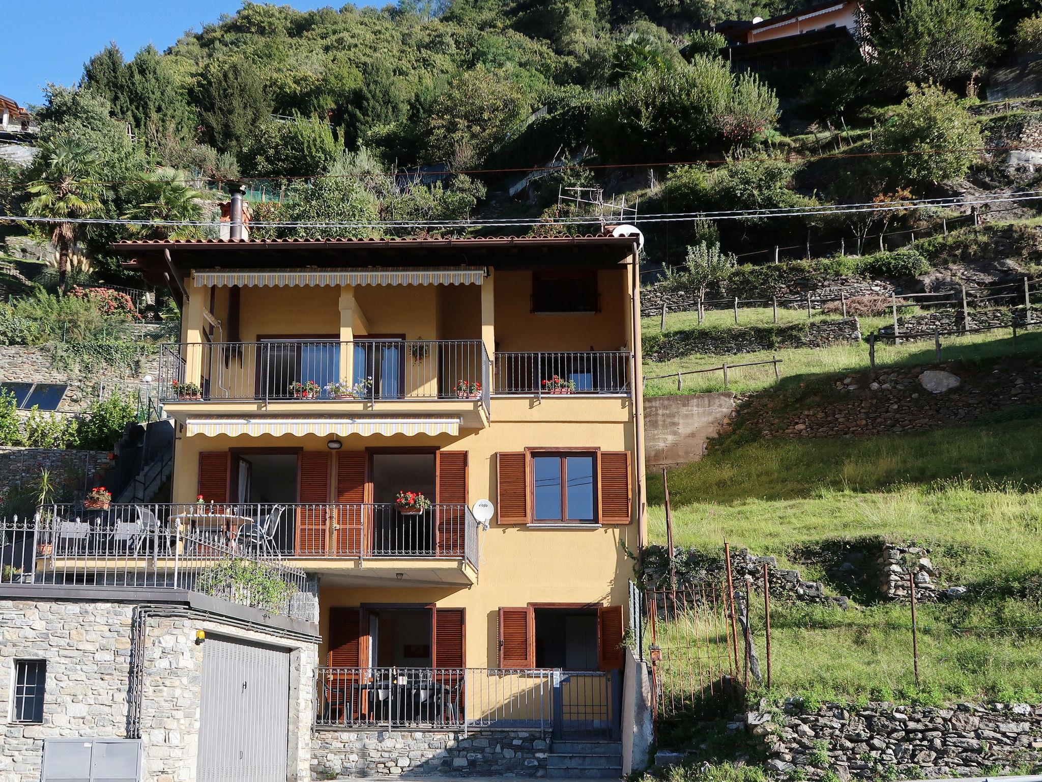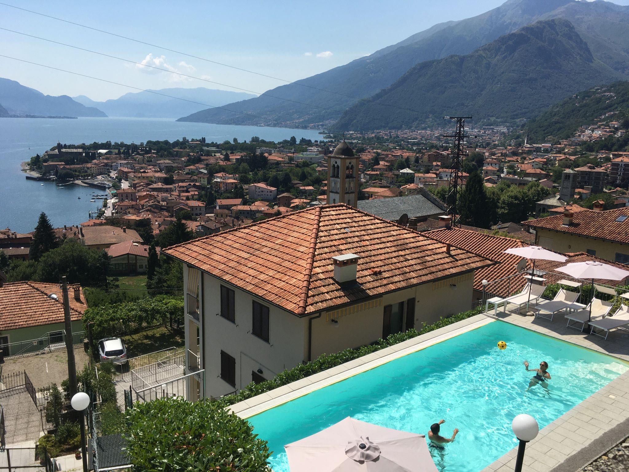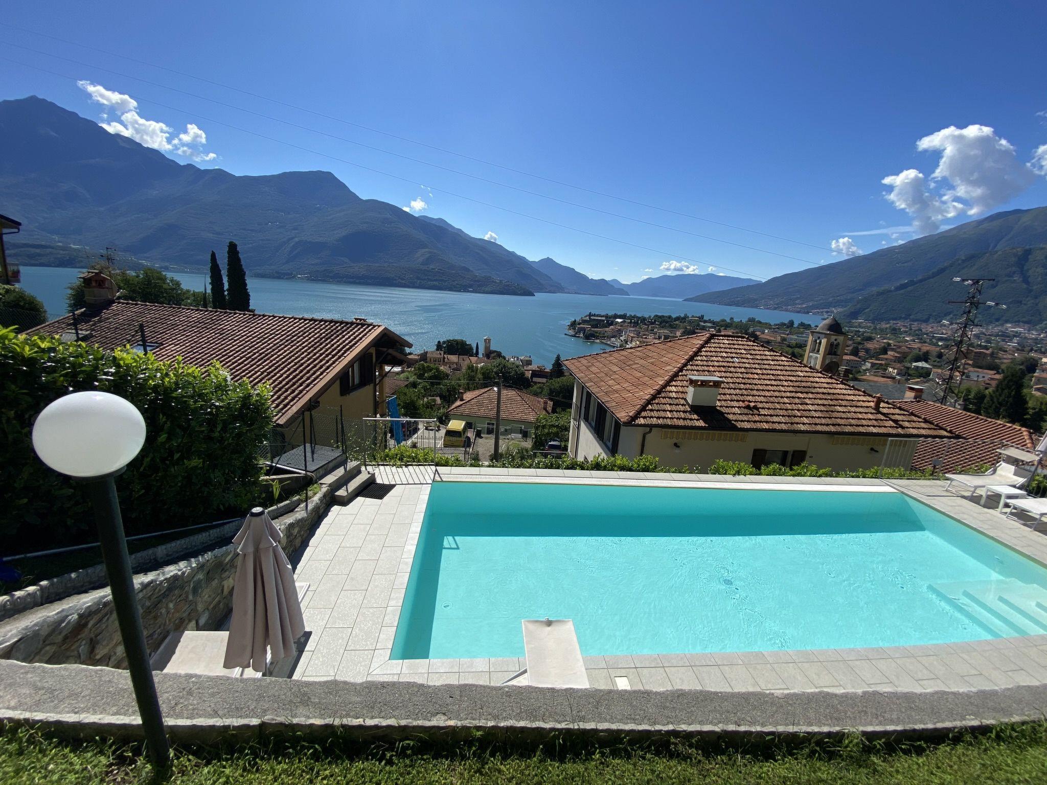 3-family house "Viola". 3 apartments in the property. Above Gravedona 350 m from the centre of Gravedona, 48 km from the centre of Como, 52 km from the centre of Lecco, on a slope, in the residential district, 350 m from the lake, located by a road. For shared use: property (fenced), terraced garden with lawn and trees, lawn for sunbathing, swimming pool (10 x 4 m, depth 140 cm, seasonal availability: 01.May. - 01.Oct.). Outdoor shower, barbecue, pool maintenance by the owner/gardener. Stepped path to the house. Shop 350 m, supermarket 1 km, bus stop "Gravedona" 250 m, railway station "Como" 48 km, pebble beach 2.2 km, outdoor swimming pool 2.2 km. Marina 350 m, golf course (18 hole) 27 km. Please note: the owner lives in the same residence.