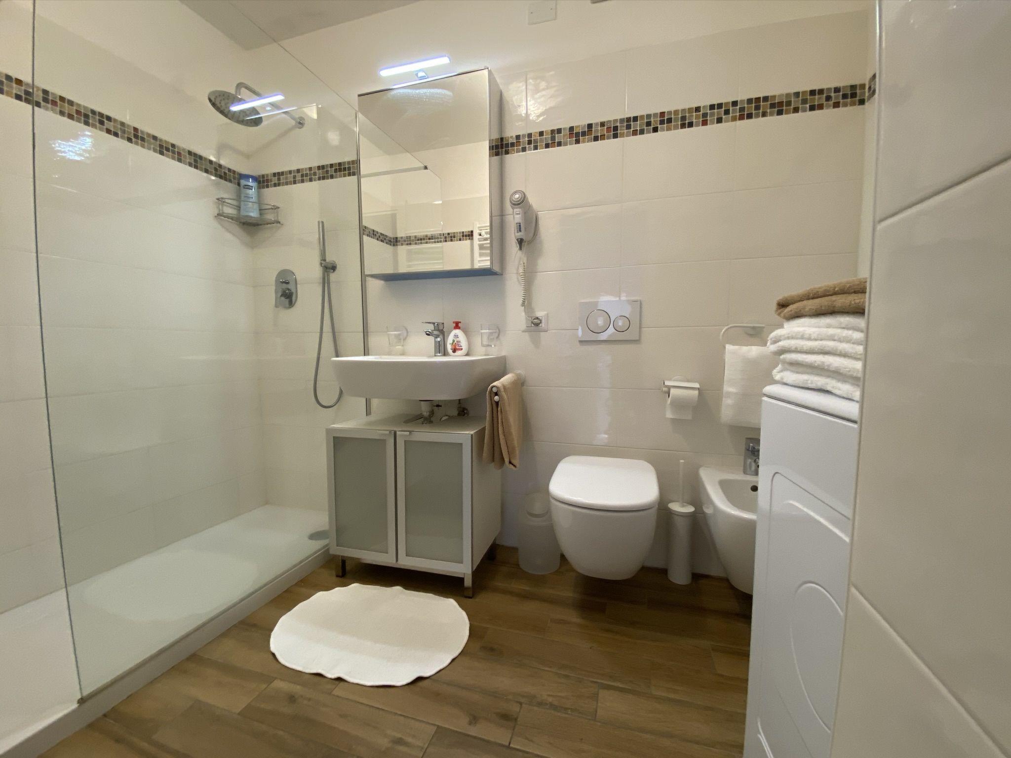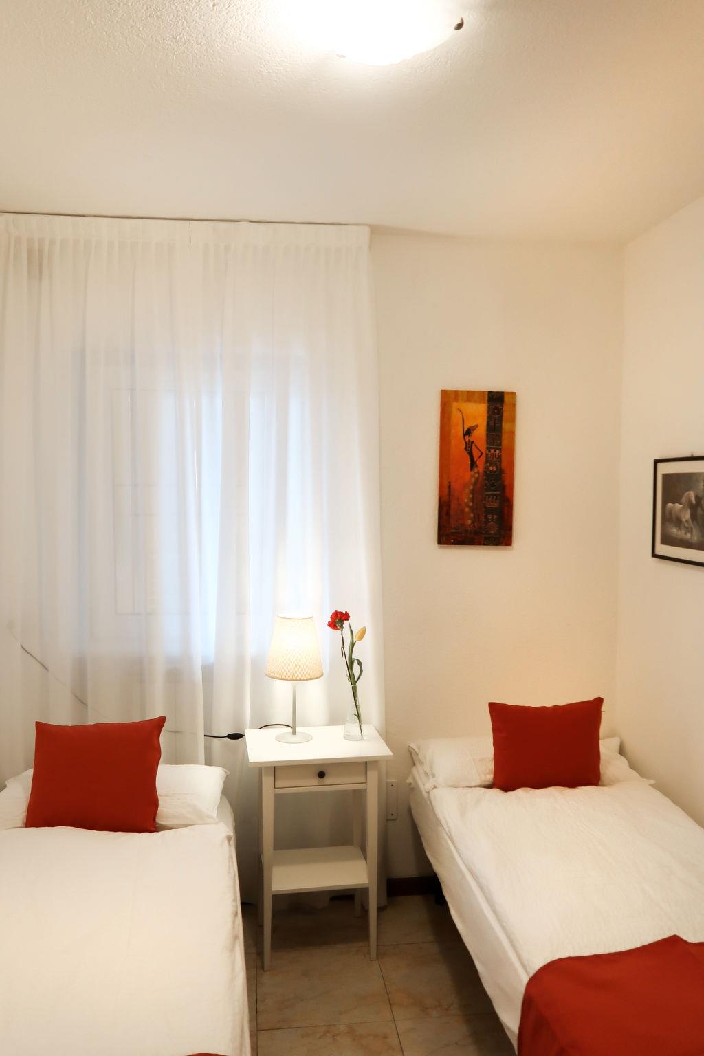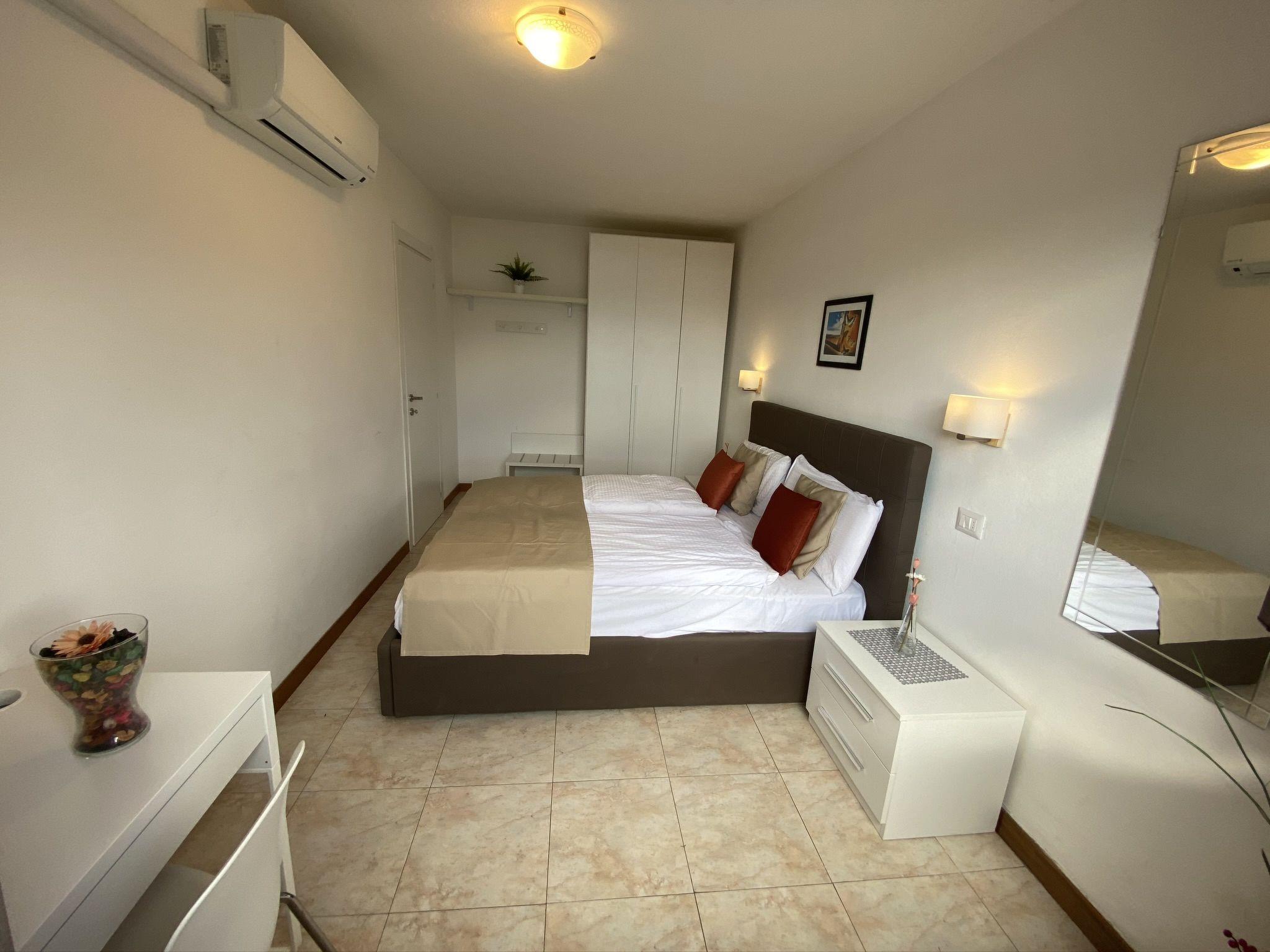"Viola", 3-room apartment 45 m2, on the upper ground floor, south-east facing position. Modern furnishings: living/dining room with dining table, satellite TV and air conditioning. Exit to the balcony. 1 room with 1 french bed (160 cm), air conditioning. 1 room with 2 beds. Open kitchen (oven, dishwasher, 4 gas rings, toaster, kettle, microwave, electric coffee machine). Shower/WC. Gas heating. Balcony, south facing position. Balcony furniture, deck chairs (2). Marvellous view of the lake. Facilities: washing machine, iron, children's high chair, baby cot. Internet (WiFi, free). Parking (1 car). Please note: maximum 1 pet/ dog allowed. Private entrance. IT013249C2FPZHQV9R