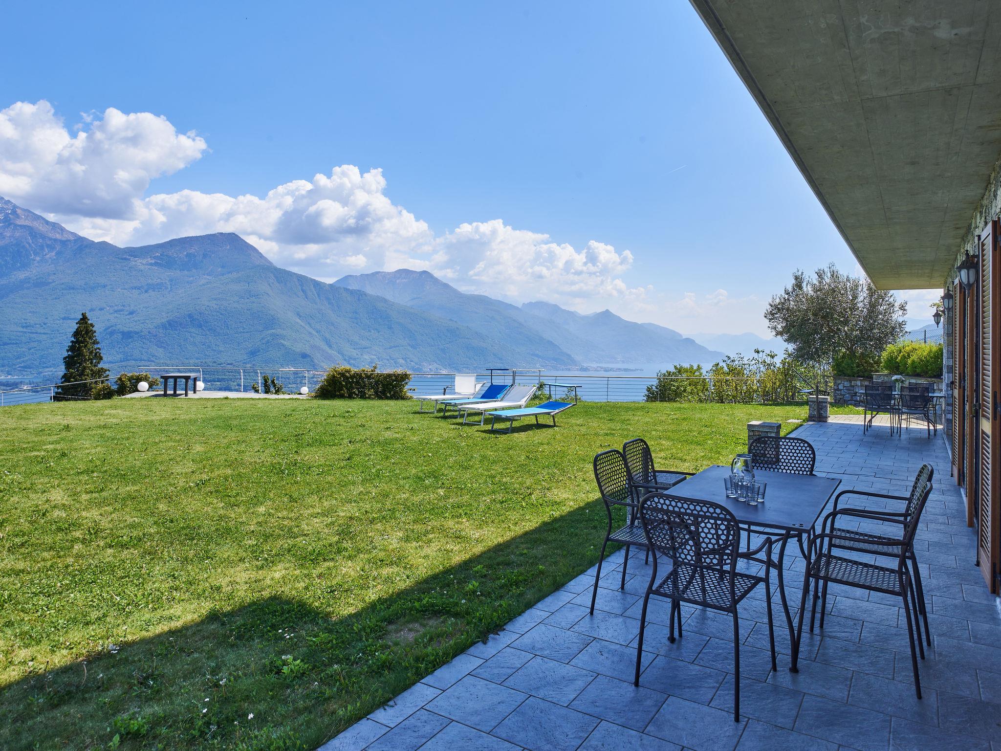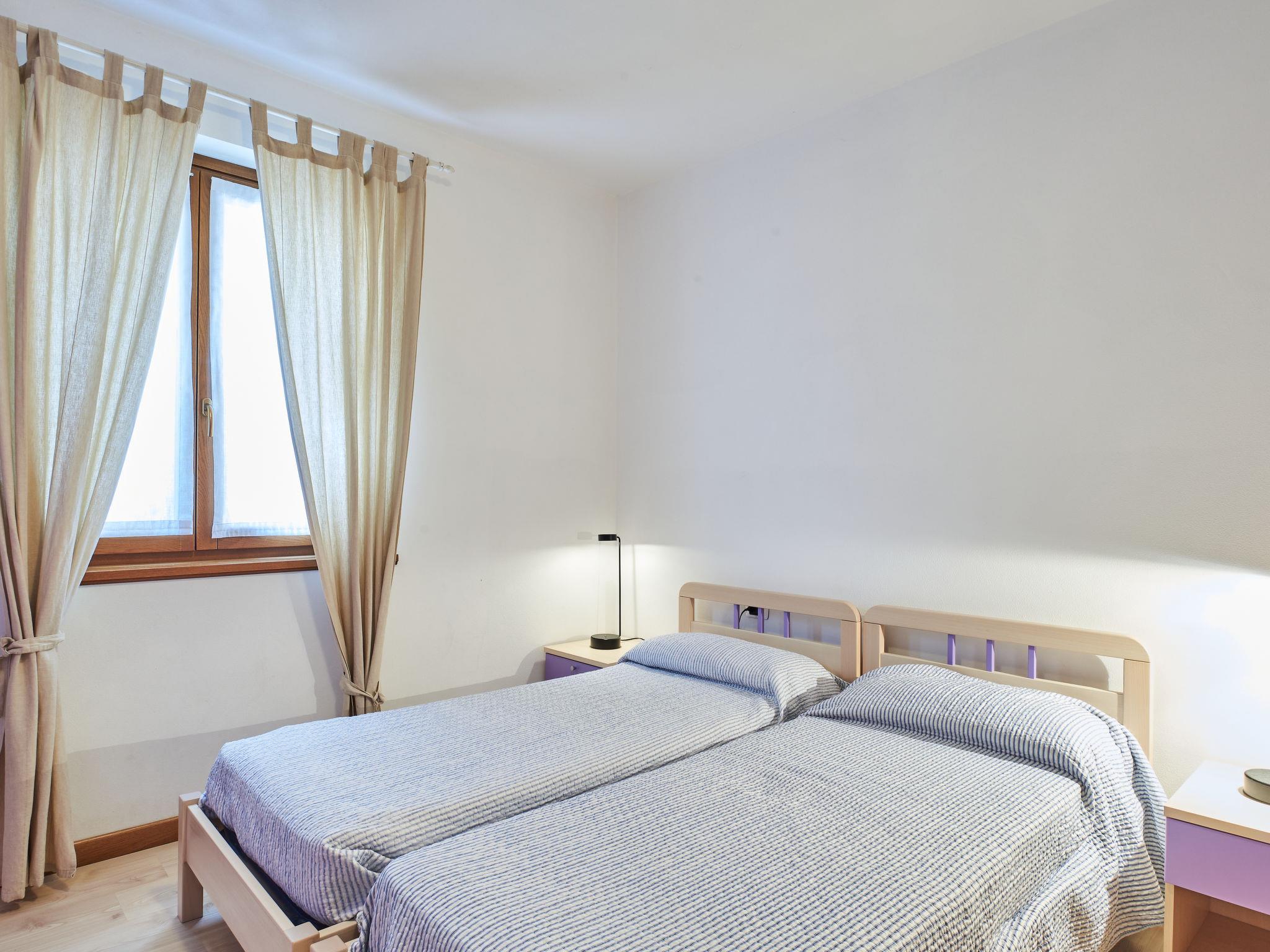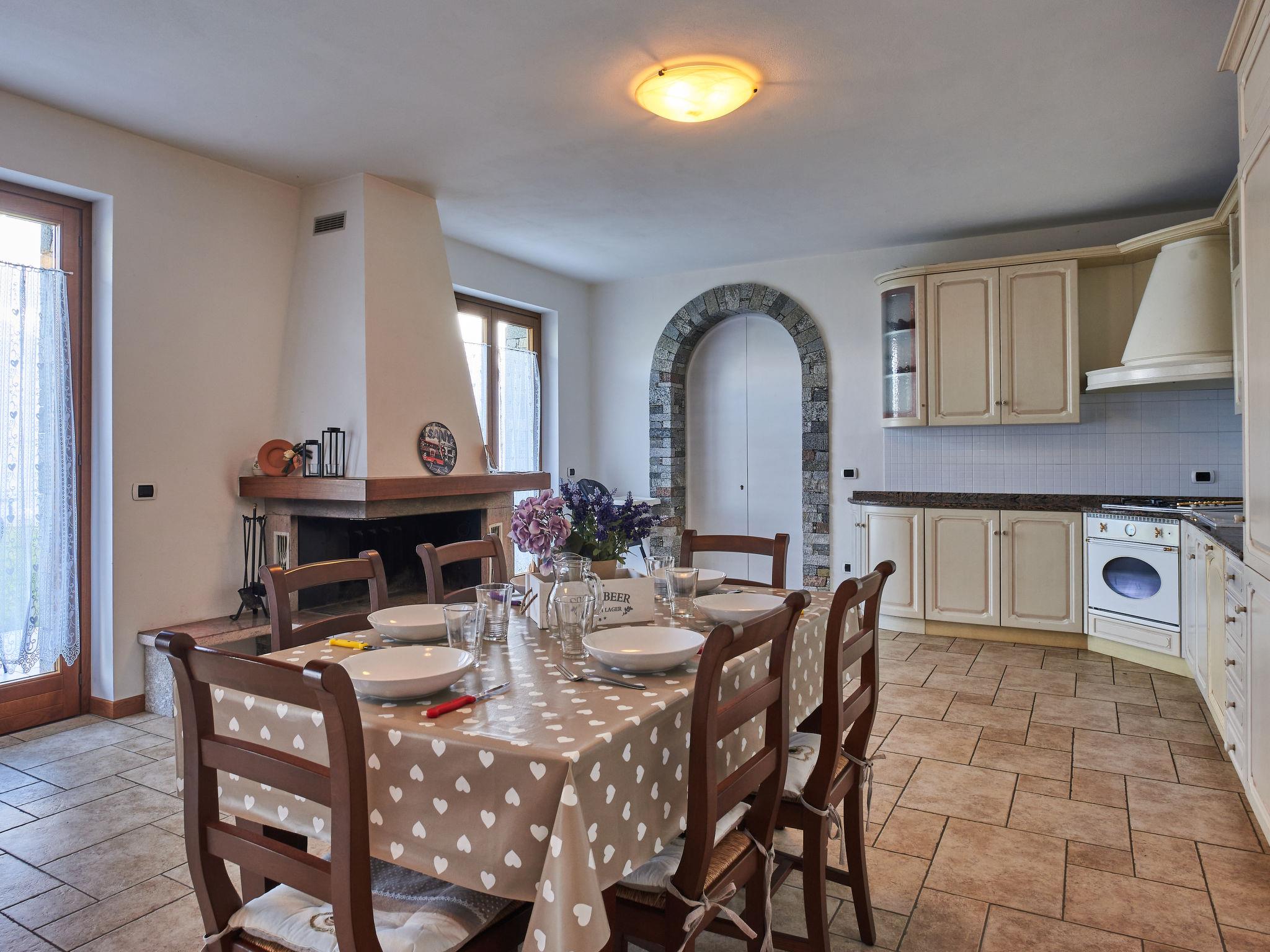 3-room apartment 85 m2, on the ground floor. Large living/dining room with open-hearth fireplace, dining table and satellite TV. 1 double bedroom. 1 room with 2 beds and 1 x 2 bunk beds. Open kitchen (4 hot plates, oven, dishwasher, toaster, freezer, electric coffee machine). Exit to the terrace. Shower/WC. Gas heating. Terrace partly roofed, lawn. Terrace furniture, deck chairs (4). Panoramic view of the lake and the mountains. Facilities: children's high chair, baby cot for up to 2 year olds. Internet (WiFi, free). Parking (2 cars). Please note: non-smokers only. Private entrance. IT013249C2675WBI4C