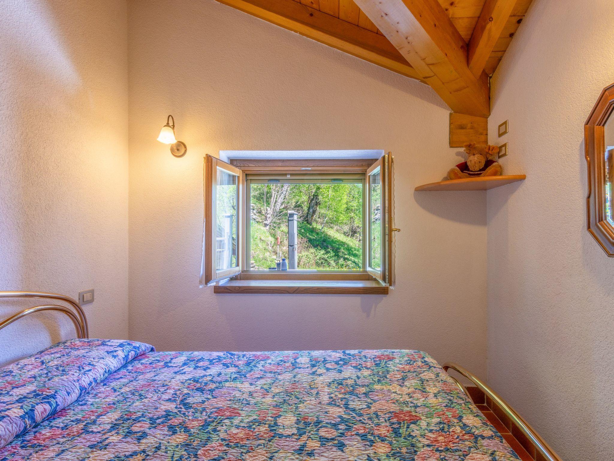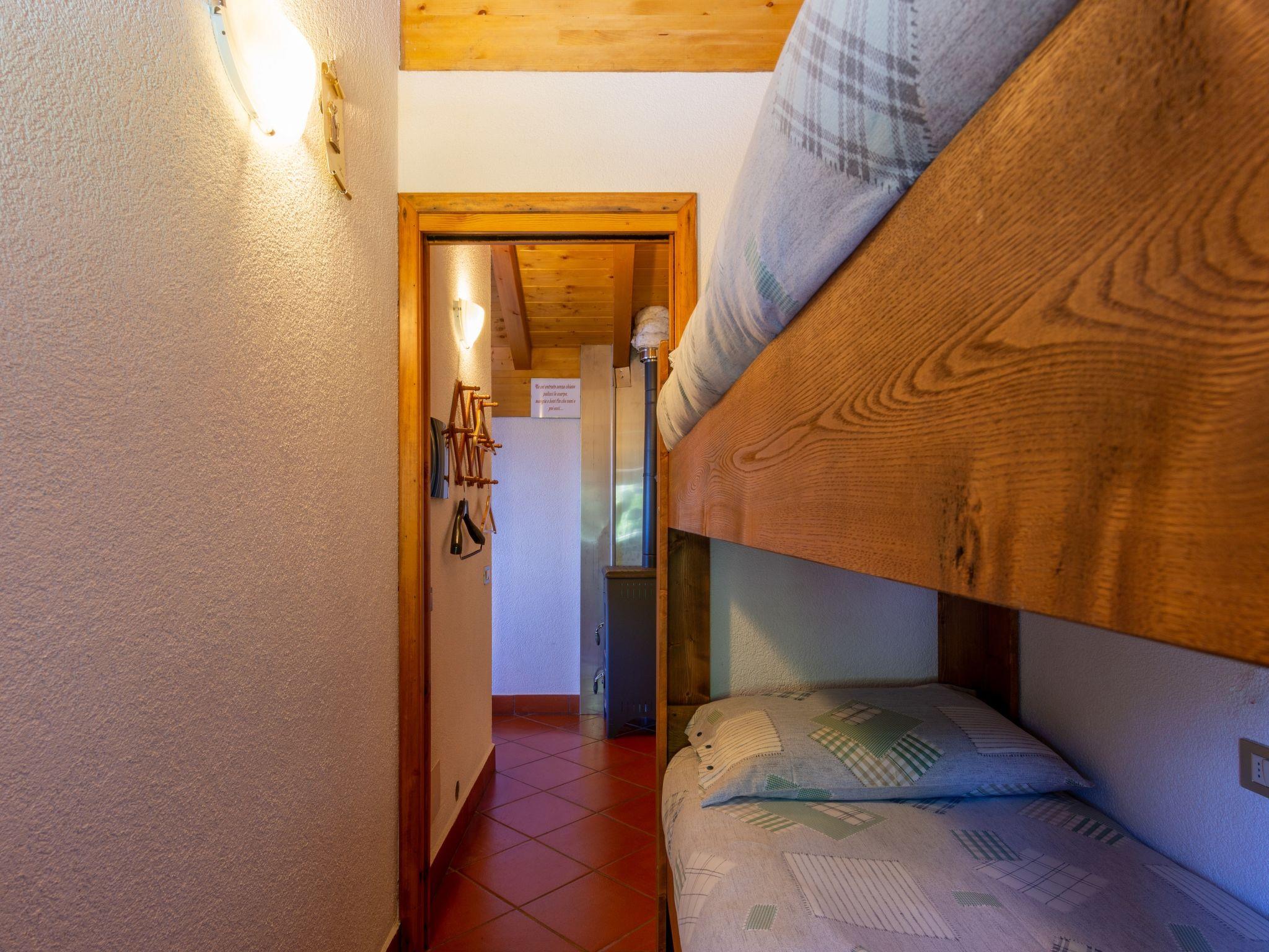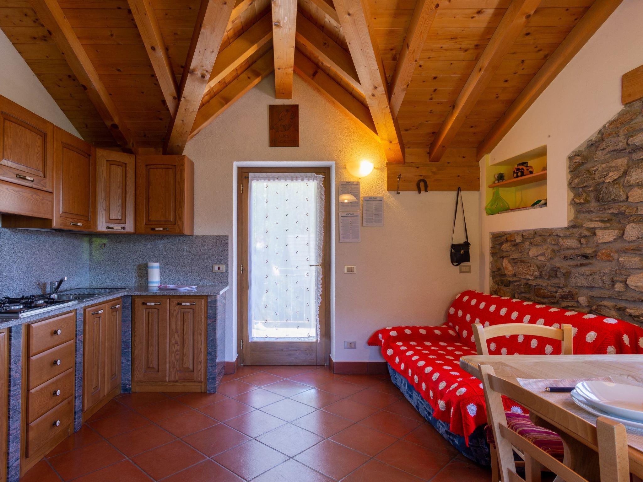 3-room house 32 m2, south facing position. Rustic and cosy furnishings: living/sleeping room with 1 double sofabed, open-hearth fireplace, dining table, satellite TV and wood-burning stove. Exit to the terrace. 1 room with 1 french bed (160 cm). 1 room with 1 x 2 bunk beds. Open kitchen (Gas stove, 4 gas rings). Shower/WC. Wood heating. Solar power Heating not available in all rooms. Terrace. Terrace furniture, deck chairs (2). Marvellous panoramic view of the lake and the mountains. Facilities: children's high chair, baby cot. Maximum 2 pets/ dogs allowed. IT013178C2FIJLQOZ6