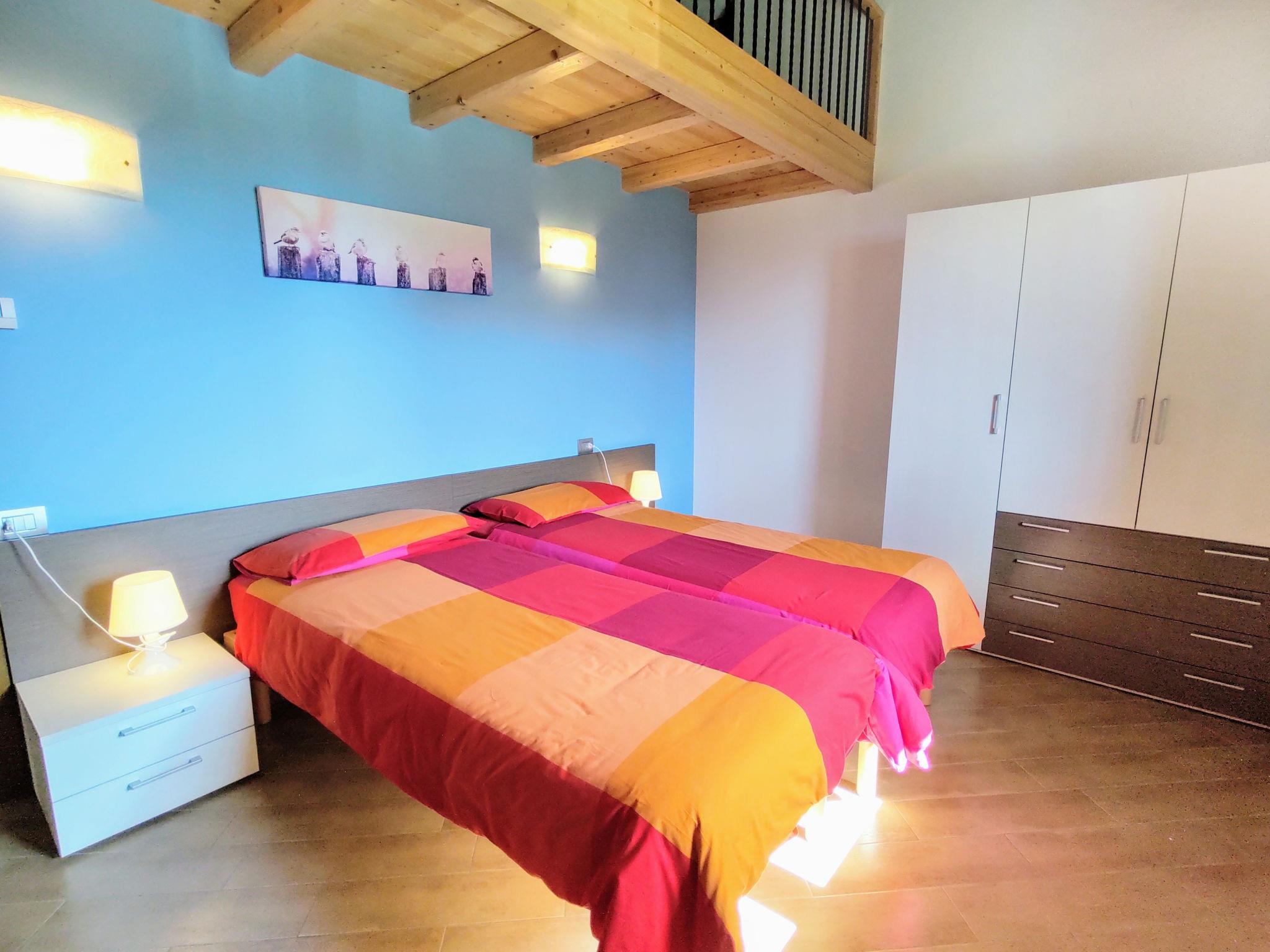 "Il Nido d'Aquila (GRV635)", 3-room house 70 m2 on 2 levels, south facing position. Practical and wooden furniture furnishings: living/sleeping room with 1 double sofabed, dining table, satellite TV and wood-burning stove. Exit to the terrace. Open kitchen (oven, 4 gas rings, toaster, kettle, freezer, electric coffee machine). Upper floor: 1 room with 1 french bed (160 cm). 1 room with 2 beds. Shower/WC. Gas heating. Terrace. Terrace furniture, sitting area. Marvellous panoramic view of the lake and the mountains. Facilities: washing machine, iron, children's high chair, baby cot. Internet (WiFi, free). Maximum 2 pets/ dogs allowed. IT013178C2UQ4BBURM