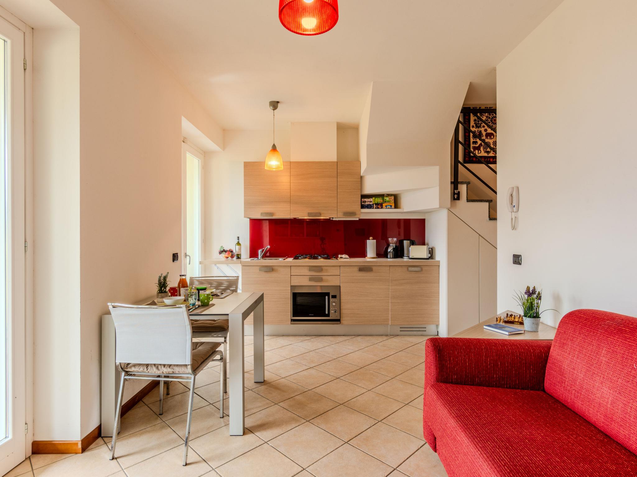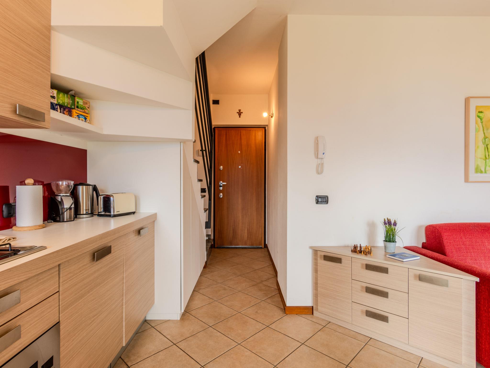 "Paradiso", 2-room apartment 55 m2 on 2 levels on 1st floor. Beautiful furnishings: living/dining room with dining table. Exit to the balcony. Open kitchen (dishwasher, Gas stove, 4 gas rings, toaster, kettle, microwave, electric coffee machine). Shower/bidet/WC. Upper floor: 1 double bedroom with sloping ceilings. Shower/bidet/WC. Gas heating. Heating available only from 15.10. to 15.04. Natural stone floors. Large balcony. Balcony furniture, deck chairs (2). Very beautiful view of the lake, the mountains and the resort. Facilities: washing machine, hair dryer. Internet (WiFi, free). Garage on the property (1 car). Please note: non-smokers only. Maximum 1 pet/ dog allowed. Private entrance, smoke alarm, fire extinguisher. IT013249C2WWTVO648