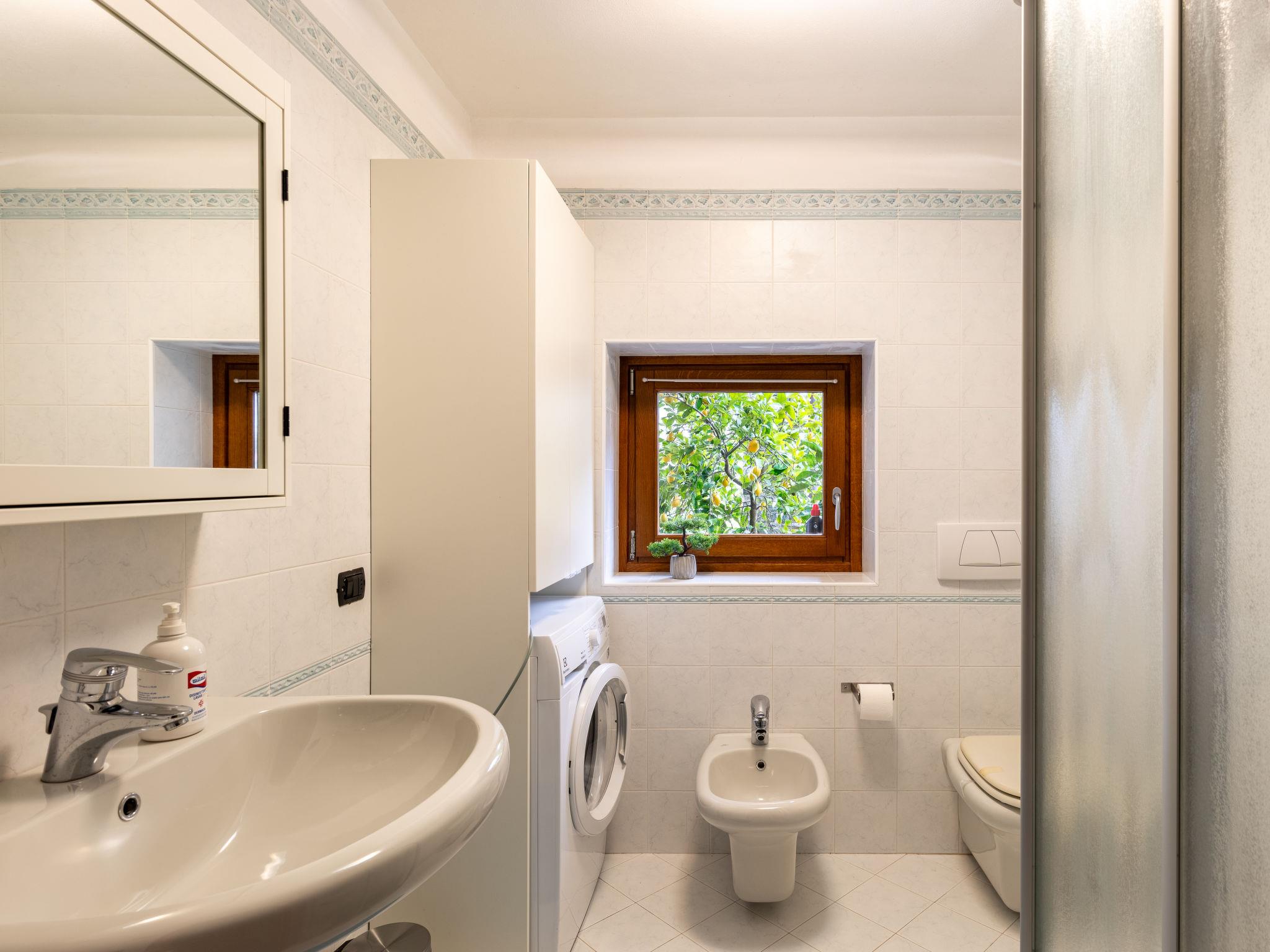 3-room house 90 m2 on 3 levels. Beautiful and tasteful furnishings: open living/dining room with open-hearth fireplace, dining table and TV (flat screen). Exit to the garden, to the balcony. Open kitchen (oven, dishwasher, Gas stove, 4 gas rings, toaster, kettle, microwave, freezer, electric coffee machine). On the lower ground floor: 1 room with 2 beds. Exit to the garden. Shower/bidet/WC. Upper floor: open, with sloping ceilings, 1 room with 1 double sofabed (140 cm), 1 double bed. Exit to the balcony. Bath/bidet/WC. Gas heating. Heating available only from 15.10. to 15.04. Natural stone floors. 3 balconies, patio, large garden. Terrace furniture, balcony furniture, deck chairs (2). Side view of the lake and the mountains. Facilities: washing machine, children's high chair, baby cot for up to 2 year olds. Internet (WiFi, free). Please note: non-smoking house. Maximum 1 pet/ dog allowed. IT013249C2352NETSY