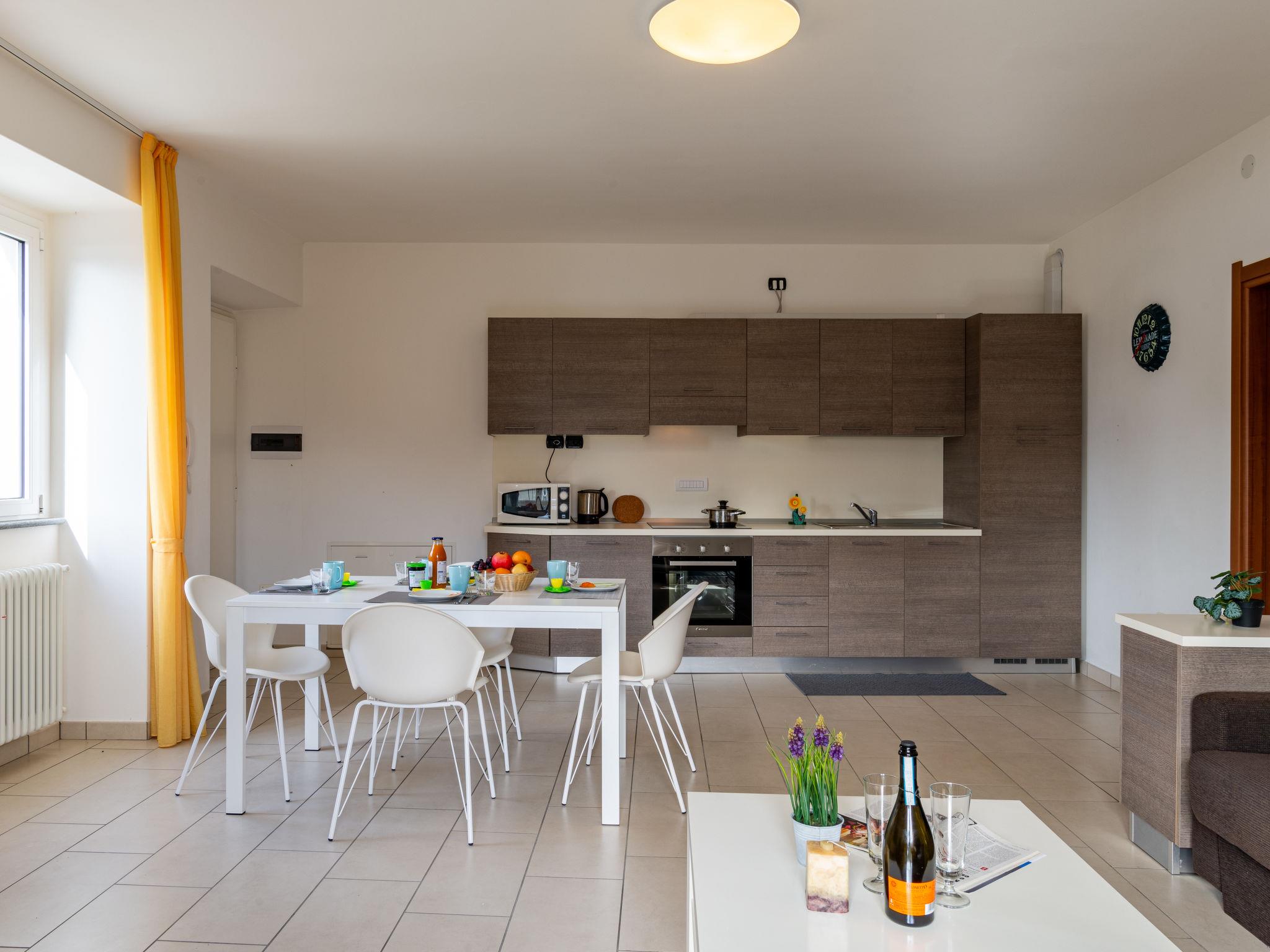 "Raggio di Sole Apartment B", 2-room apartment 75 m2, on the ground floor. Practical and beautiful furnishings: open living/sleeping room with 1 double sofabed, dining table and TV (flat screen). Exit to the terrace. 1 double bedroom with Dressing room. Open kitchen (oven, 4 induction hot plates, toaster, kettle, microwave, freezer, electric coffee machine). Shower/bidet/WC. Gas heating. Heating available only from 15.10. to 15.04. Natural stone floors. Terrace furniture, deck chairs (2). Marvellous panoramic view of the lake, the mountains and the resort. Facilities: hair dryer. Internet (WiFi, free). Please note: non-smokers only. Maximum 1 pet/ dog allowed. Private entrance. IT013249C245QZ8TOU