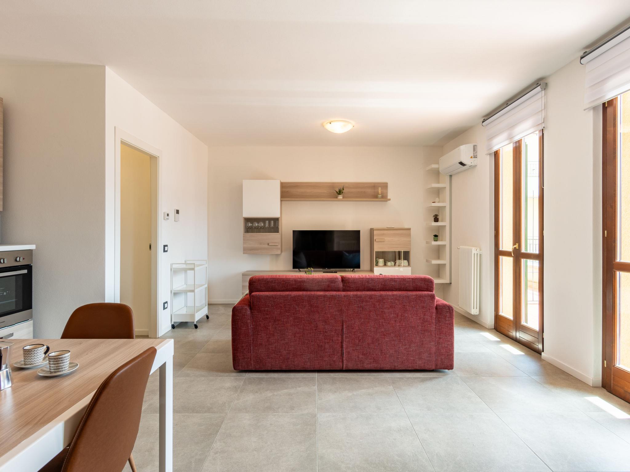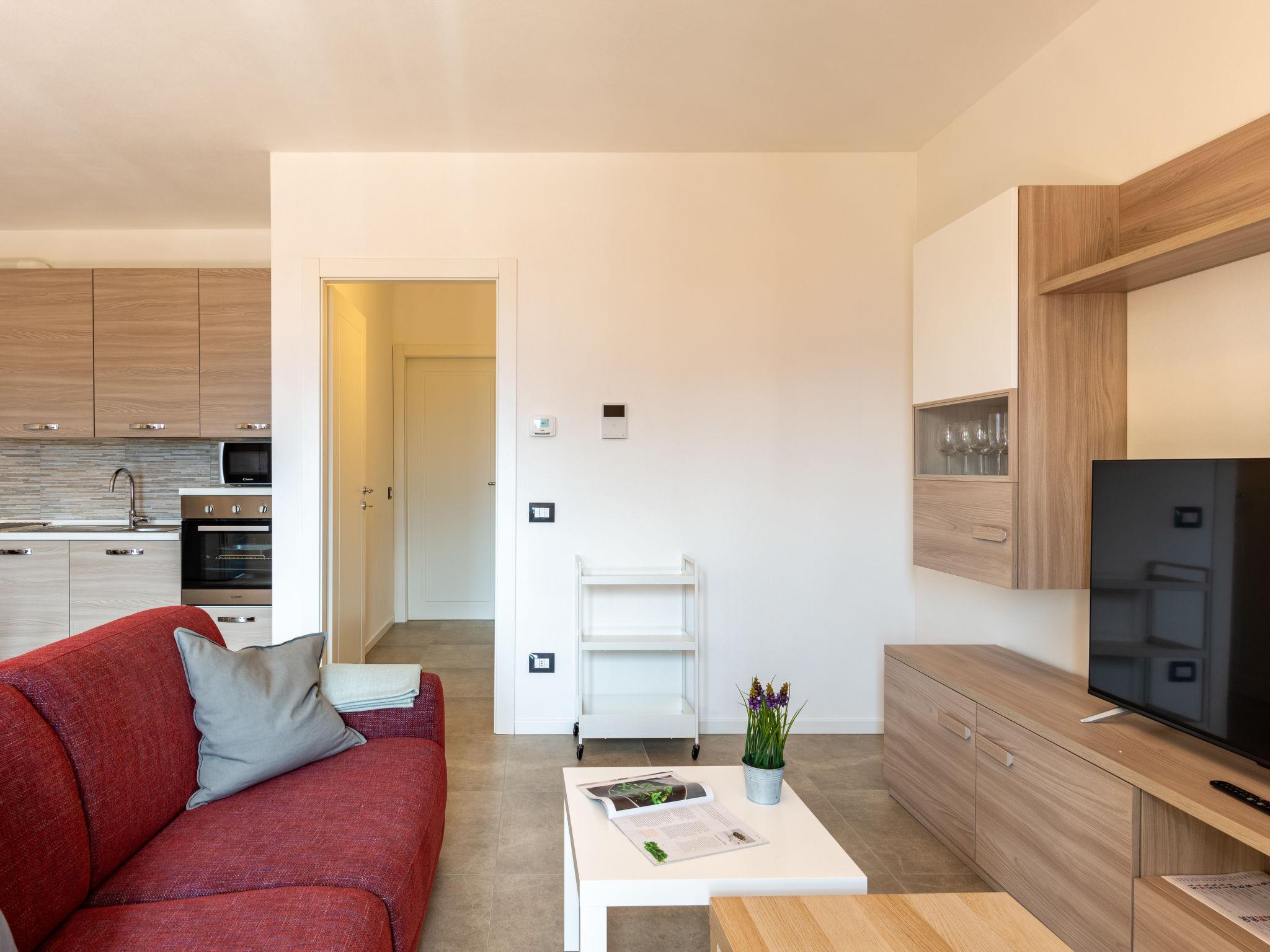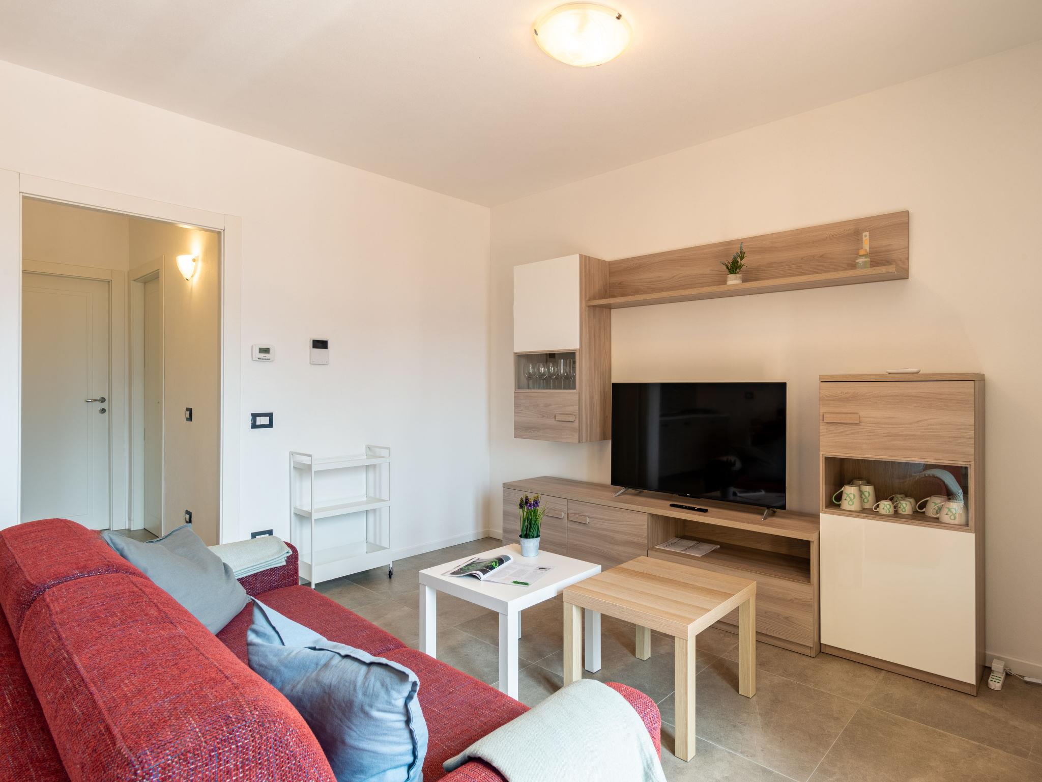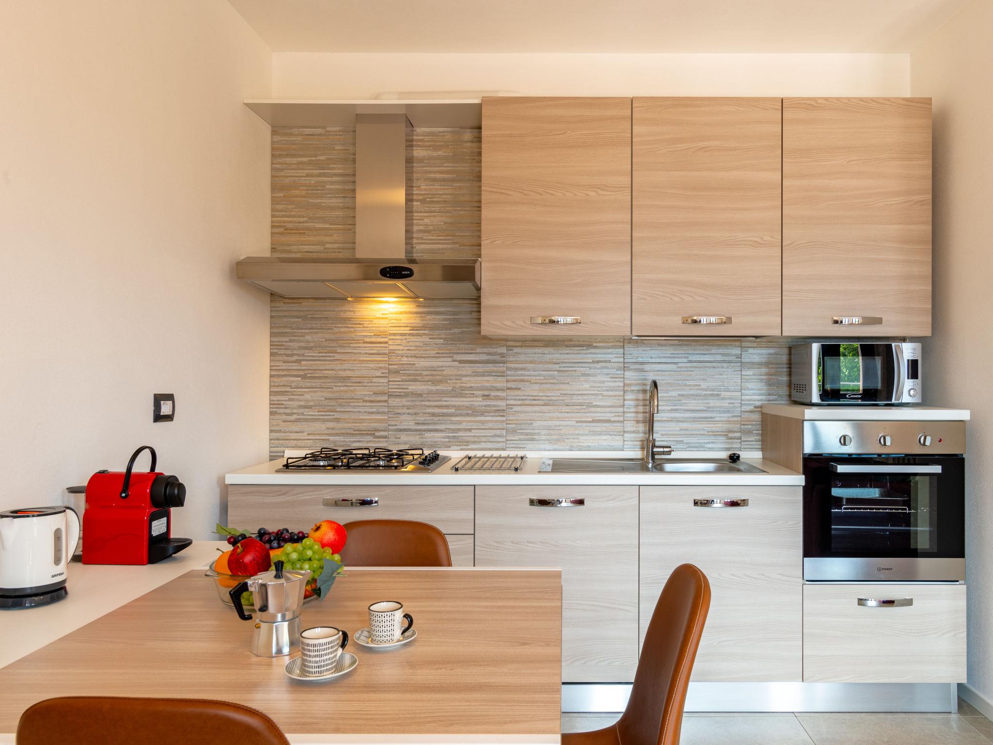 2-room apartment 65 m2 on 1st floor. Bright, fully renovated in 2022, comfortable and beautiful furnishings: open living/sleeping room with 1 double sofabed, dining table and TV (flat screen). Exit to the balcony. 1 double bedroom. Open kitchen (oven, dishwasher, Gas stove, 4 gas rings, toaster, kettle, microwave, freezer, electric coffee machine, Capsules for coffee machine (Nespresso)). Shower/bidet/WC. Gas heating, air-conditioning. Heating available only from 15.10. to 15.04. Natural stone floors. Large terrace 15 m2. Terrace furniture, deck chairs (2), sitting area. Beautiful view of the lake, the mountains and the resort. Facilities: washing machine, children's high chair, baby cot for up to 2 year olds, hair dryer. Internet (WiFi, free). Garage (extra) (1 car). Please note: suitable for families. Non-smokers only. Smoke alarm, fire extinguisher. IT013249C2B29W647I