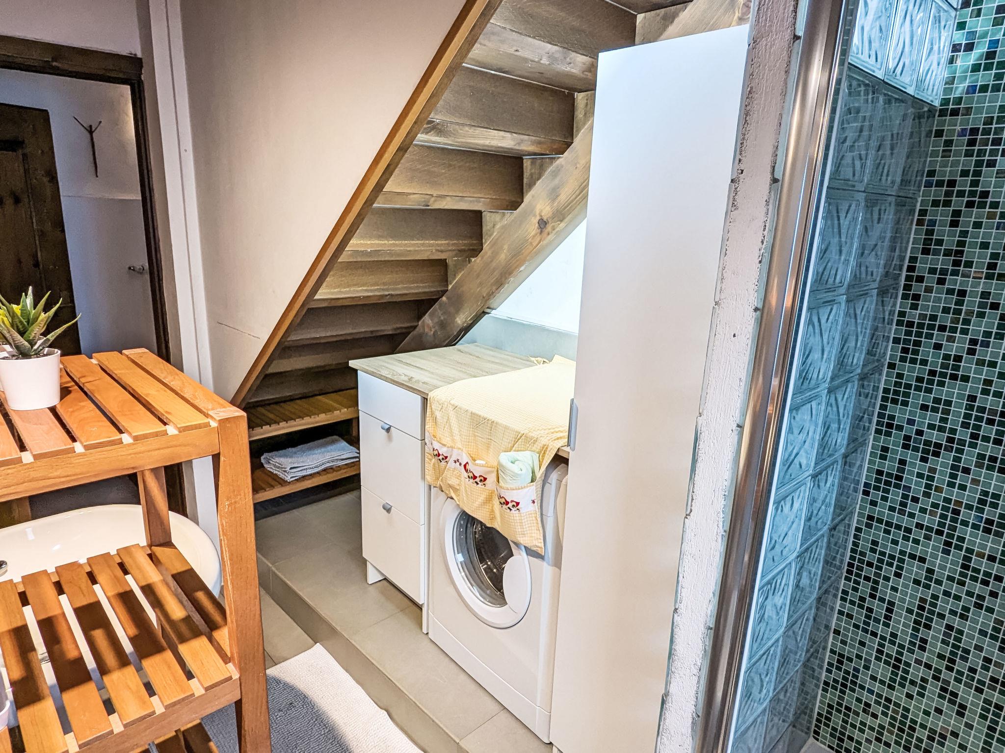 3-room house 70 m2 on 2 levels. Beautiful and tasteful furnishings: open living/dining room with Scandinavian wood stove (only for decoration), dining table and TV (flat screen). Exit to the garden, to the balcony, to the terrace. Open gallery. Open kitchen (oven, dishwasher, Gas stove, 4 gas rings, toaster, kettle, microwave, freezer). On the lower ground floor: 1 room with 1 x 2 bunk beds, 1 double bed. Exit to the garden. Shower/bidet/WC. Gas heating. Heating available only from 15.10. to 30.04. Natural stone floors. Small balcony, large terrace, garden. Terrace furniture, deck chairs (2). Marvellous panoramic view of the lake, the mountains and the resort. Facilities: washing machine, children's high chair, hair dryer. Internet (WiFi, free). Please note: non-smoking house, no parking. Maximum 1 pet/ dog allowed. Smoke alarm, fire extinguisher. IT013249C2G3DY7FHC
