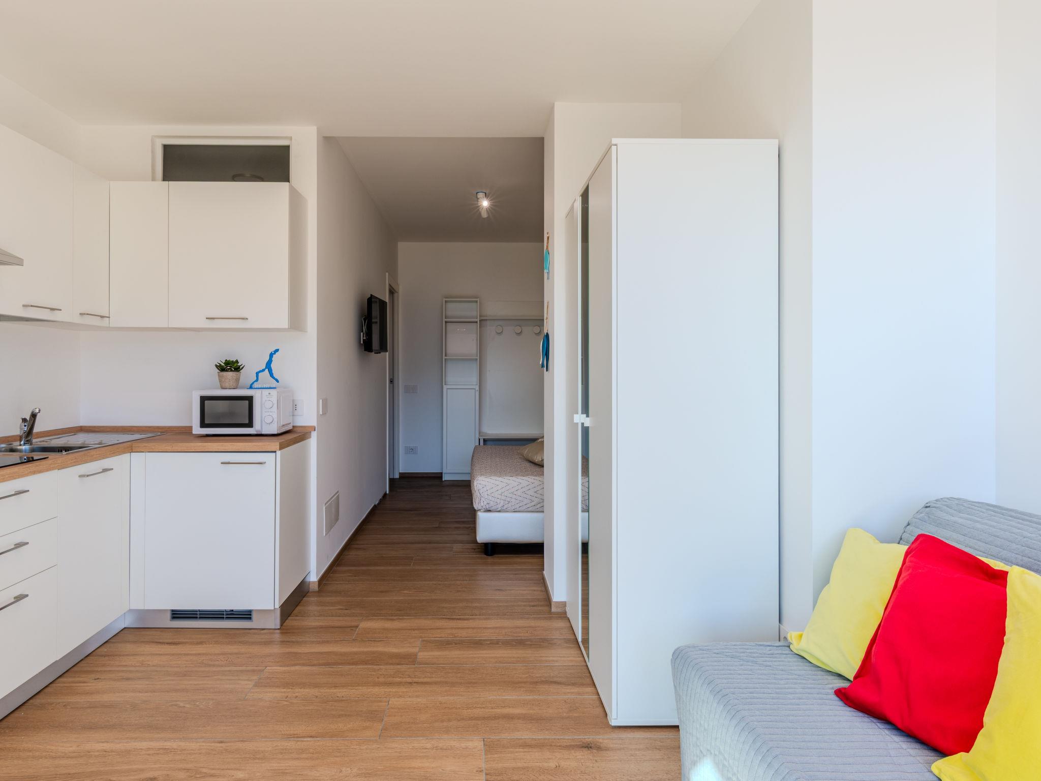 "Luccio", 1-room apartment 40 m2 on 1st floor. Comfortable and modern furnishings: open living/sleeping room with panoramic window with 1 double sofabed (140 cm, length 190 cm), 1 double bed (175 cm, length 190 cm), TV (flat screen). Exit to the balcony. Kitchenette (4 induction hot plates, toaster, kettle, microwave, freezer) with dining table. Shower/bidet/WC. Air-conditioning, underfloor heating. Heating available only from 15.10. to 30.04. Natural stone floors. Balcony. Balcony furniture. Marvellous panoramic view of the lake, the mountains and the resort. Facilities: hair dryer. Internet (WiFi, free). Please note: non-smokers only. Smoke alarm, fire extinguisher. IT013249C28OP7O8TH