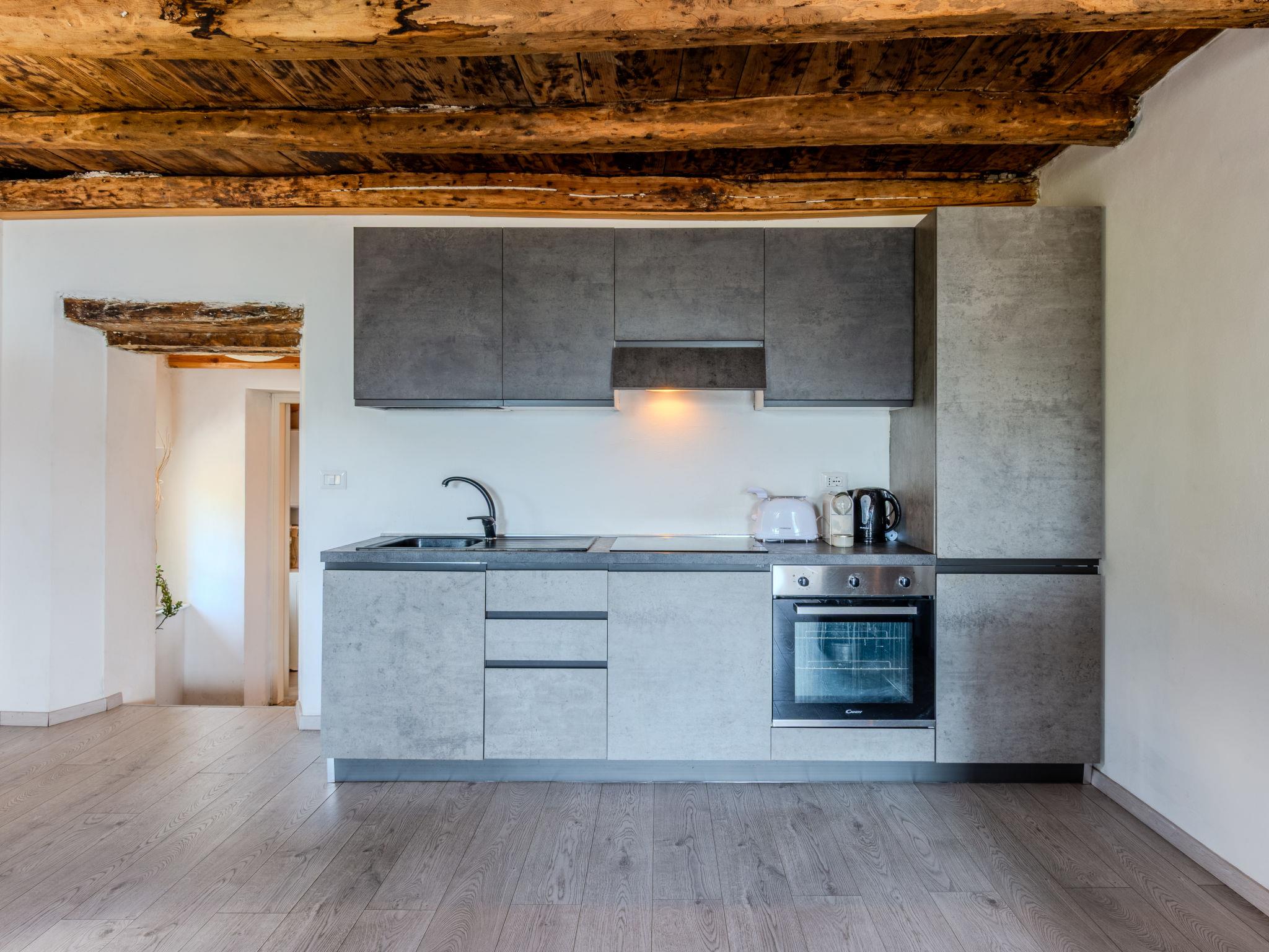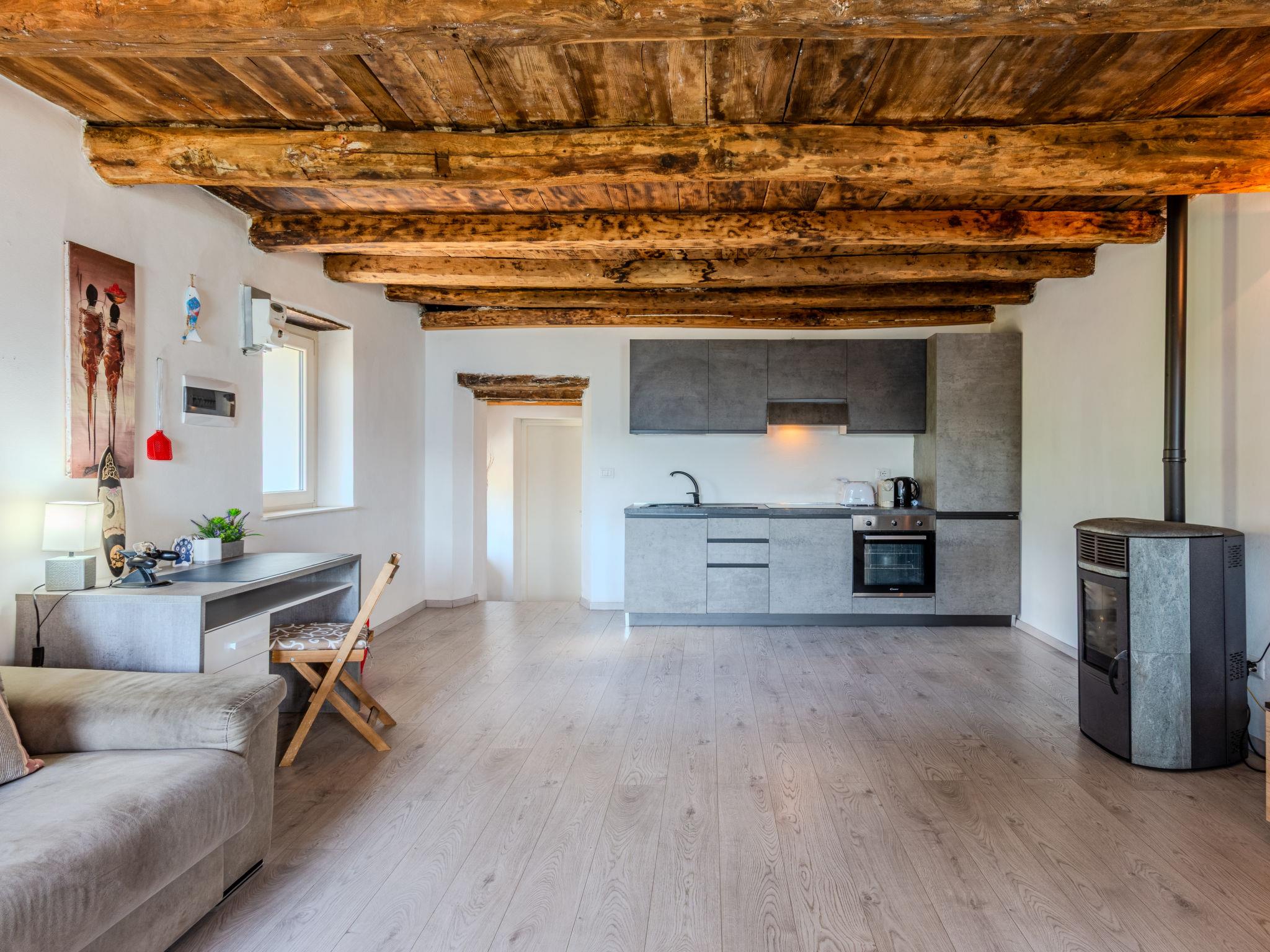 1-room Loft 50 m2 on 1st floor. Renovated, comfortable and beautiful furnishings: open living/sleeping room with 1 double sofabed (160 cm, length 190 cm), dining table and TV (flat screen), heating stove. Exit to the balcony. Open kitchen (oven, 4 induction hot plates, toaster, kettle, microwave, freezer, electric coffee machine). Bath/WC. No heating option. Parquet floors, natural stone floors. Small balcony. Balcony furniture. Marvellous panoramic view of the lake, the mountains and the resort. Facilities: washing machine, hair dryer. Internet (WiFi, free). Parking at 50 m. Please note: non-smokers only. Maximum 1 pet/ dog allowed. Smoke alarm, fire extinguisher. IT013092C25HEVFLDR