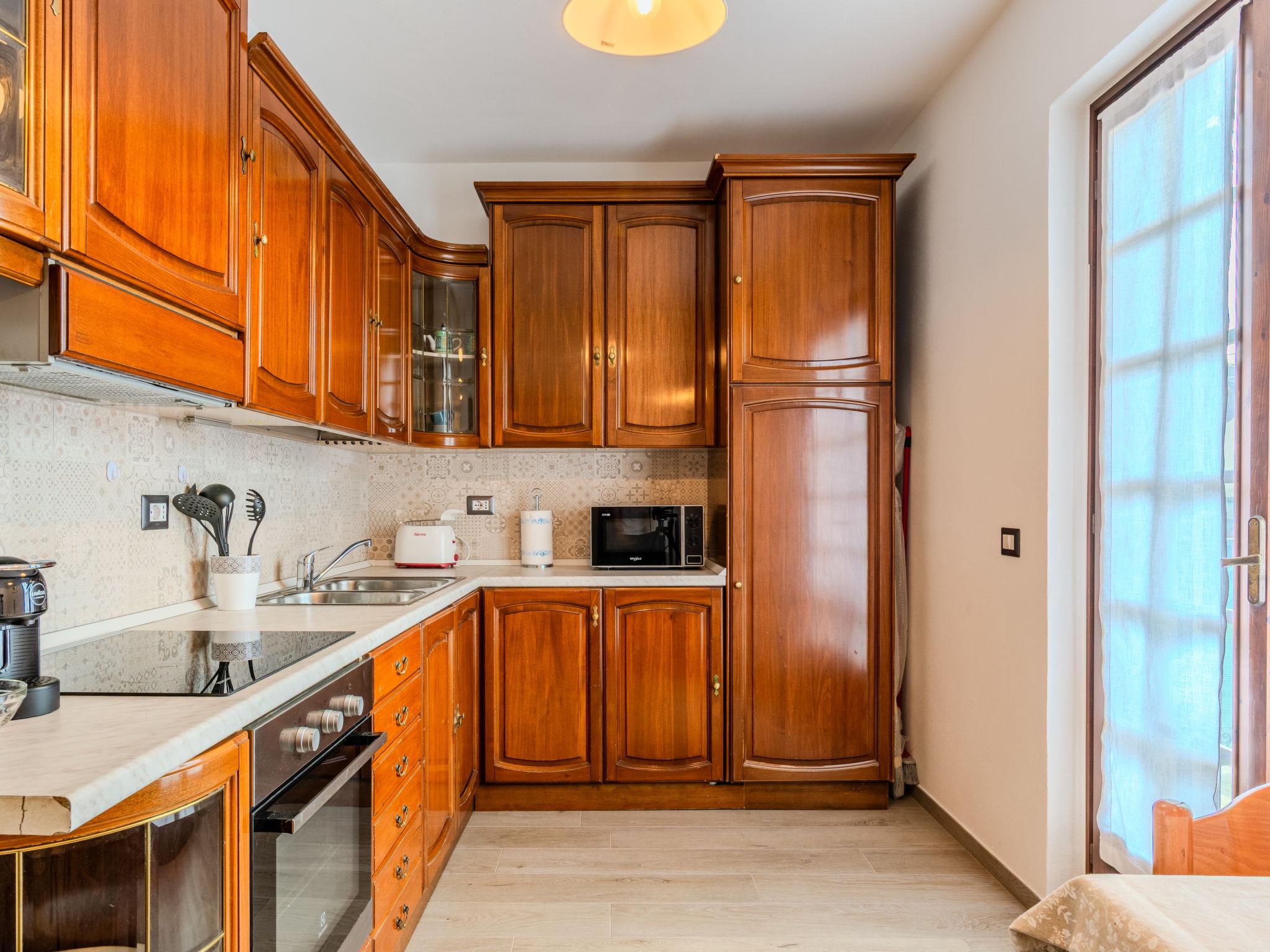 3-room apartment 80 m2, on the upper ground floor. Spacious and bright, renovated in 2025, comfortable and beautiful furnishings: living room with 1 sofabed (130 cm, length 190 cm), dining table and TV. Exit to the balcony. 1 double bedroom. Exit to the garden. 1 double bedroom with TV. Kitchen-/living room (oven, 4 induction hot plates, toaster, kettle, microwave, freezer, electric coffee machine) with dining table. Exit to the balcony. Shower/bidet/WC. Heating available only from 15.10. to 15.04. Wooden floors, natural stone floors. Patio, garden. Balcony furniture, barbecue, deck chairs (2), sitting area. Distant view of the lake and the mountains. Facilities: children's high chair, baby cot for up to 2 year olds. Internet (WiFi, free). Parking space n 1 (1 car) at the house. Please note: suitable for families. Non-smokers only. Maximum 1 pet/ dog allowed. IT013178C29LBME2P7