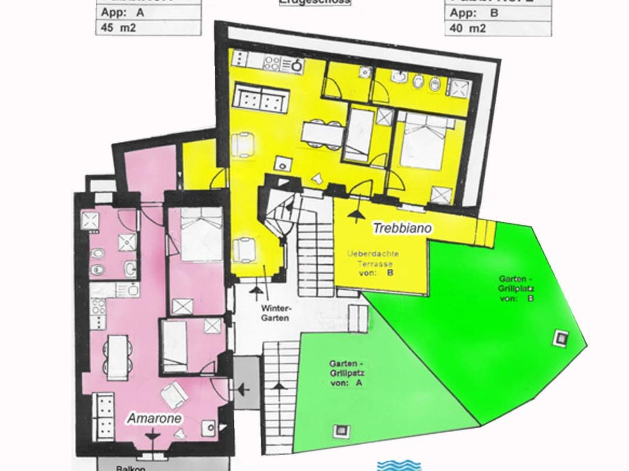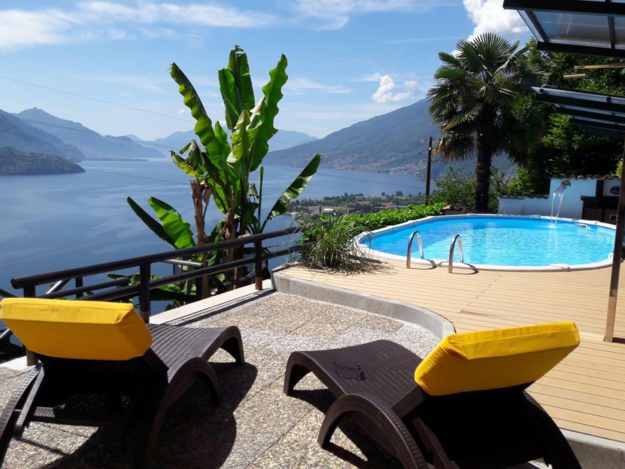 Outside, a private garden seating area with barbecue invites you to linger. From here and from the balcony, which faces the lake, you can enjoy a fantastic view far across Lake Como. A solar-heated communal pool [7 x 3.5 m] with sun terraces and a pizza oven are available for communal relaxation. A mini zoo with goldfish pond, dwarf rabbits and chickens enriches the offer and provides variety.
