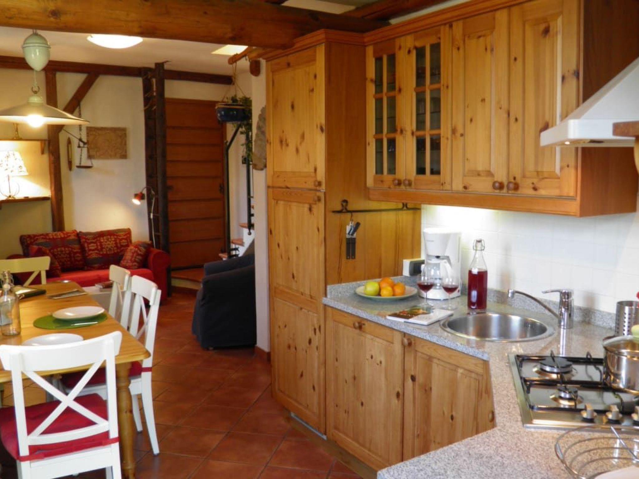 The rooms of the Ribolla are comfortably and modernly furnished and offer everything you need for a relaxing stay. From the rustic fireplace in the living area, which radiates a soothing warmth and cosiness, to the open and fully equipped kitchen, which leaves nothing to be desired. The integrated dishwasher, washing machine, iron and 4-burner gas hob are just a few examples of the well thought-out equipment. In addition, satellite TV and WIFI internet connection provide entertainment and comfort. The cosy bedrooms facing the lake and a small sleeping gallery, which can be reached via a wooden ladder, guarantee peaceful nights.