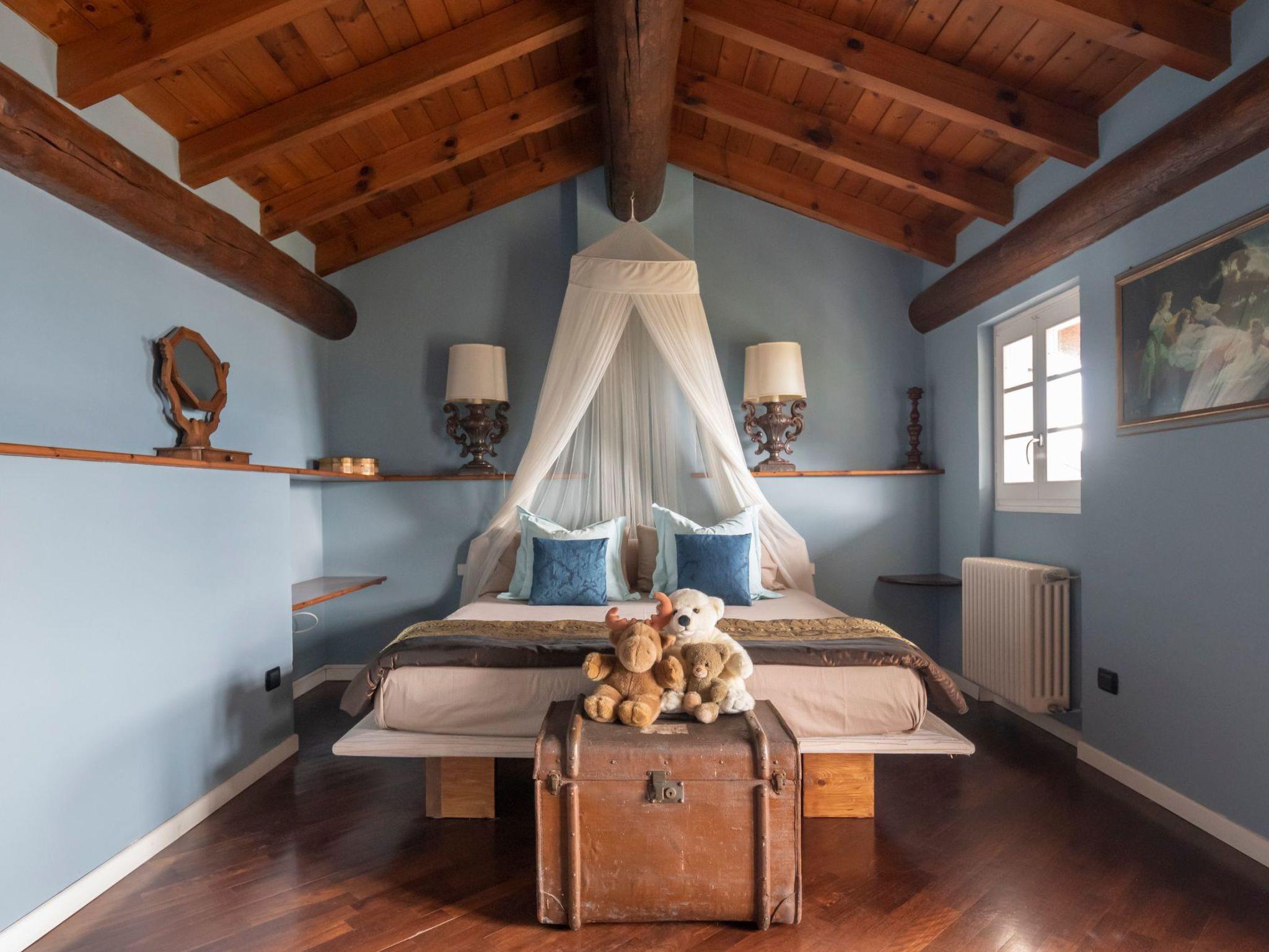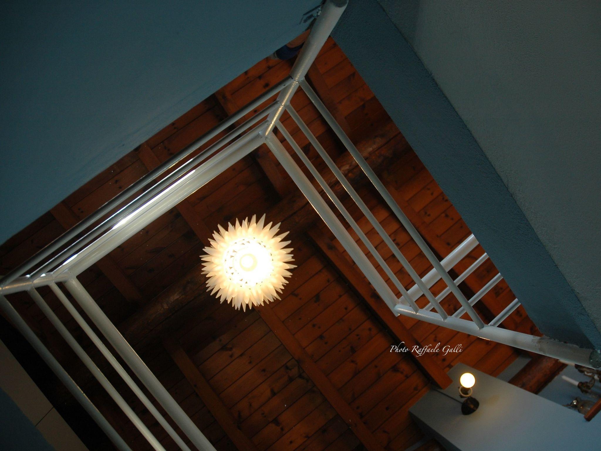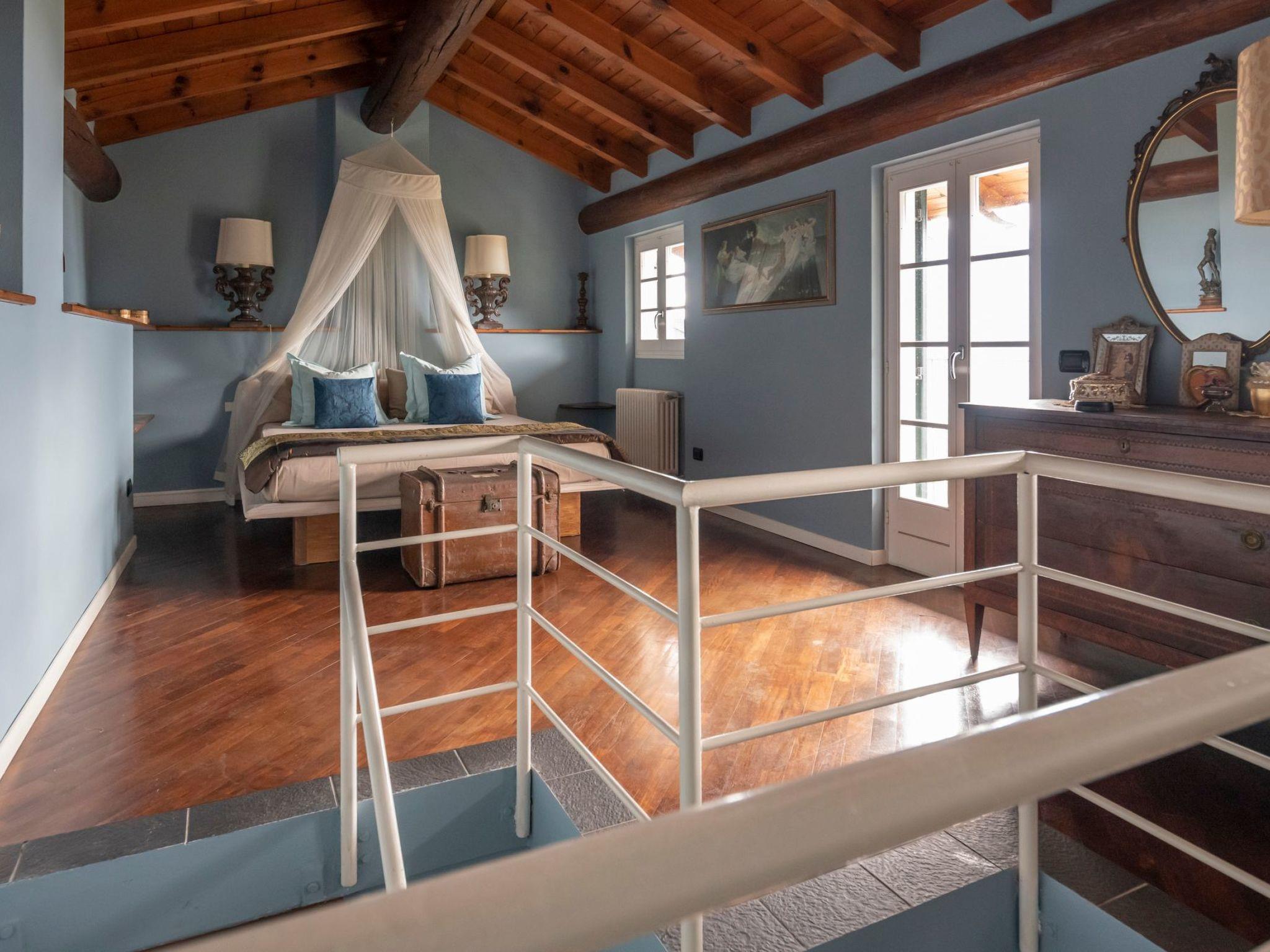 After climbing some 120 steps through a fragrant orchard, you reach the veranda. From here you reach the first floor, which consists of a small, fully equipped kitchenette with dishwasher and oven. You can choose between an American coffee machine or an Italian espresso machine. A kettle, a toaster and a selection of wines are also available. The living room has a sofa and armchair, a glass fireplace (wood provided free of charge), satellite TV and free Wi-Fi. On the second floor is a bedroom with balcony and a bathroom with hairdryer. Going further up, you reach the bedroom on the third floor. This room is furnished in a romantic style and the exposed wooden beams create a cosy atmosphere. There is also access to a large balcony with a view of the lake.