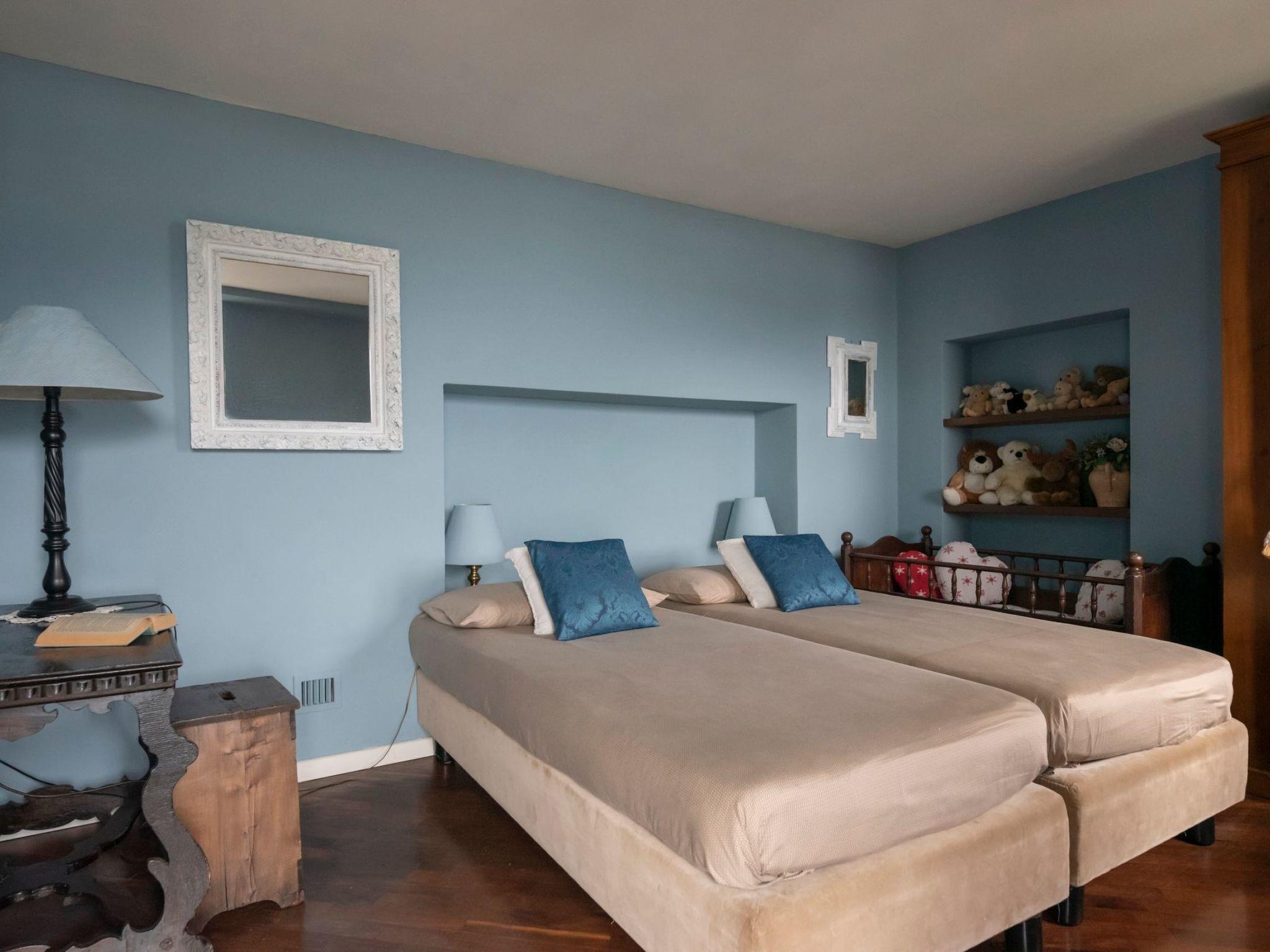 The veranda on the first floor enchants with its unique panoramic view. The combination of exposed wooden beams and wrought iron furniture creates an inviting atmosphere. A soapstone grill (interchangeable with a classic grill) is available for preparing delicious meals. This flat also includes a sunbathing area with an outdoor shower surrounded by jasmine. The swimming pool, located in the heart of the house's lush garden, is ideal for cooling off, swimming and enjoying the breathtaking view of the lake. It is shared by the guests of the two flats in the house. It measures 7 m x 3 m and is open from April to November.