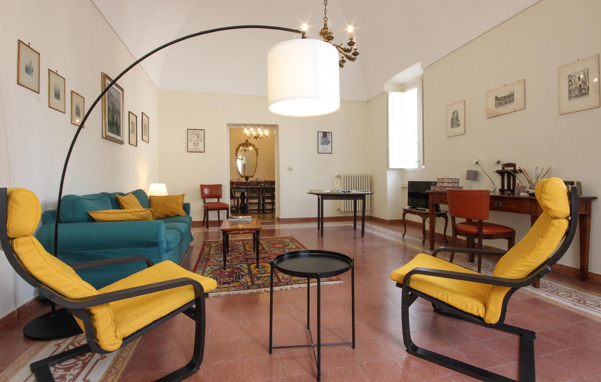 Rummelig ferielejlighed i det historiske centrum af Gravina i Apulien. En gammel by med masser af seværdigheder så som Castello Svevo, Paladserne og de charmerende kirker, samt flere arkæologiske udgravninger. Gå heller ikke glip af en nærmere besigtigelse af den imponerende akvæduktbro over Gravina slugten. Her kan I ligeledes se huler og gangsystemer i klipperne. Byen har indkøbsmuligheder og gode restauranter hvor I kan finde lokale specialiteter og vine på menukortet.