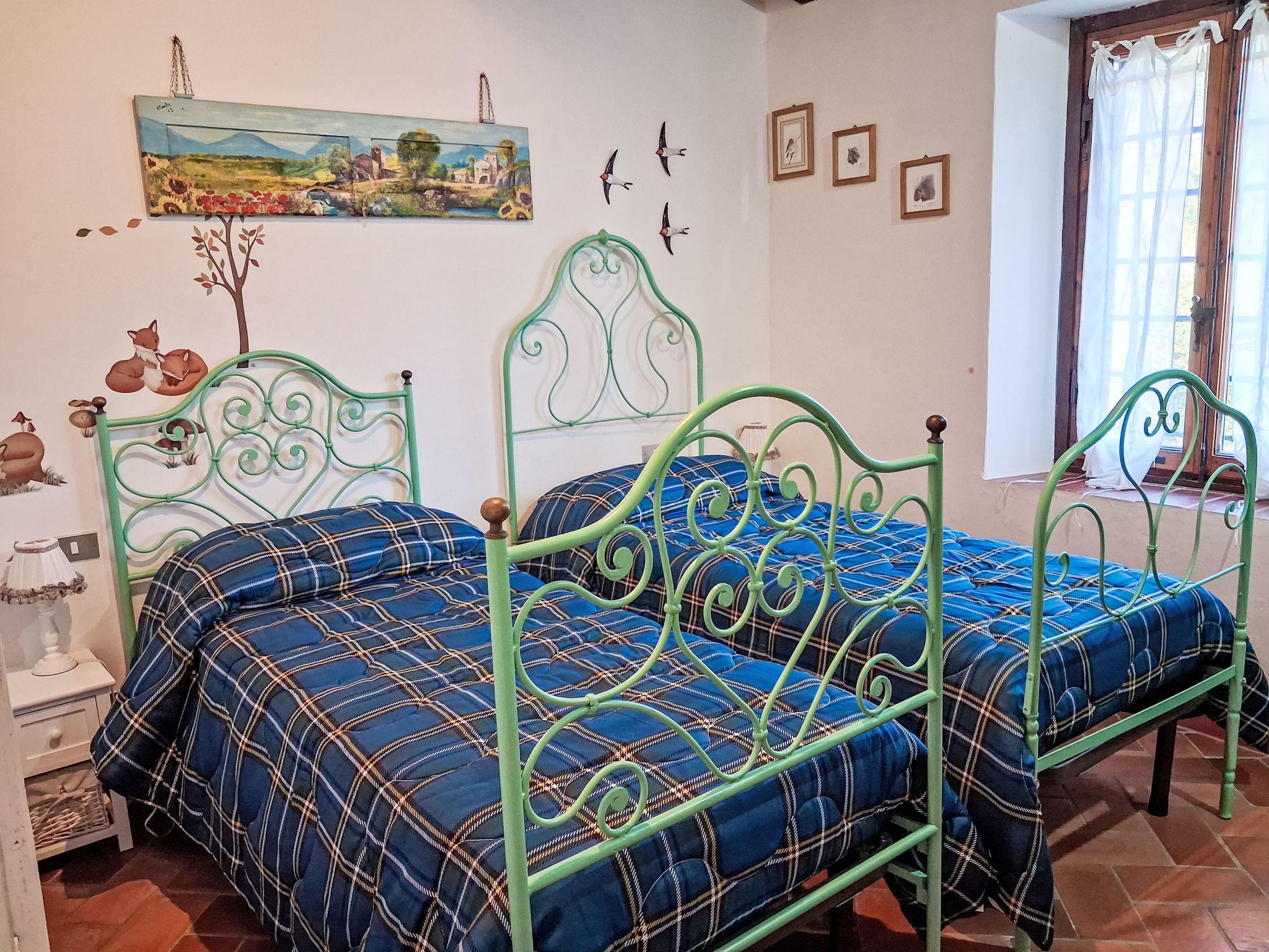 "Il canto dei merli", 3-room house 80 m2 on 2 levels. Rustic and tasteful furnishings: entrance hall. 1 large room with 1 double bed (160 cm), TV (flat screen). 1 room with 2 beds (90 cm). Shower/bidet/WC, bath/shower/WC. Upper floor: open living/dining room with air conditioning. Exit to the terrace. Open kitchen (oven, dishwasher, 4 induction hot plates, toaster, kettle, microwave, electric coffee machine). Heating, air-conditioning. Natural stone floors. Terrace roofed, patio. Terrace furniture, barbecue, deck chairs. Very beautiful panoramic view. Facilities: washing machine, iron, mosquito net, children's high chair, baby cot for up to 2 year olds, hair dryer. Internet (WiFi, free). Parking at the house. Please note: suitable for families. Non-smokers only. Maximum 1 pet/ dog allowed. Private entrance, smoke alarm, fire extinguisher. The pool mentioned in the description is for private use. IT048021C2K7FYR9CP