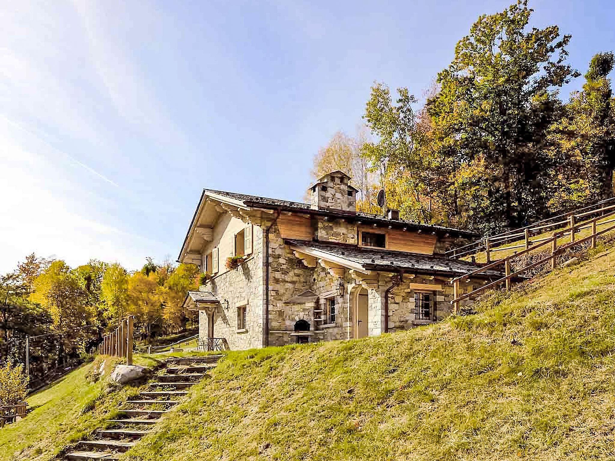 5-room chalet 300 m2 on 2 levels. Spacious and bright, partly with sloping ceilings, beautiful and stylish furnishings: open large living room with open-hearth fireplace and cable TV (flat screen). Exit to the garden. Large kitchen-/living room (4 hot plates, oven, dishwasher, toaster, microwave, freezer, electric coffee machine, Capsules for coffee machine (Nescafè Dolce Gusto)) with dining table, dining nook and wood-burning stove. Shower/bidet/WC. Upper floor: 1 room with 1 bed and 1 x 2 bunk beds, TV. 1 room with 1 double bed (180 cm, length 200 cm), TV. 1 room with 1 double bed (180 cm, length 200 cm), shower/bidet/WC. Exit to the balcony. Shower/bidet/WC. Wooden floors, natural stone floors. Small balcony. Deck chairs (4). Very beautiful panoramic view of the mountains, the valley and the garden. Facilities: washing machine, children's high chair, baby cot, hair dryer, logs (extra). Internet (WiFi, free). Please note: suitable for families. Non-smoking house. Maximum 1 pet/ dog allowed. IT014034C2BNOI9VEQ