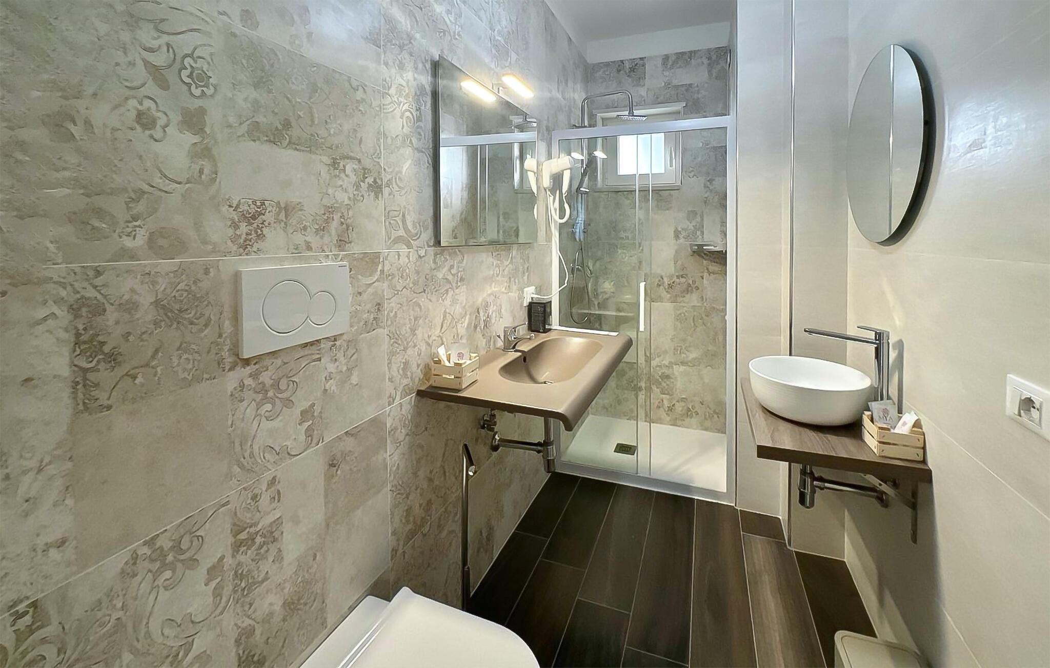Badeværelse (nr. 1) - WC. Varmt og koldt vand. Bruser