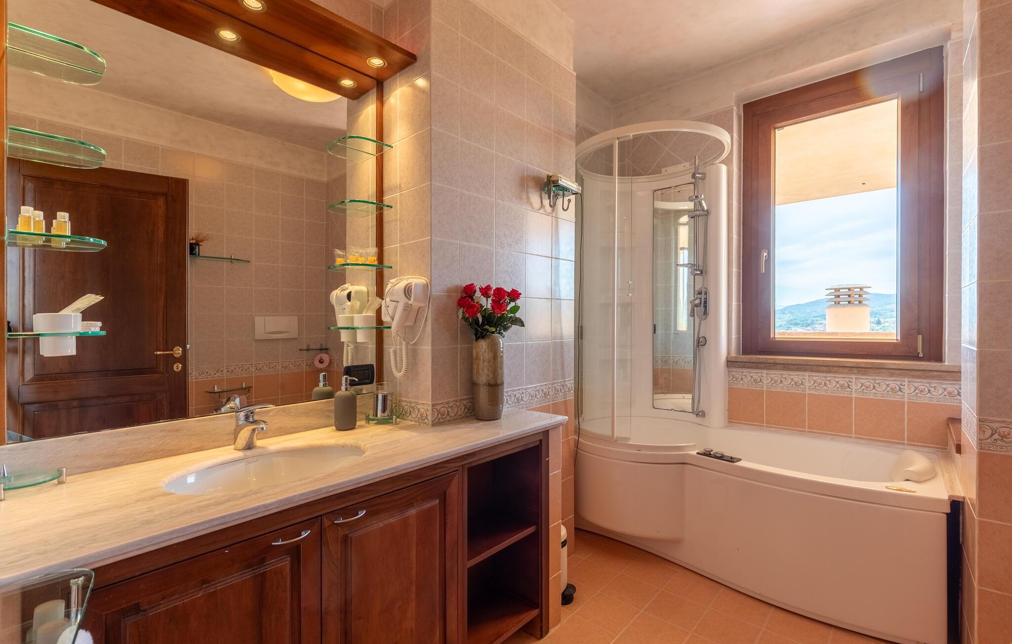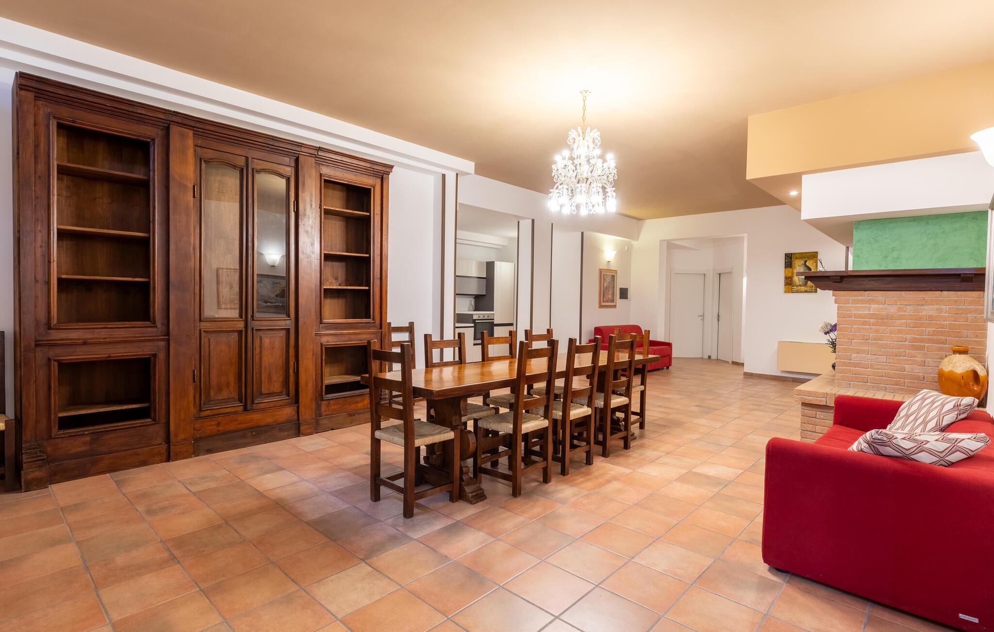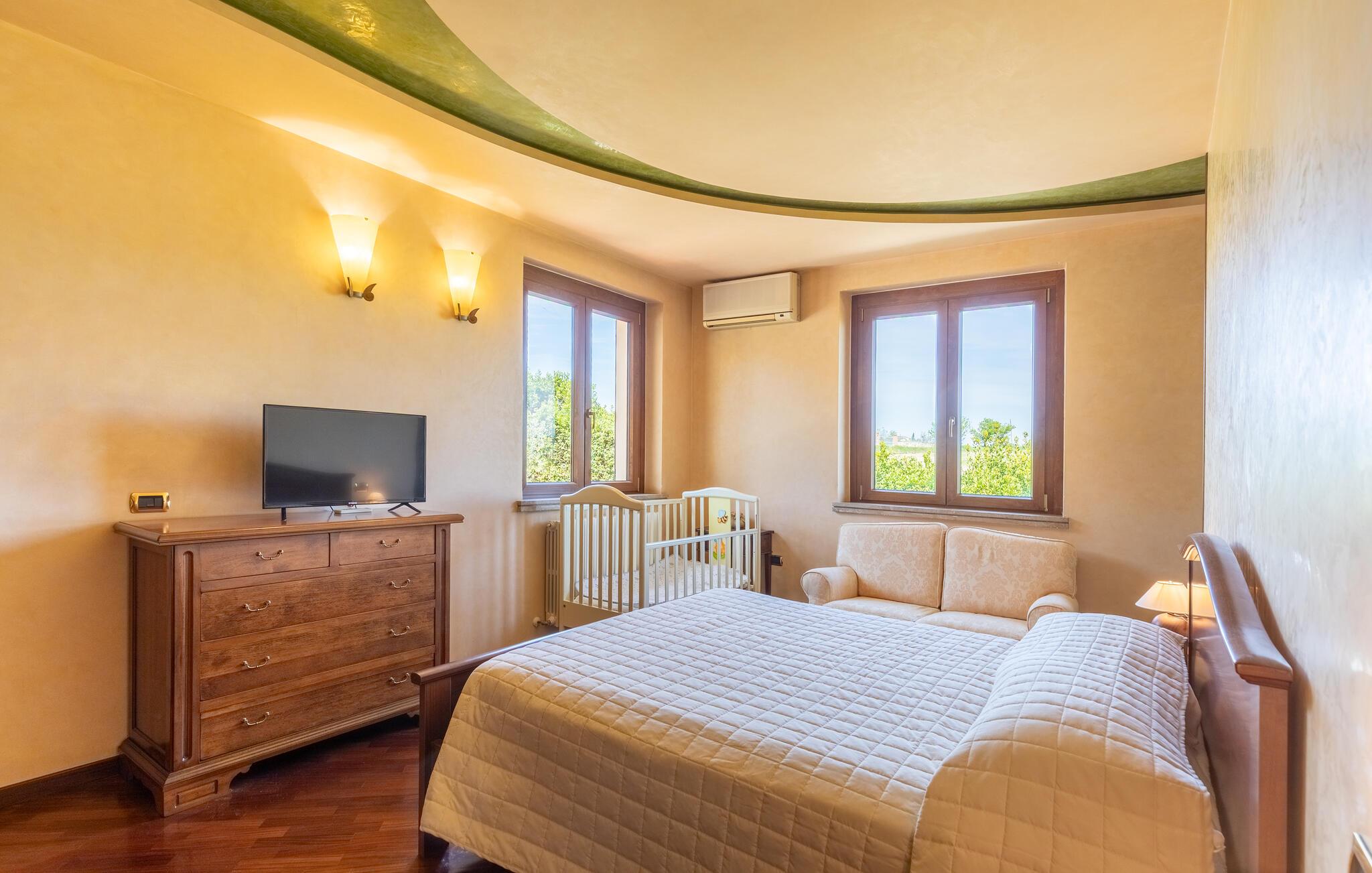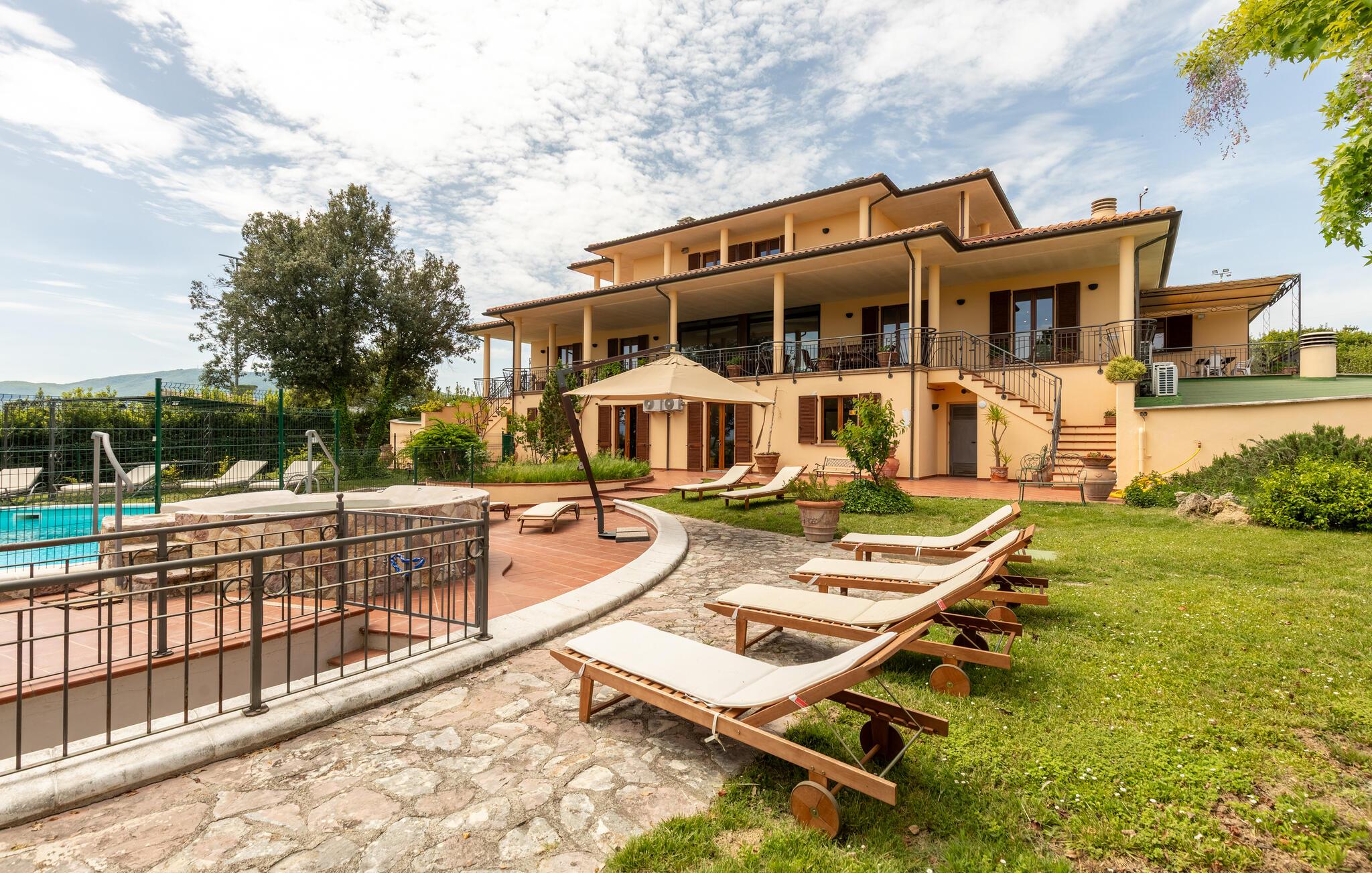 Denne rummelige ejendom i Gualdo Cattaneo tilbyder masser af plads til en stor familie eller vennefamilier. De komfortable og indbydende møbler skaber en varm atmosfære, hvor I kan tilbringe afslappende timer med at lave mad, spise og lege sammen. Verandaen og balkonen lægger op til at tilbringe stille stunder med udsigt over de grønne omgivelser, mens poolområdet i haven er det perfekte sted til forfriskende timer under den italienske sol. Oplev den rummelige have, smukke terrasser og bagning og grill i haven.