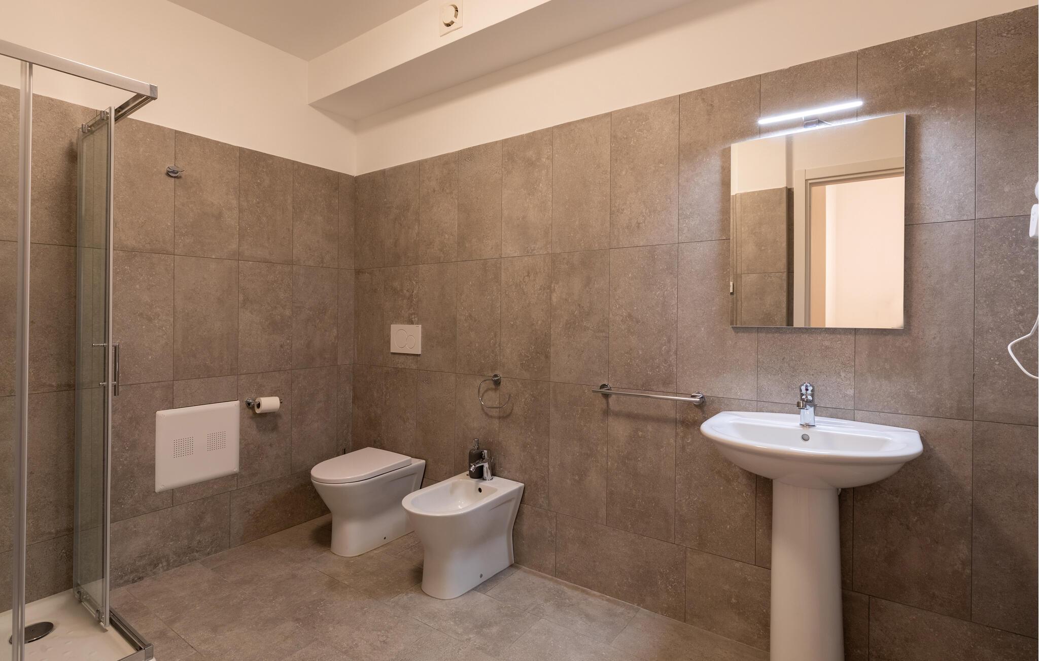 - WC. Varmt og koldt vand, Bruser og badekar