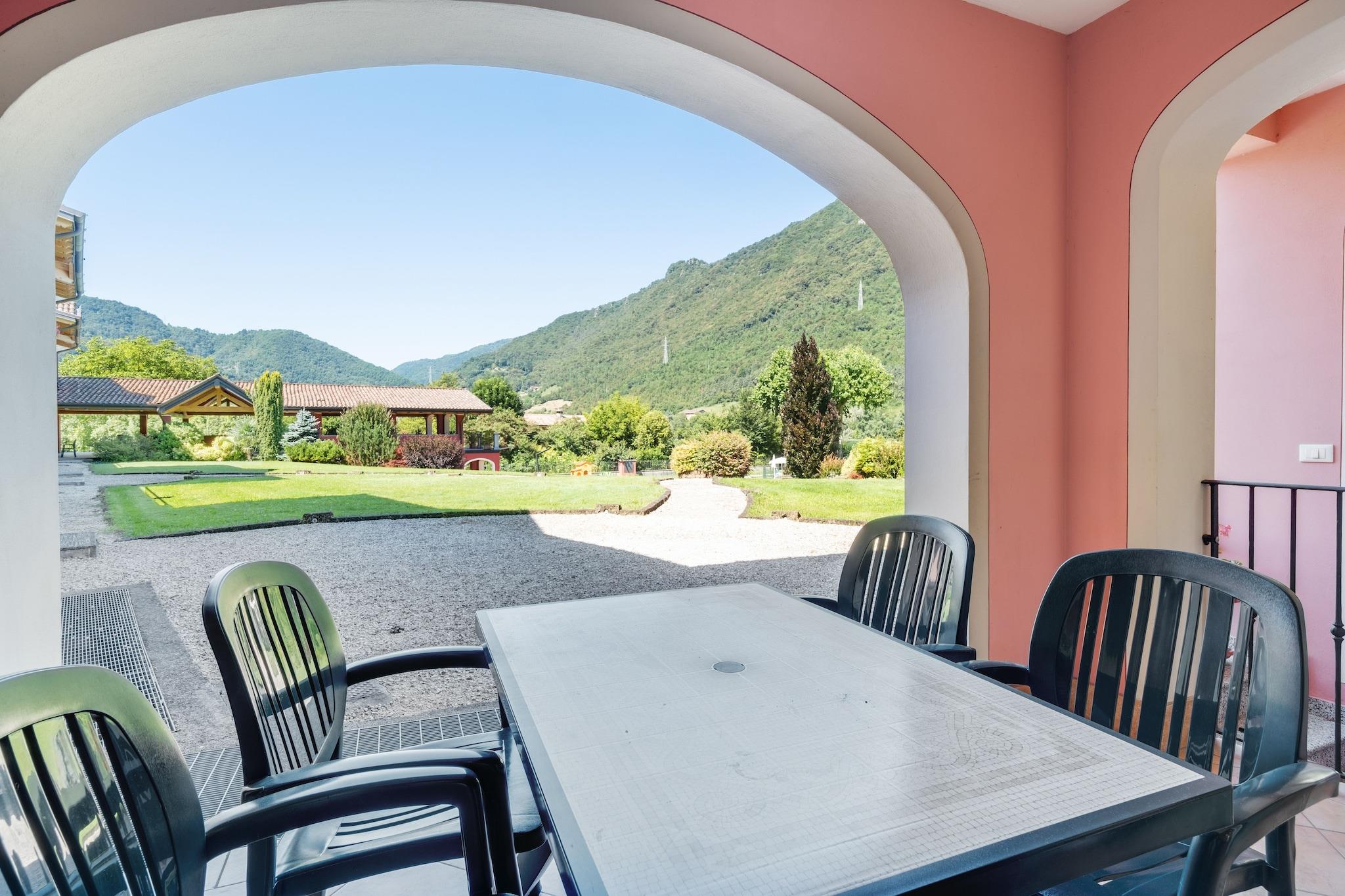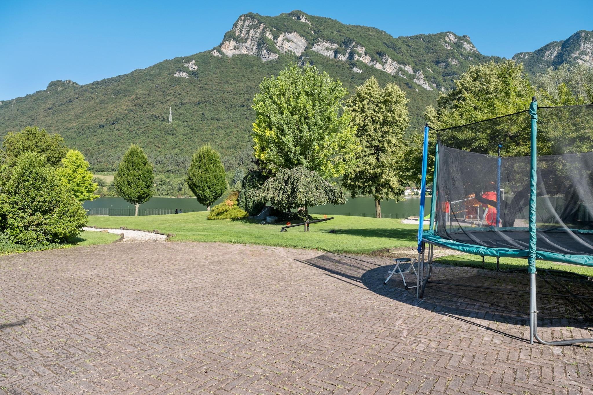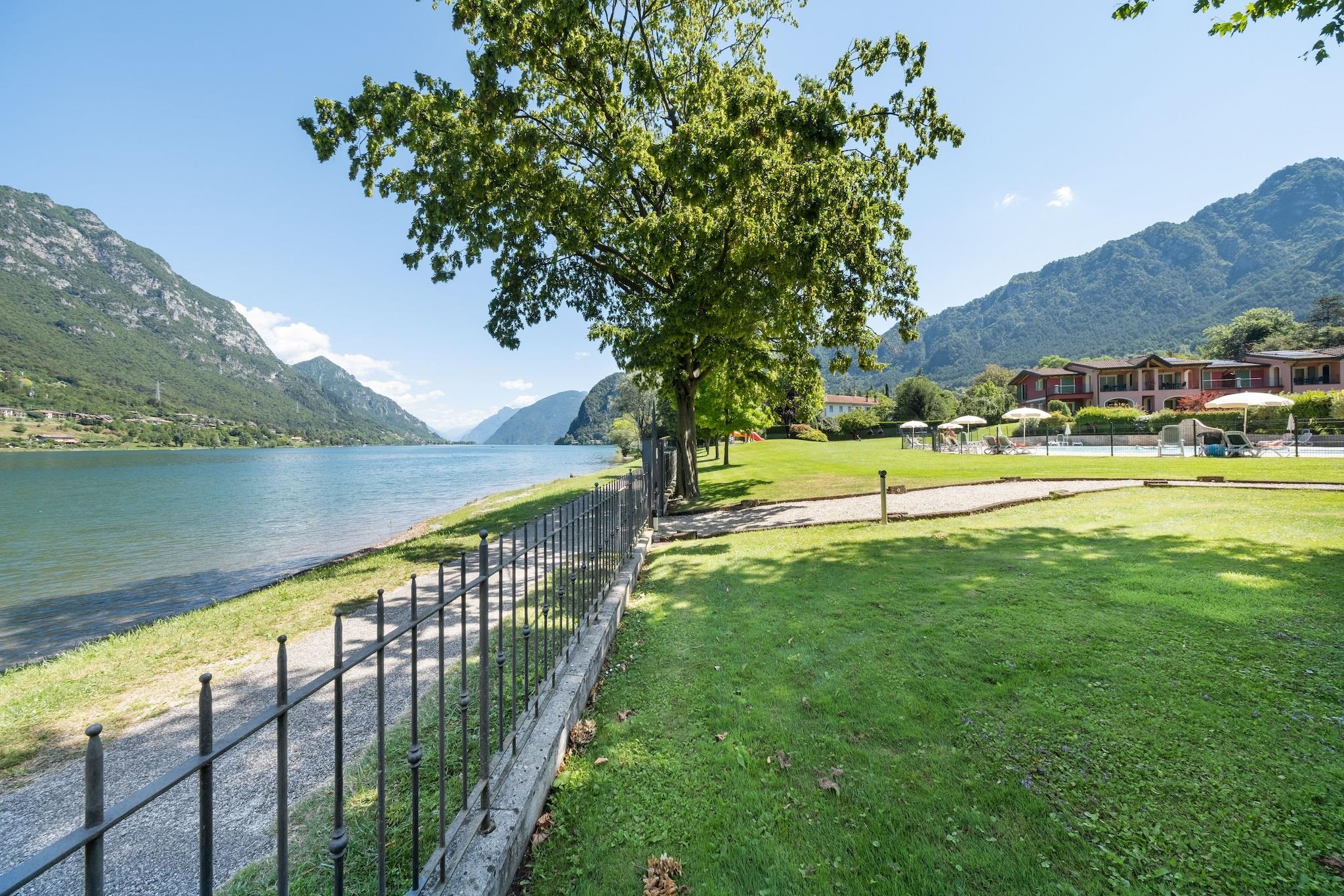 En rummelig lejlighed omgivet af bjerge, direkte ved søen Idro. Sammen med 21 andre lejligheder udgør dette hus Vico Residence. Lejligheden er pæne og farverigt dekoreret. Der er et lille, delt fitnessrum. Der er også en fælles vaskemaskine og tørretumbler til rådighed. Fra din balkon eller terrasse har du en fantastisk udsigt over søen og Dolomitterne. Børnene vil have det sjovt i den fælles pool, når de er trætte af at lege i vandet, kan de have det sjovt på de forskellige legepladser og den store græsplæne. Husene ligger i udkanten af landsbyen Crone, dette landlige område er ideel til vandrere og mountainbikere, der er smalle bjergstier, der byder fra landsby til landsby. Jo højere du går jo mere smuk udsigt over søen Idro. Om aftenen efter aftensmaden kan du tage en god tur til landsbyen for en lækker italiensk is eller en dejlig kølig drink. Hvis du gerne vil udforske det omkringliggende område lidt mere, er byen Brescia på 50 kilometer absolut et besøg værd. For golfentusiasterne blandt os er der en smuk golfbane ca. 35 km væk.