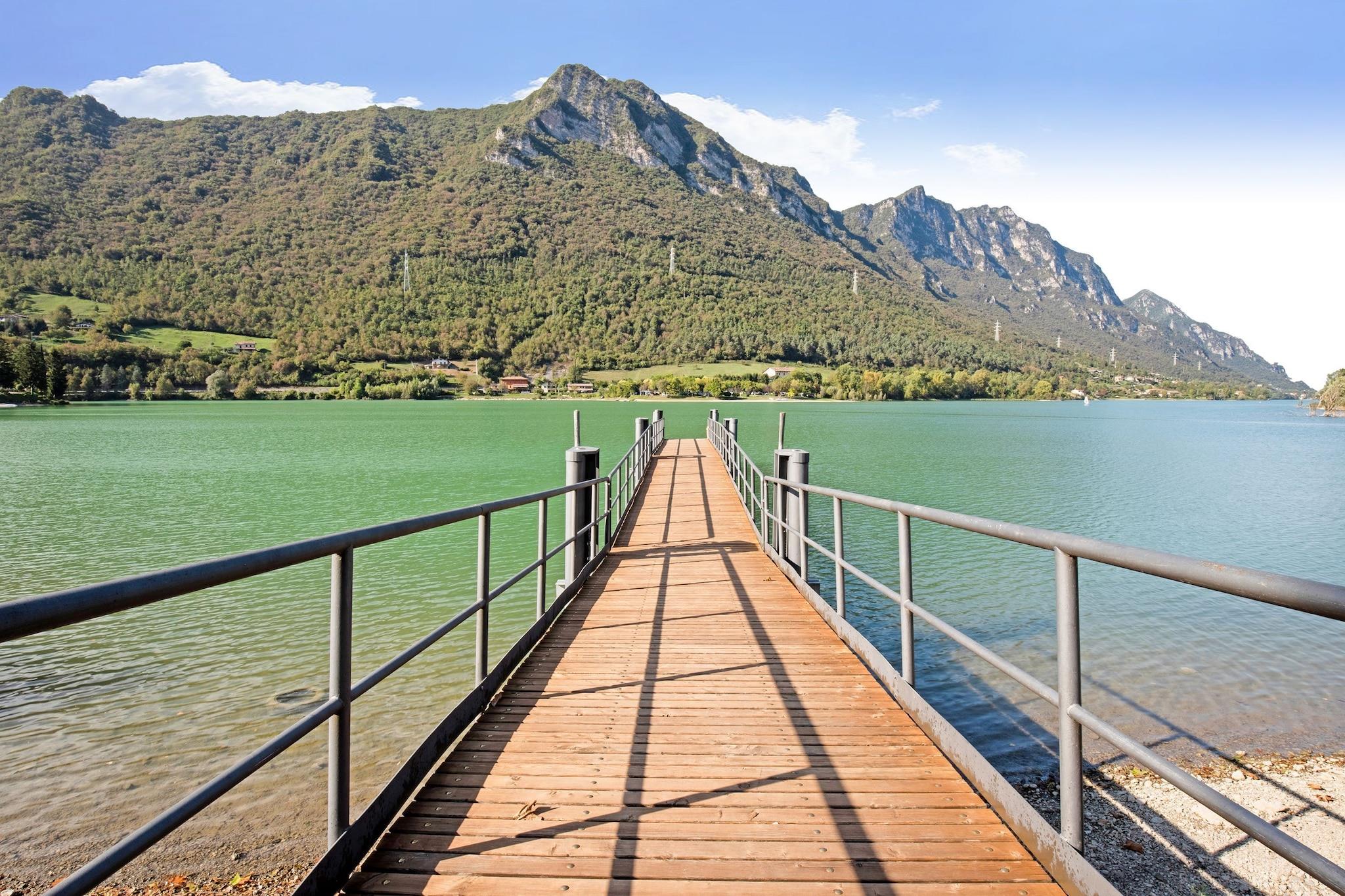 Beliggende kun få skridt fra Idrosøens glitrende vand tilbyder denne indbydende lejlighed et fredfyldt tilflugtssted for naturelskere og aktive familier. Med en privat have perfekt til udendørs måltider eller til at slappe af i solen, og et hyggeligt opholdsrum at slappe af i efter en dag med eventyr, kombinerer dette feriehus komfort med en naturskøn beliggenhed. Kæledyr er hjerteligt velkomne her, og den indhegnede have gør det til et sikkert tilflugtssted også for dine lodne ledsagere. Idrosøen er et knudepunkt for udendørs sport, der tilbyder aktiviteter som windsurfing, paragliding, kajaksejlads og trekking. Morgenerne er perfekte til fredelige kanoture på glasagtigt vand, mens eftermiddage bringer "Ander"-brisen - ideel til sejlads eller windsurfing. Vandreentusiaster kan udforske nærliggende tinder som Corna Blacca og Monte Stino eller vove sig til Vesta-stranden, et lokalt klatrehotspot. Gå ikke glip af et besøg på Rocca d'Anfo, en historisk militærfæstning, der ligger dramatisk over søen. Blot 100 meter væk tilbyder charmerende lokale restauranter autentiske retter med bjergost som Bagòss og søfrisk fisk. Prøv Trattoria del Gallo eller Ristorante Pizzeria Al Forno i nærliggende Crone for solide regionale retter. Og for at skifte scene, tag et mini-krydstogt over søen eller dagsture til Verona og Venedig - begge inden for rækkevidde for uforglemmelige kulturelle flugter.