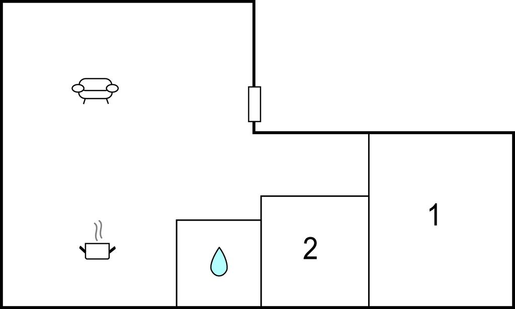 Opholdsstue/køkken - 1 Soveplads. (Sofa, madras eller lignende).