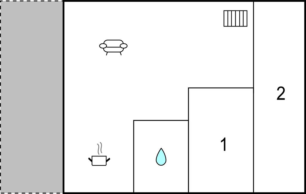 Opholdsstue/køkken - 1 Soveplads. (Sofa, madras eller lignende).