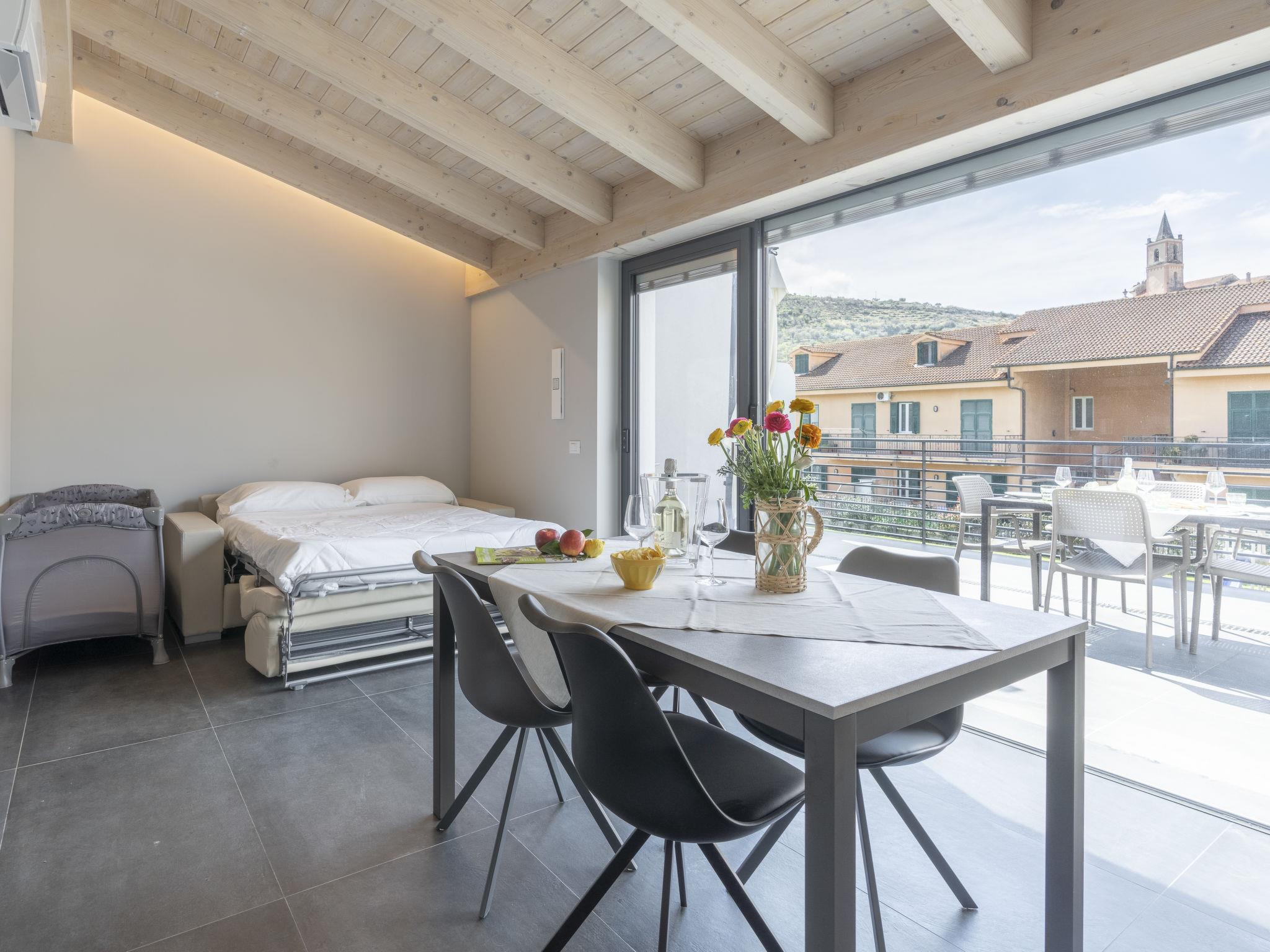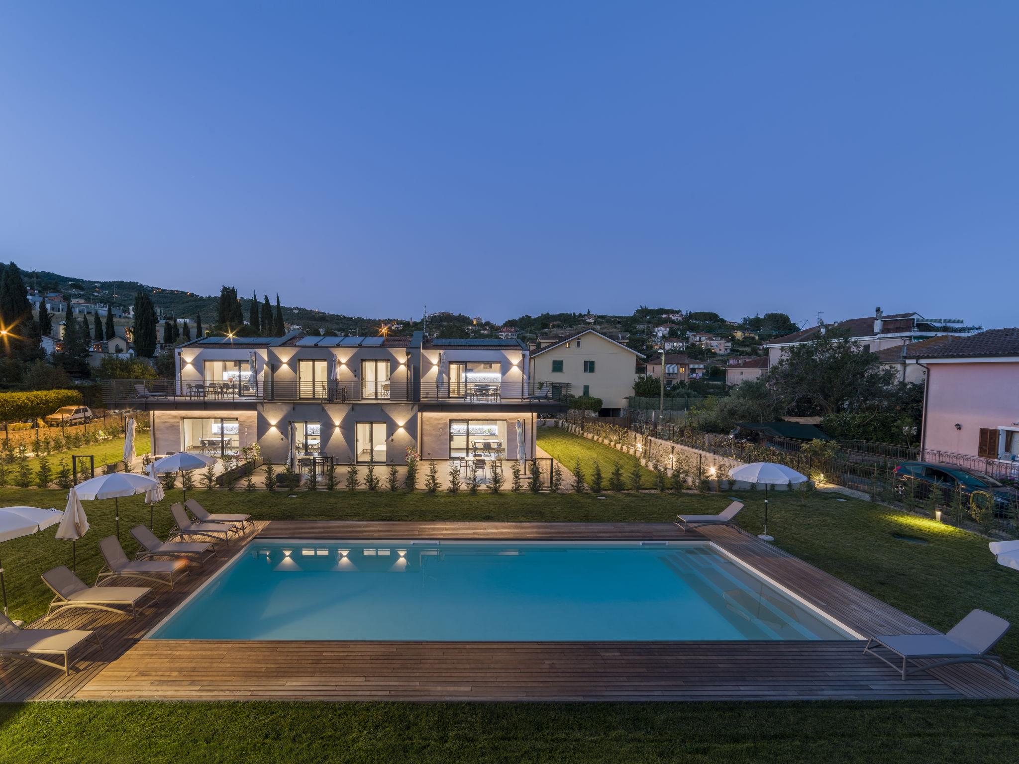 Modern, very comfortable residence "Al Bistrot dei Vinai", 2 storeys, built in 2022. 6 apartments in the residence. In the district of Caramagna 1.5 km from the centre of Imperia, 25 km from the centre of San Remo, 90 km from the centre of Nizza, in a sunny position in the residential district, 1.5 km from the sea. For shared use: large, well-kept garden 1'000 m2 (fenced) with lawn and flowers, lawn for sunbathing, swimming pool (5 x 15 m, depth 140 cm, seasonal availability: 12.Apr. - 30.Oct.). Outdoor shower, terrace, garden furniture, barbecue, children's playground (slide), pool maintenance by the owner/gardener. In the house: lift, storage room for bicycles, air conditioning, washing machine, tumble dryer (for shared use). Room cleaning on request (extra). Storeroom available. Motor access to the house. Parking (for 6 cars) on the premises, communal covered parking. Shop, grocery 600 m, supermarket 1 km, shopping centre 1 km, restaurant 2 km, bar 1 km, bakery 600 m, café 2 km, bicycle rental 2 km, bus stop 100 m, railway station "Imperia Oneglia" 6 km, sandy beach "Borgo Marina" 3 km pebble beach "Borgo Prino" 2 km, rocky beach "Borgo Foce" 3 km, outdoor swimming pool 6 km, swimming bay 6 km, bathing lake "Laghetti di Lecchiore" 7 km. Cycle lane 2 km. Nearby attractions: Dolcedo Mountainbiken am Monte Faudo 7 km, Küstenradweg von Imperia bis Ospedaletti 2 km, Valloria das Dorf mit 150 bemalten Türen 8 km, Triora Hexendorf 45 km, Monte Carlo 75 km, San Remo 25 km. Hiking paths: Monte Faudo (1149 m) Mountainbike Trails. Please note: car recommended. Baby equipment (included). Additional accommodations can be booked.