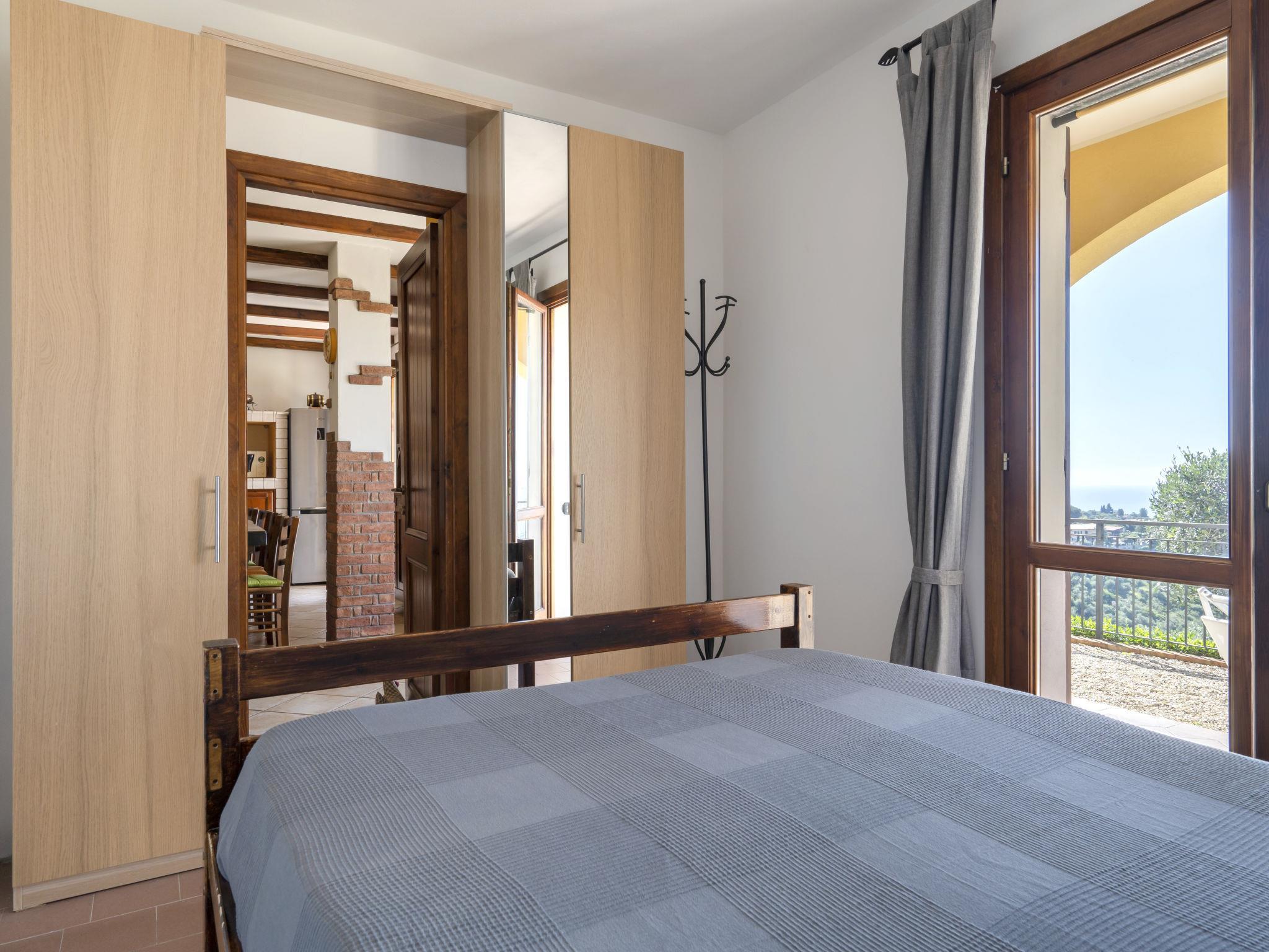 "Casa della Mimosa", 3-room apartment 70 m2, on the ground floor. Renovated in 2023, beautiful and cosy furnishings: 1 room with 1 french bed (1 x 160 cm, length 200 cm). Exit to the terrace. 1 room with 1 x 2 bunk beds (80 cm, length 190 cm). Large kitchen-/living room (mini-oven, dishwasher, 5 gas rings, toaster, kettle, microwave, freezer, electric coffee machine, pizza oven) with dining table, 1 sofabed (140 cm, length 200 cm), satellite TV. Exit to the terrace. Shower/WC. Air-conditioning, forced-air heating. Terrace 30 m2, roofed, patio, porch. Terrace furniture, barbecue, deck chairs (4). Beautiful panoramic view of the sea, the valley and the town. Facilities: washing machine, hair dryer. Internet (WiFi, free). Parking (fenced 4 cars). Please note: non-smoking house. IT008031C26UJ6WN2Q