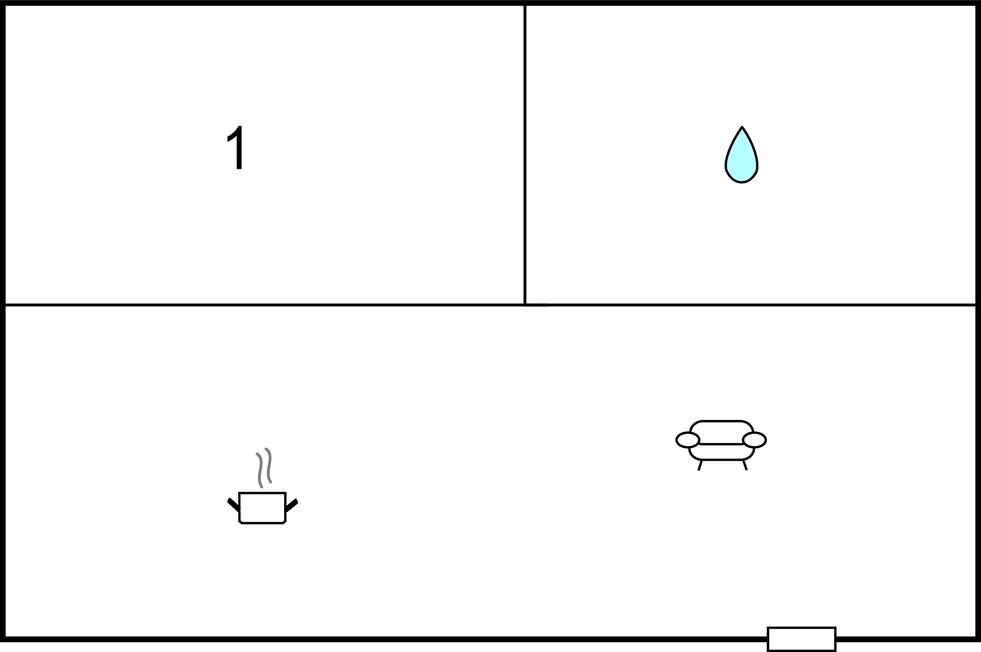 Opholdsstue/køkken - 2 Sovepladser. (Sofa, madras eller lignende).