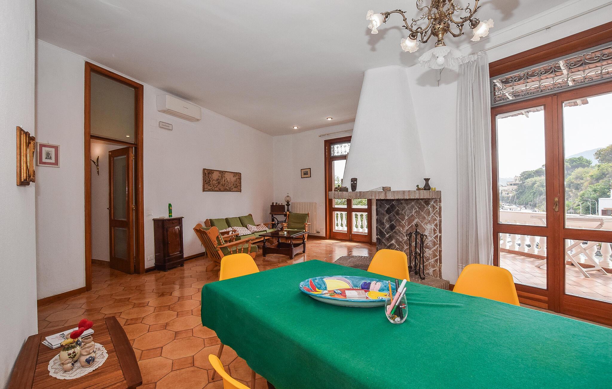 Fra en stor terrasse med en fantastisk panoramaudsigt over Casamicciola-bugten og byen Lacco Ameno til øen Procida og Vesuvius i det fjerne, har du adgang til denne semi-fritliggende ferielejlighed.