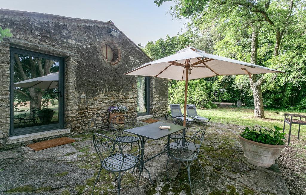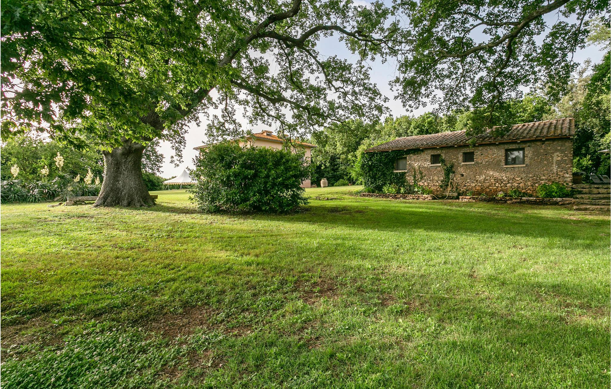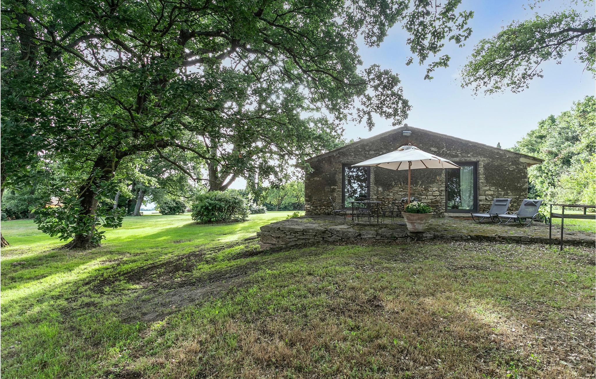 Denne ejendom ligger på grænsen til det toskanske Maremma og var oprindelig en jagthytte, nu ligger den som en del af en økologisk bondegård med rideskole. I parken der omgiver villaen ligger de to renoverede sidebygninger IRU214 og 215 ca. med 100 meters afstand til villaen. Til ferieboligerne hører private haver til afslapning og måltider i det fri. Feriehuset IRU214 råder over to indgangsdøre fra terrassen, der hver lader jer træde ind i et af stue/køkkenerne, og siden videre til soveområdet med i alt to soveværelser og to badeværelser. De to næsten identiske dele af huset, der normalt er åbne til hinanden igennem en dør bagerst, byder på en enestående lejlighed til at rumme to par eller små familier med god privatsfære, da dørene også kan lukkes. Udenfor venter en dobbelt pool med undervandsmassage og en overdækket siddeplads til fælles brug af alle gæster af den store ejendom. Rideture mod forespørgsel. På en times kørsel når I til Argentarios herlige sandstrande. Bolsenasøen ligger 18 km væk, Saturnias kurbade 42 km og Tarquinia, med havet og arkæologiske udgravningssteder, 48 km.