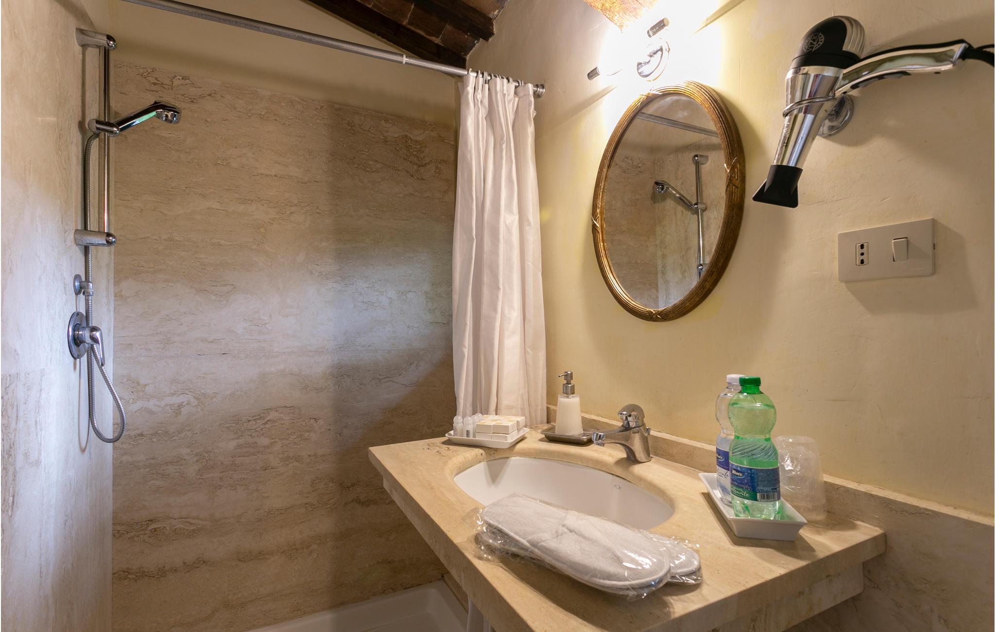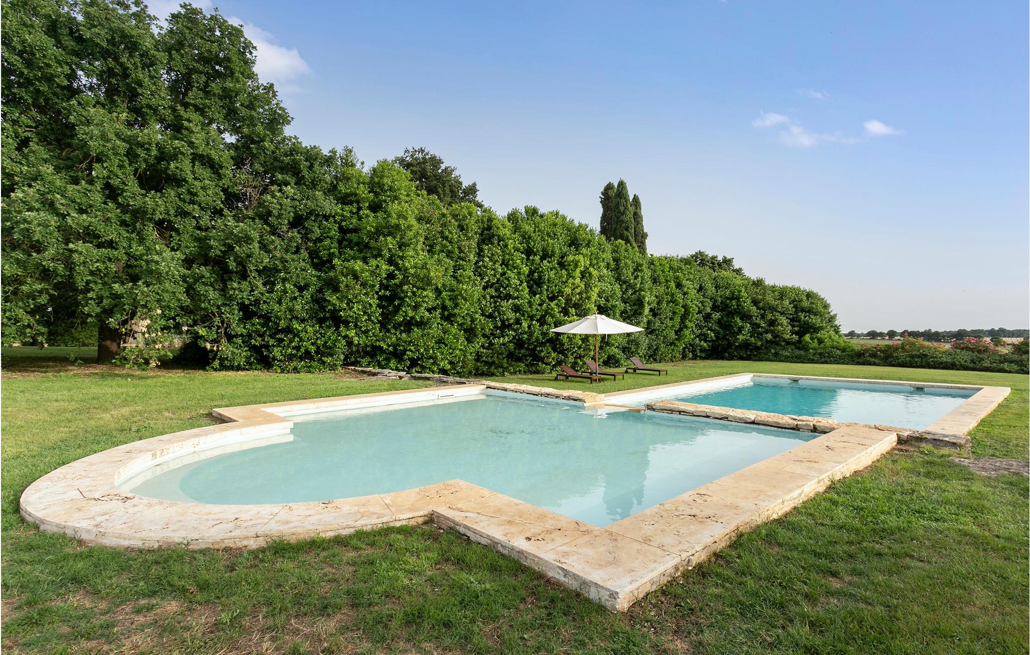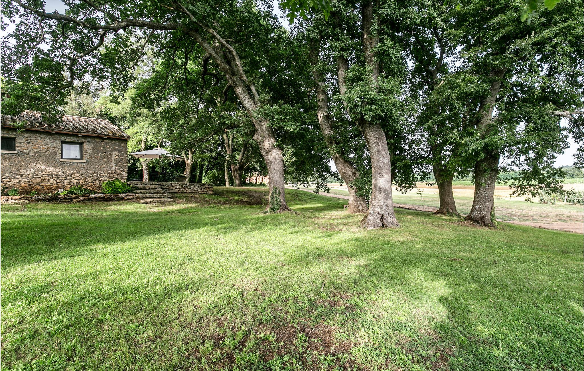 Denne ejendom ligger på grænsen til det toskanske Maremma og var oprindelig en jagthytte, nu ligger den som en del af en økologisk bondegård med rideskole. I parken der omgiver villaen ligger de to renoverede sidebygninger IRU214 og 215 ca. med 100 meters afstand til villaen. Til ferieboligerne hører private haver til afslapning og måltider i det fri. Feriehuset IRU214 råder over to indgangsdøre fra terrassen, der hver lader jer træde ind i et af stue/køkkenerne, og siden videre til soveområdet med i alt to soveværelser og to badeværelser. De to næsten identiske dele af huset, der normalt er åbne til hinanden igennem en dør bagerst, byder på en enestående lejlighed til at rumme to par eller små familier med god privatsfære, da dørene også kan lukkes. Udenfor venter en dobbelt pool med undervandsmassage og en overdækket siddeplads til fælles brug af alle gæster af den store ejendom. Rideture mod forespørgsel. På en times kørsel når I til Argentarios herlige sandstrande. Bolsenasøen ligger 18 km væk, Saturnias kurbade 42 km og Tarquinia, med havet og arkæologiske udgravningssteder, 48 km.
