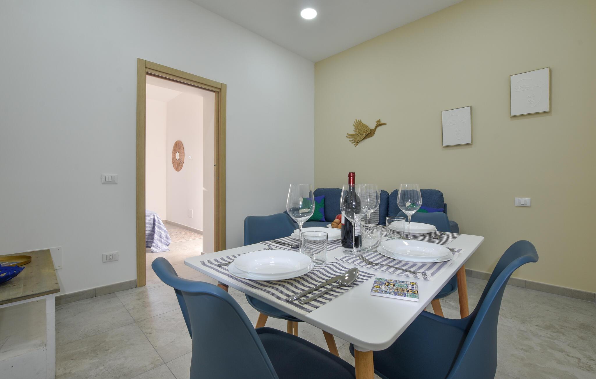 Dette indbydende dobbelthus ligger kun en kort gåtur fra den fine sandstrand og tilbyder jer et velholdt midlertidigt hjem, mens I opdager Siciliens kultur, natur og gastronomi. Planlæg jeres aktiviteter over afslappede måltider og slap af efter en begivenhedsrig dag på sofaen eller nyd et brætspil.