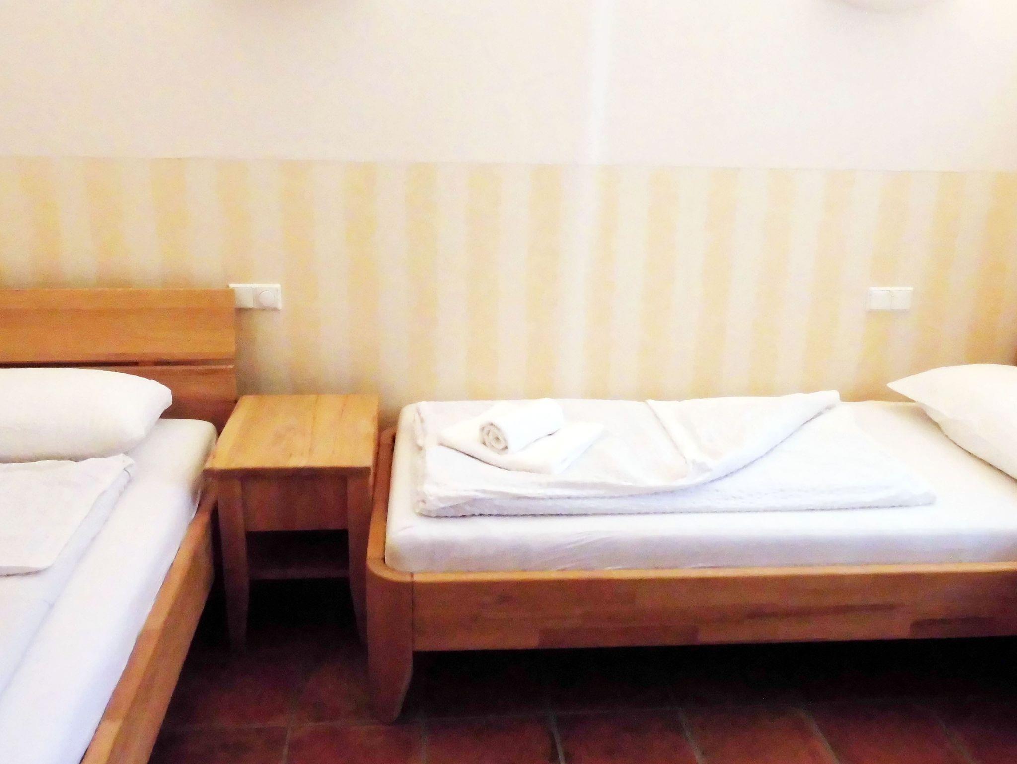 • Ein Schlafzimmer mit zwei Einzelbetten und Klimaanlage