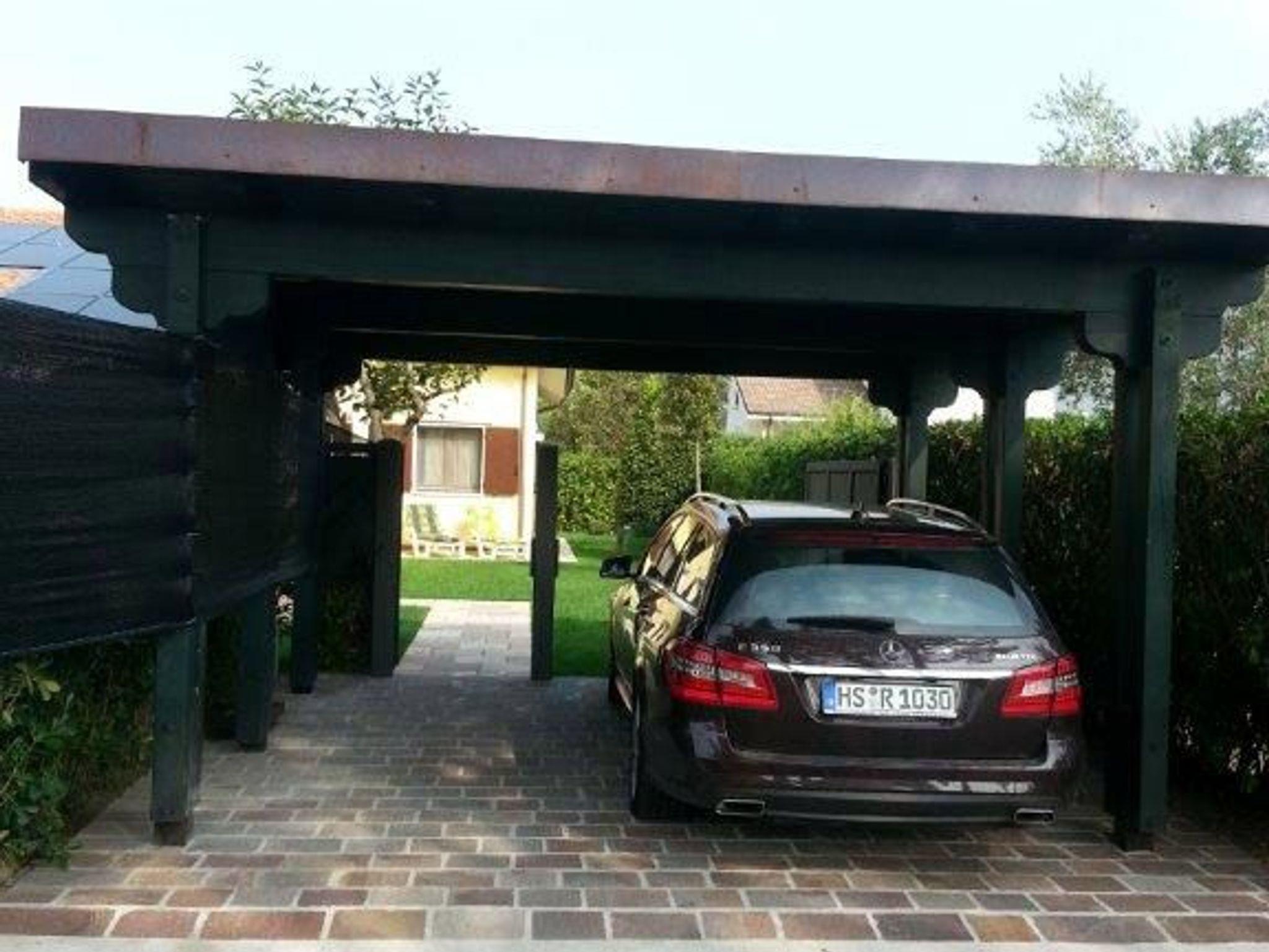 • Schöner Garten mit Gartenmöbeln, Sonnenliegen, Außengrill und Außendusche
