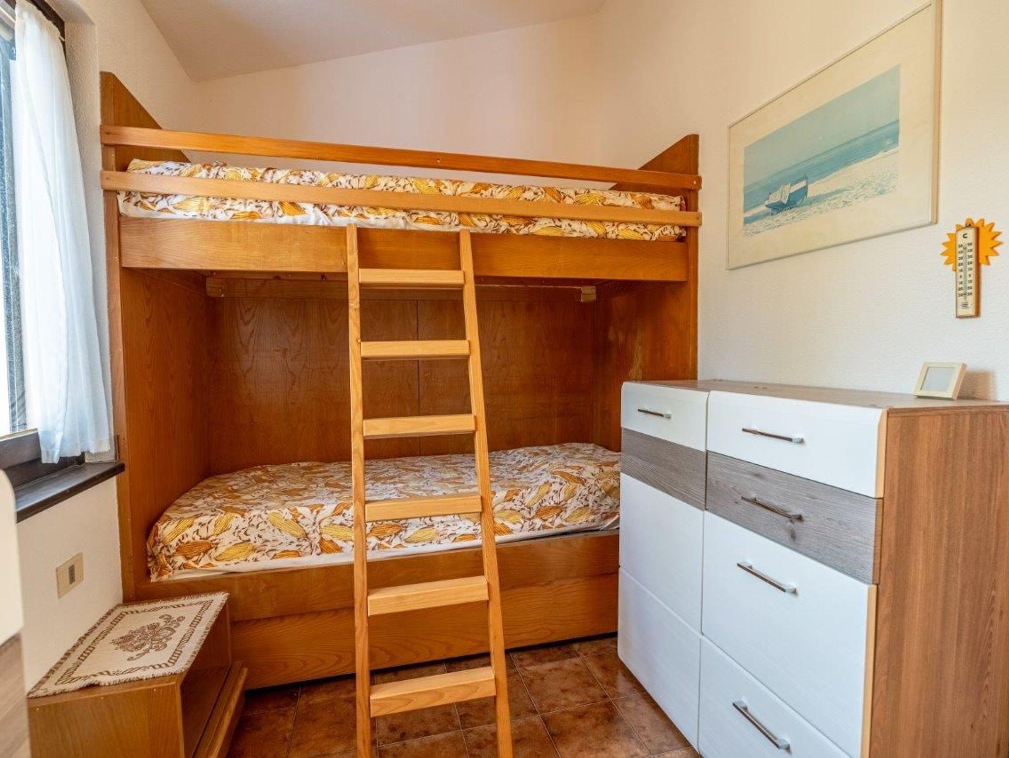 Schlafzimmer mit Etagenbett und zusätzlichem Hochbett