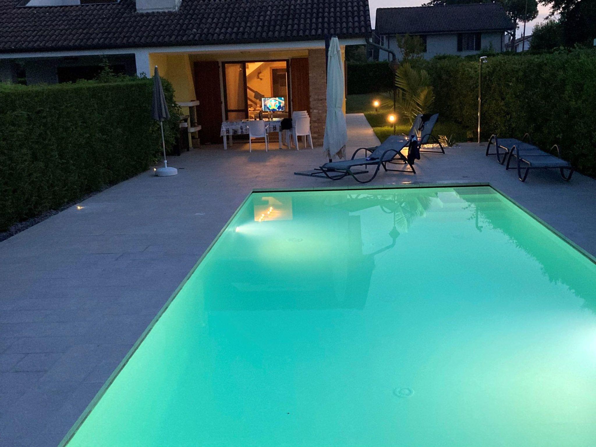 Ein gepflegter, uneinsehbarer, geschlossener Garten mit großer überdachter Terrasse, sehr schön angelegtem Pool mit Treppe mit den Maßen 8 auf 4m, Gartenmöbel, Sonnenliegen und Außengrill
