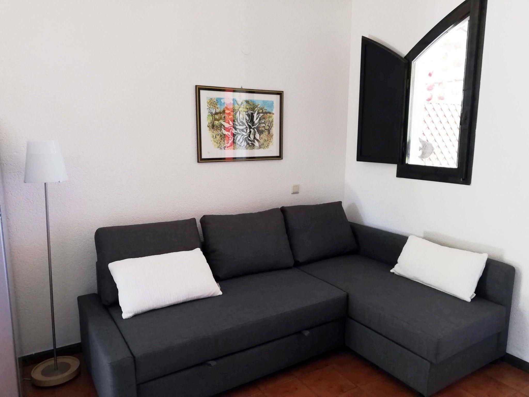 • Schöner Wohnraum mit Schlafsofa für zwei Personen, Esstisch und Sat-Tv
