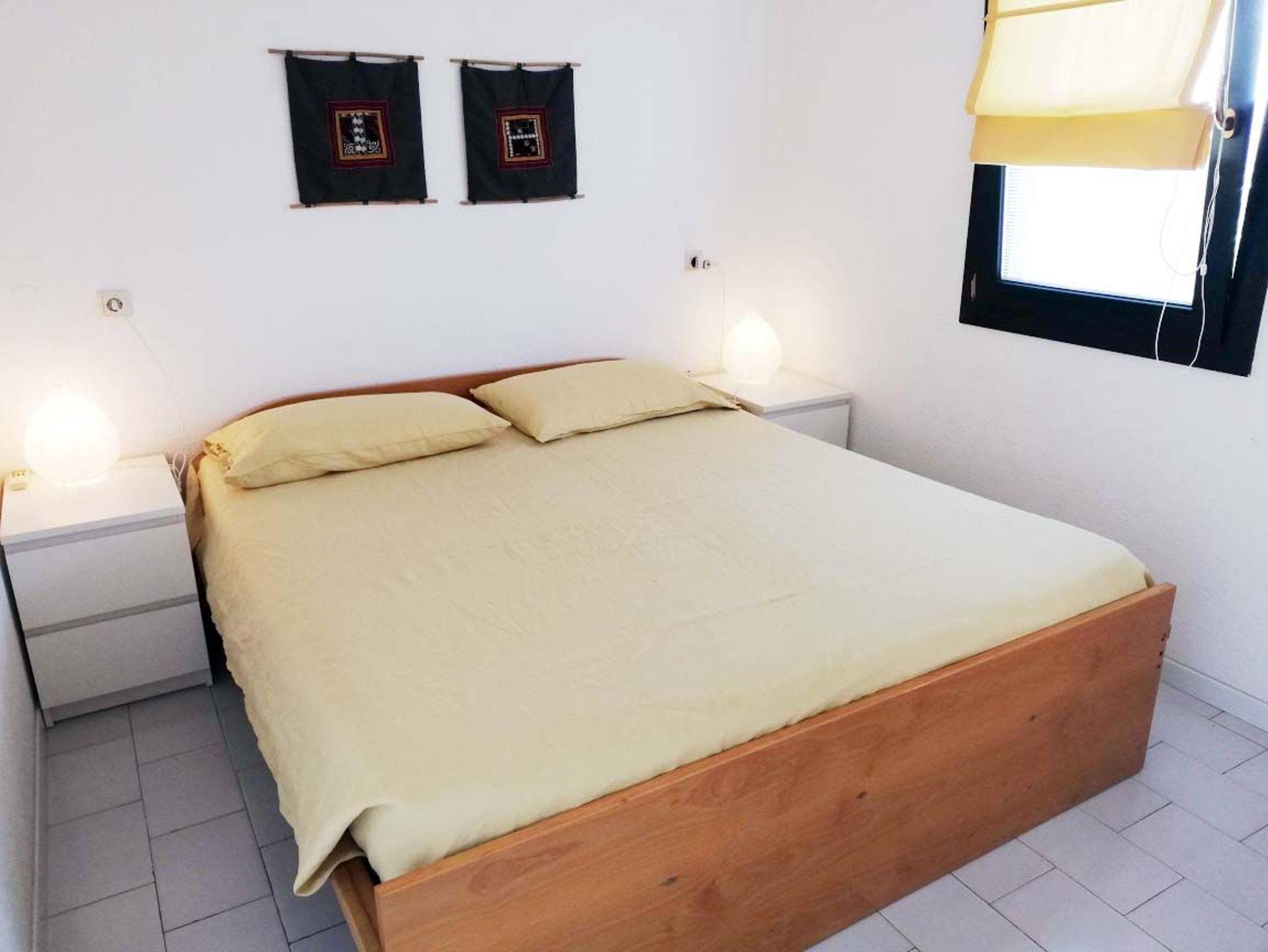 • Ein Schlafzimmer mit Doppelbett, kleinem Balkon, Klimaanlage und Fliegengitter