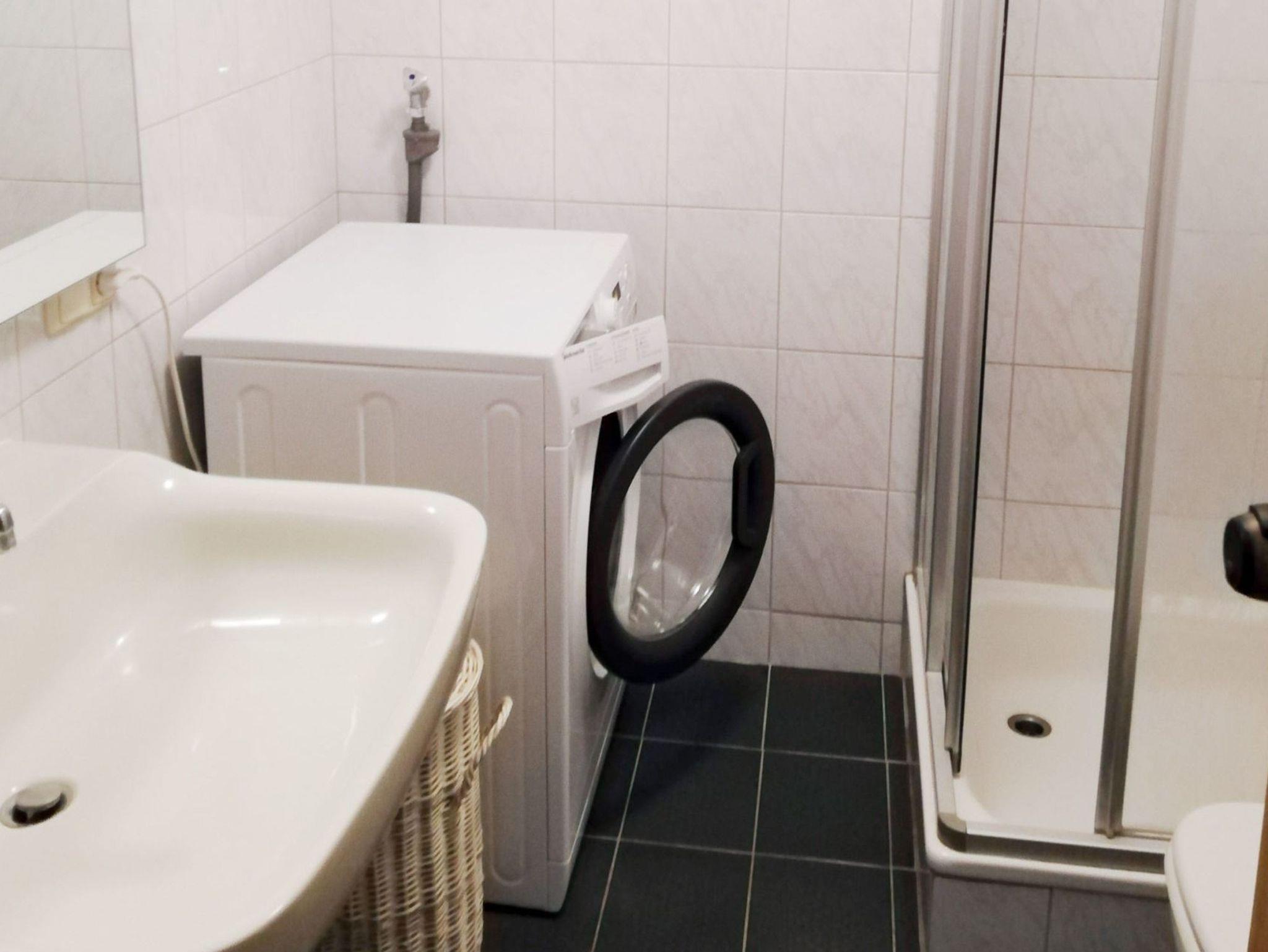 • Ein Bad mit Dusche, Waschmaschine und Wc