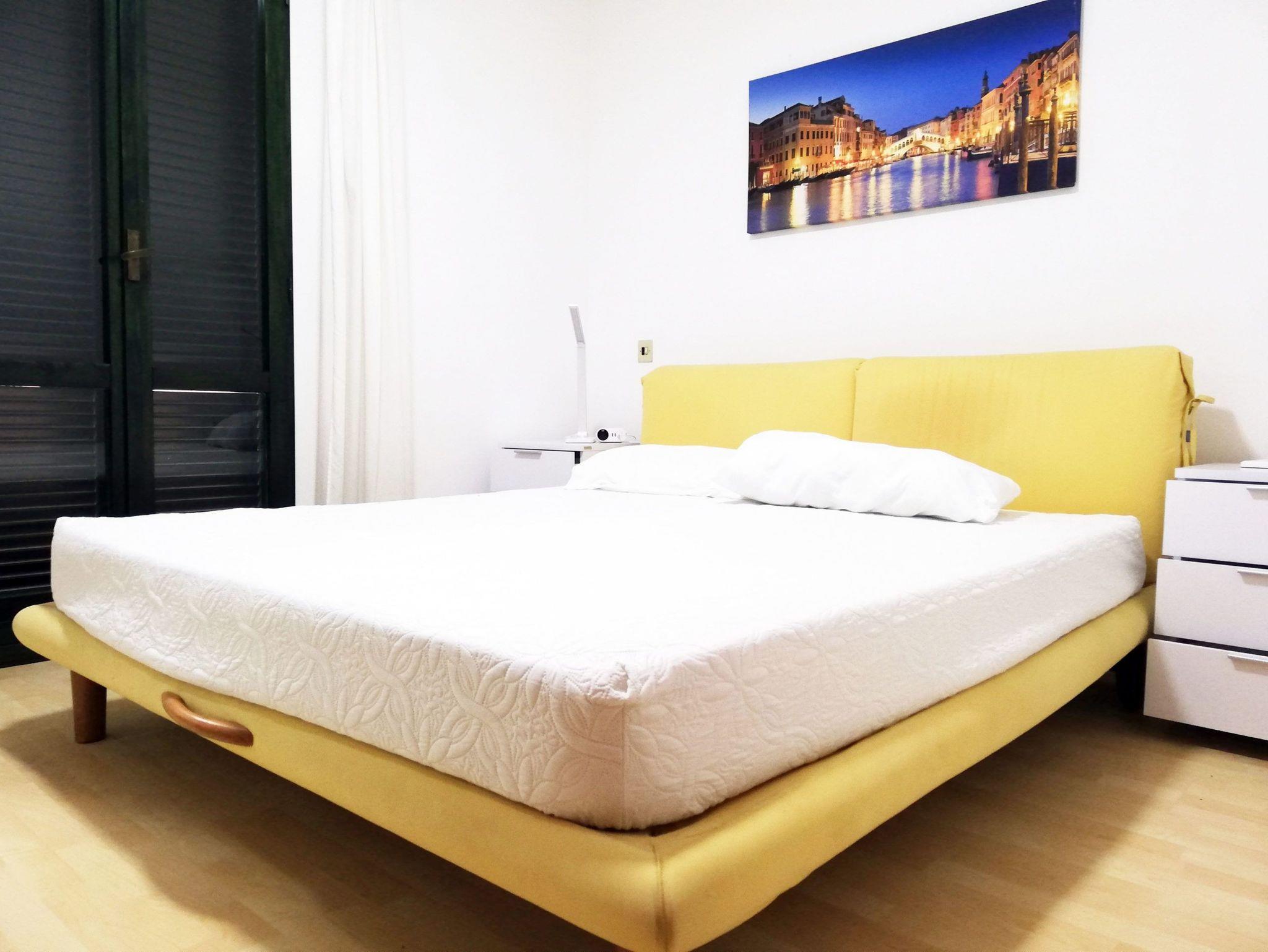 • Ein Schlafzimmer mit einem Doppelbett und zusätzlichem mobilem Klimagerät